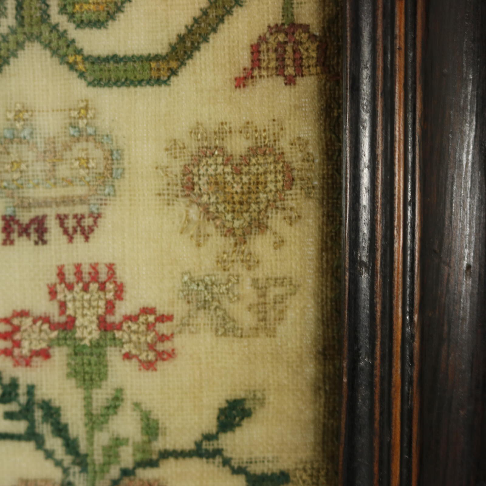 Mounting: The sampler is fixed to board. Frame backed with wood.