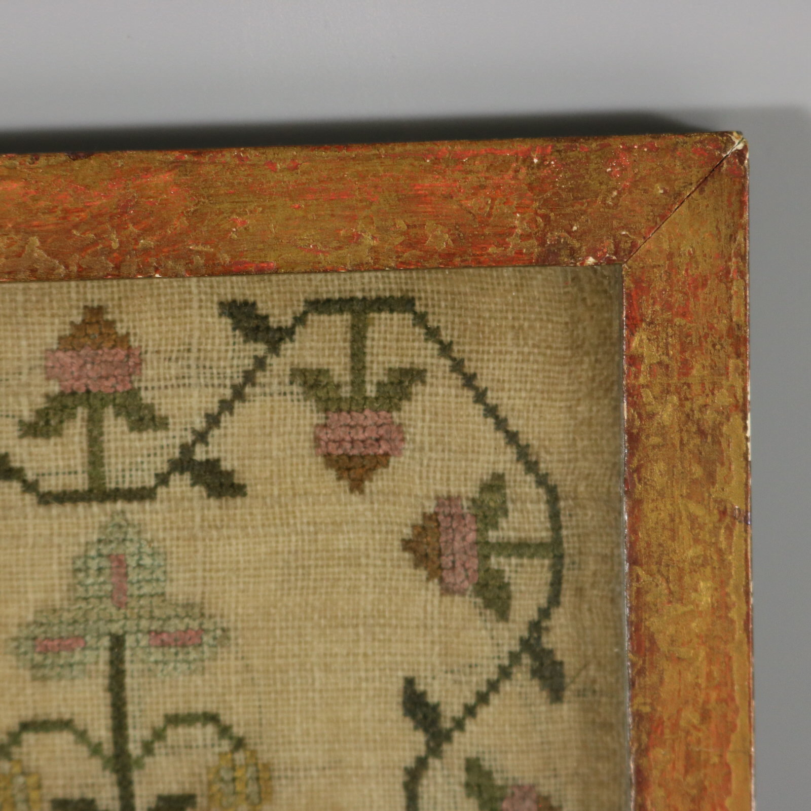 Mounting: The sampler is loose mounted onto card. Frame backed with paper and sealed with tape.