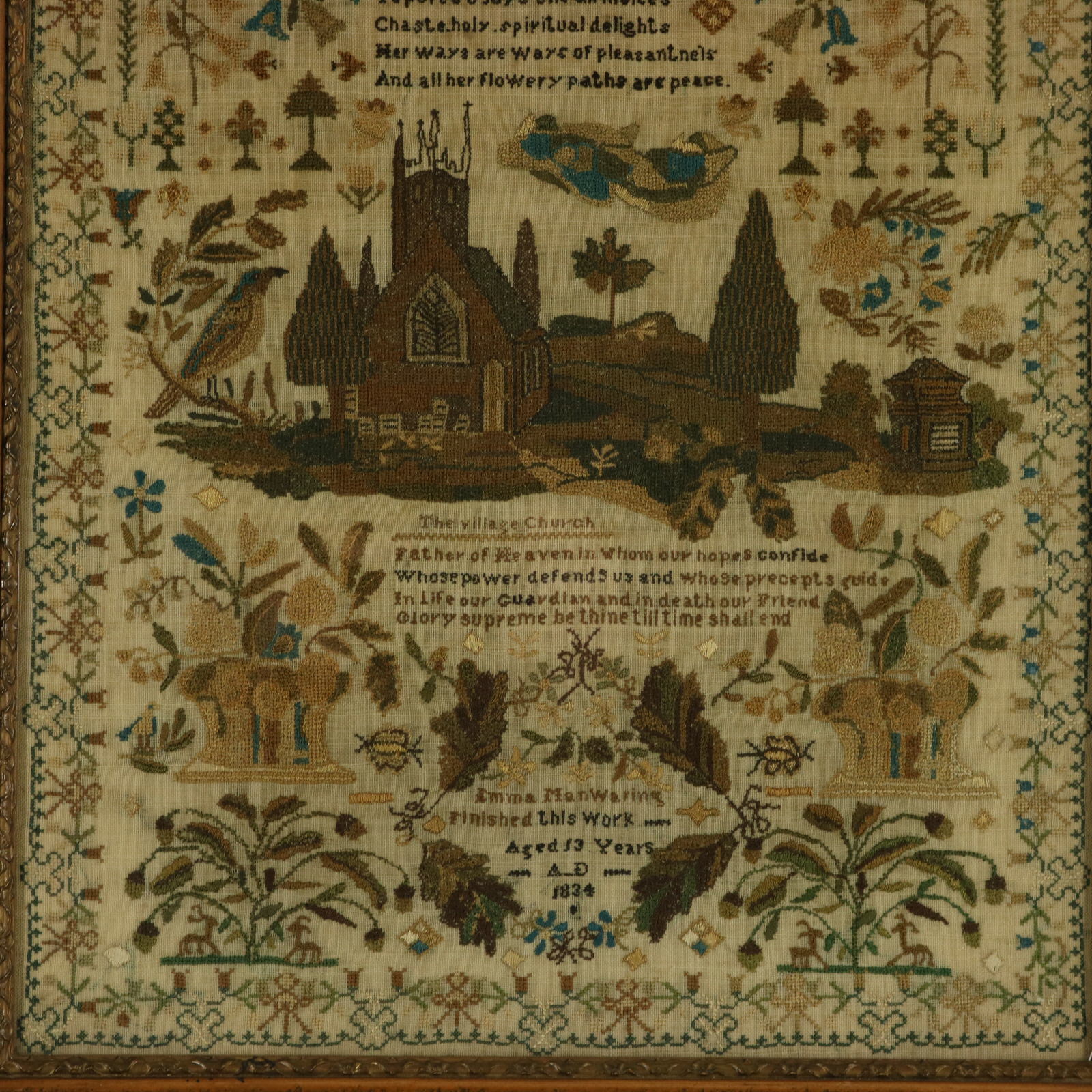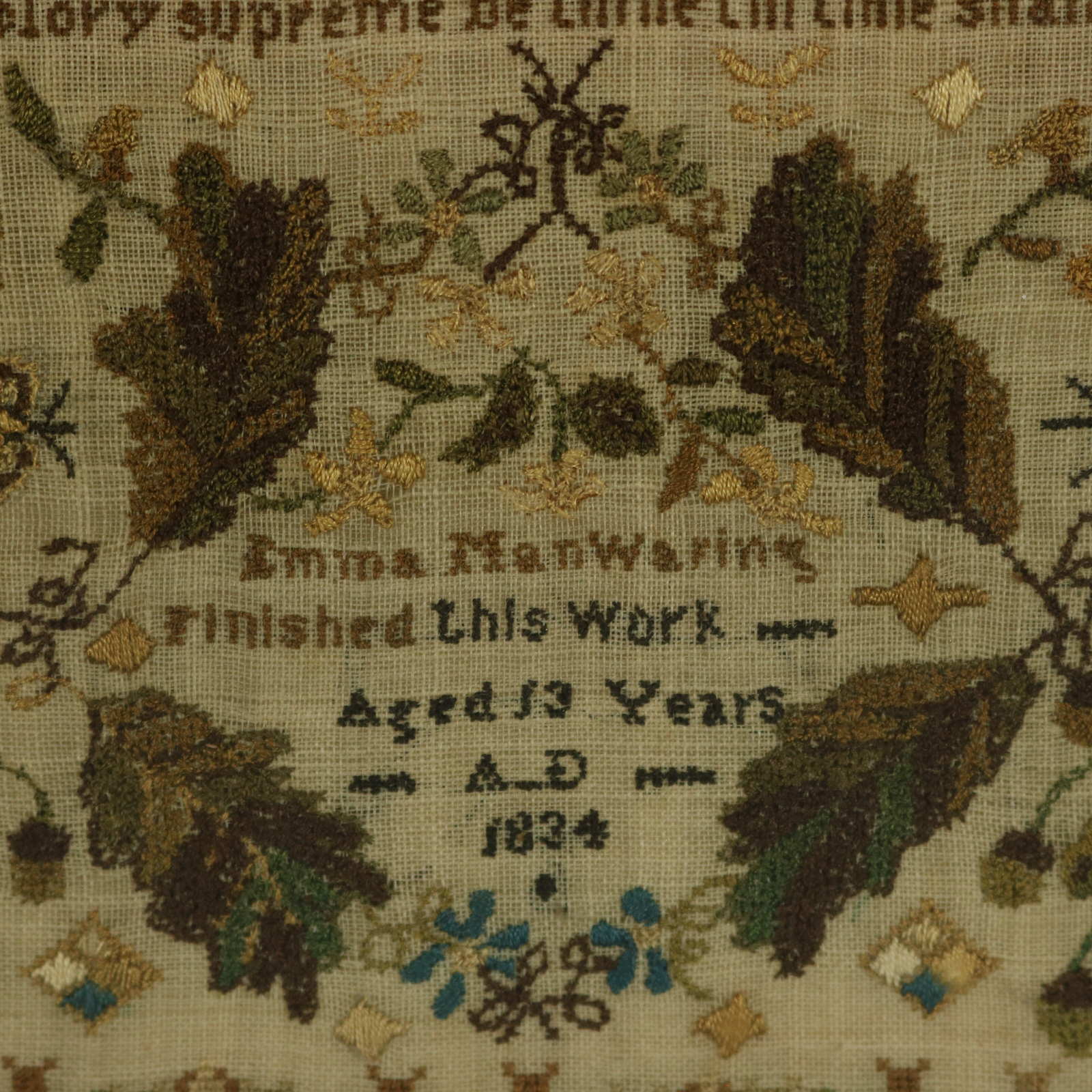 Signed and dated 'Emma ManWaring Finished this Work Aged 13 years A.D 1834'.