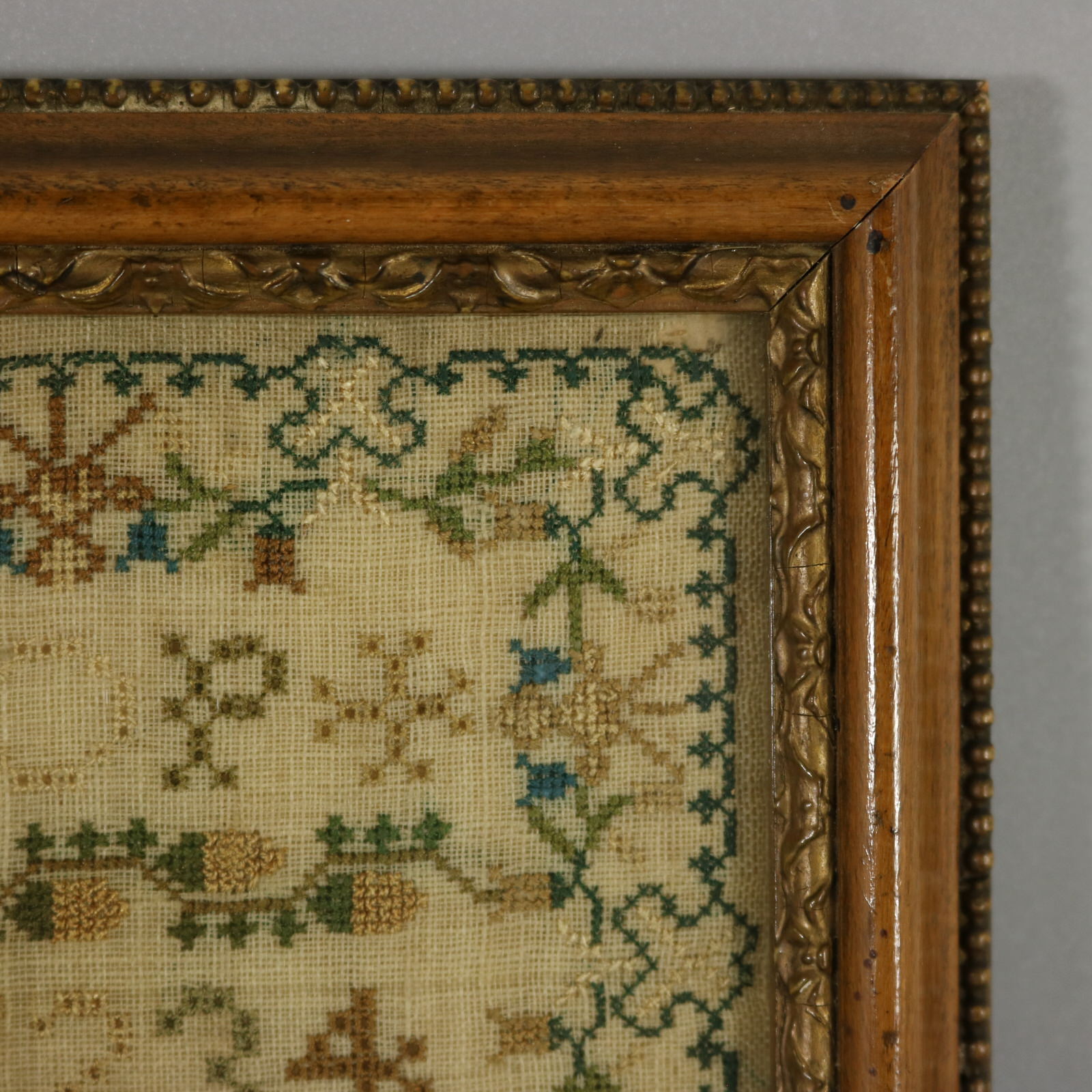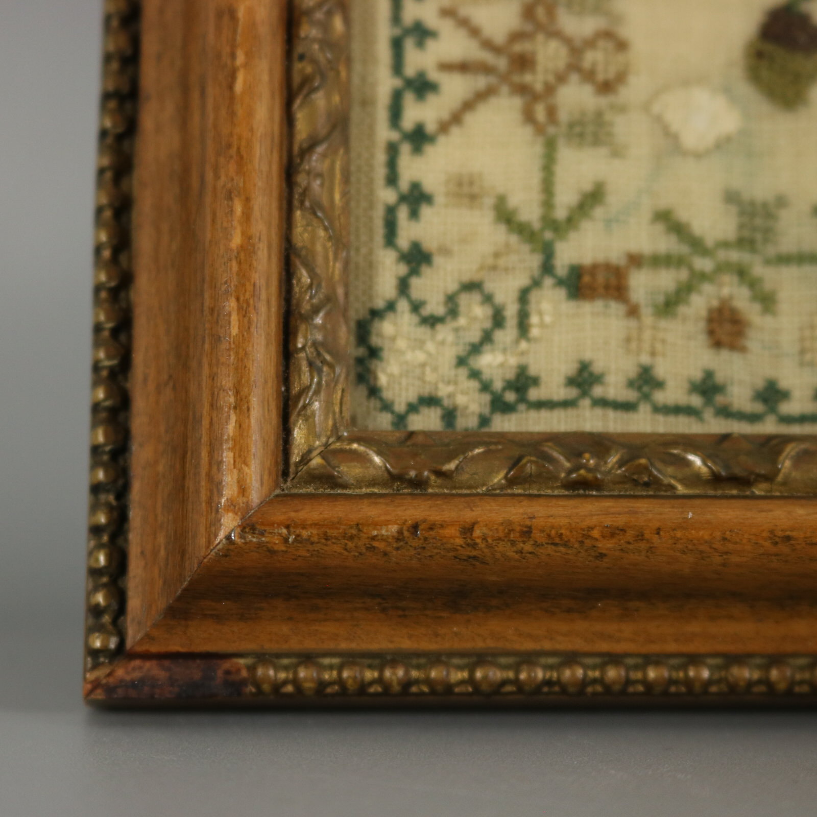 Mounting: The sampler is fixed to acid free card. Frame backed with card and sealed with tape.