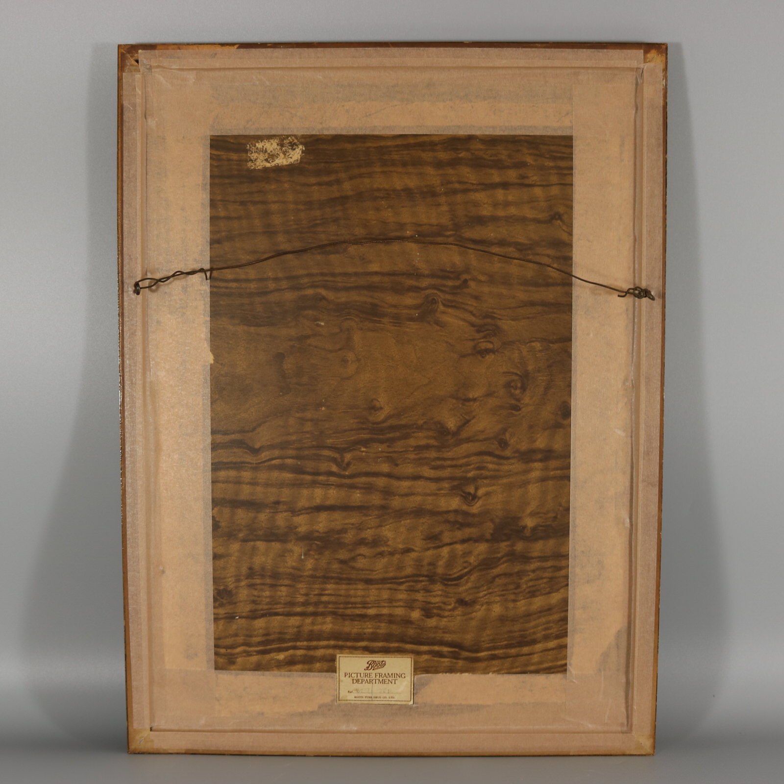 Framed in an old wood frame with glass.