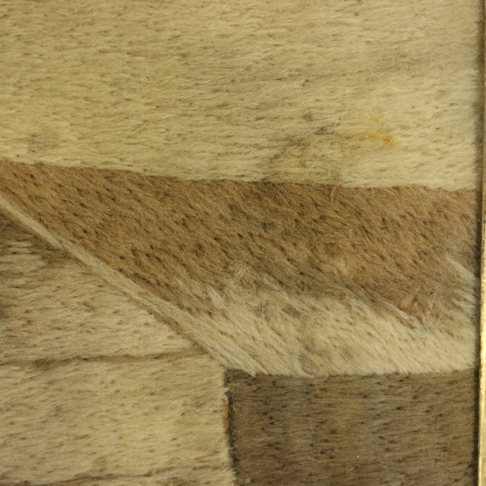 Mounting: The woolwork is stitched to calico slip and stretched over mountboard.