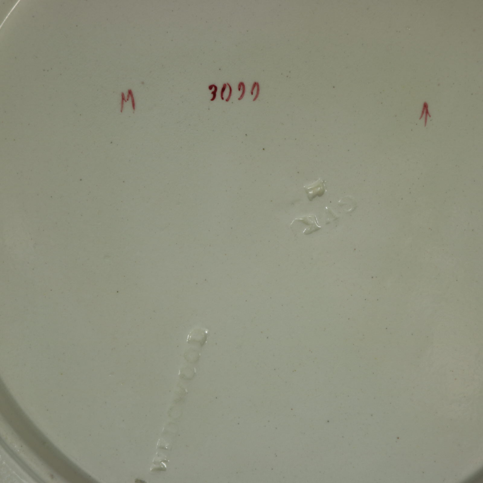 The piece bears maker's marks for the Wedgwood pottery. Bears a pattern number, '3099'. Marks include a factory specific date cipher for the year 1882.