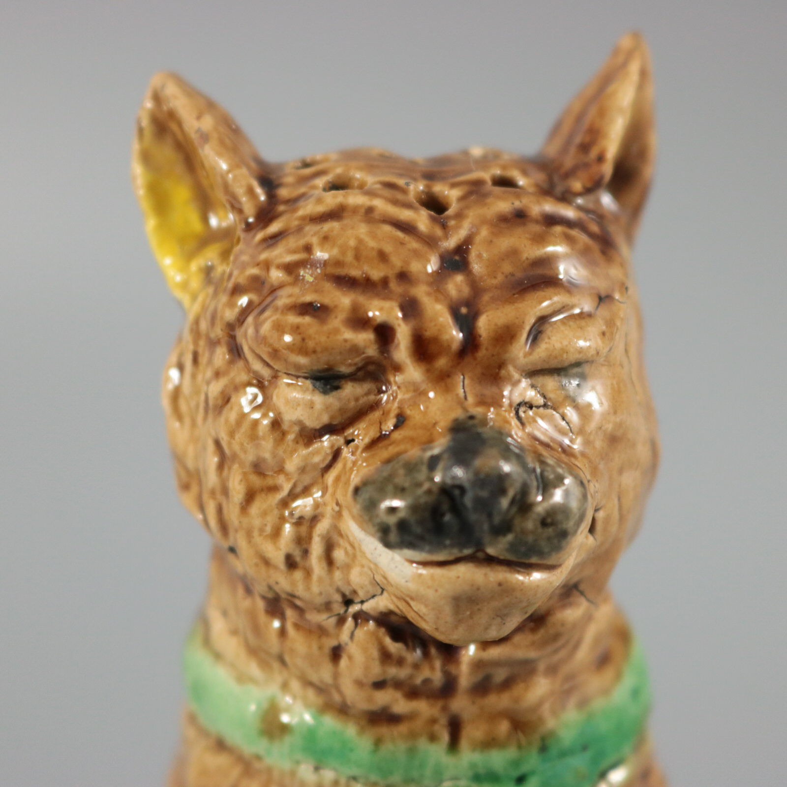 CONDITION: Good. KILN EFFECTS: shrinkage cracks to the side of cat's face.