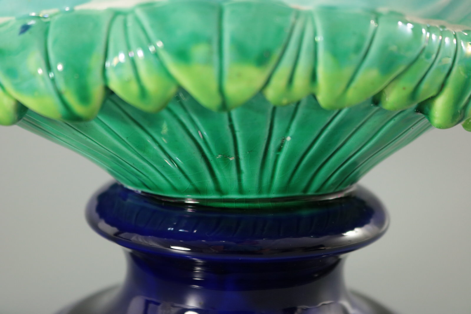 a few specks of kiln detritus caught in the glaze to the base.