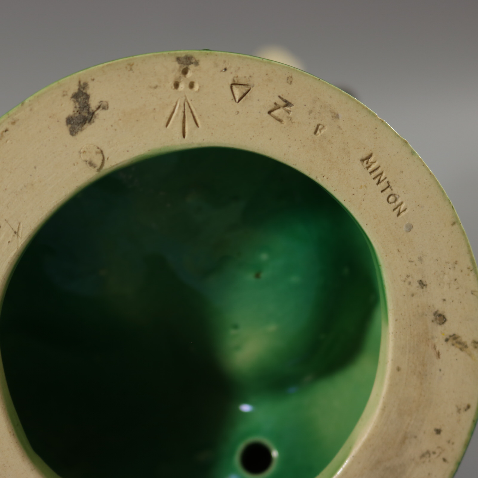 The piece bears maker's marks for the Minton pottery. Marks include a factory specific date cipher for the year 1864.