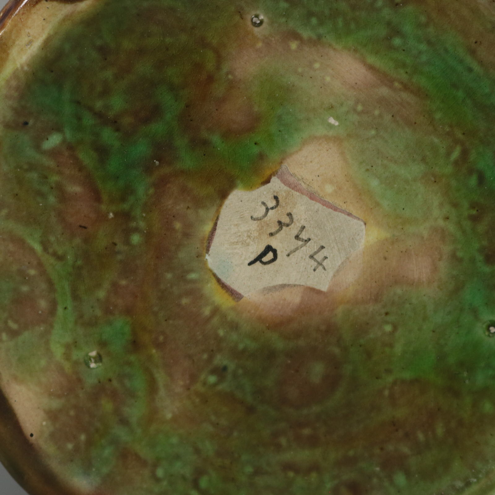 Colouration: brown, green, pink, are predominant. Bears a pattern number, '3374'.