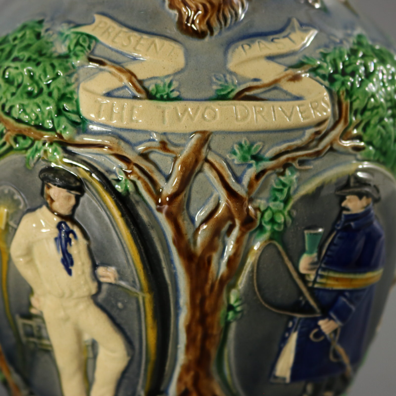 Designed by Henry James Townsend for Summerly's Art Manufactures. Titled, 'The Two Drivers', scenes on either side of the jug depict representations of the social and technological history of 'Present' (1848) and 'Past' (1800).