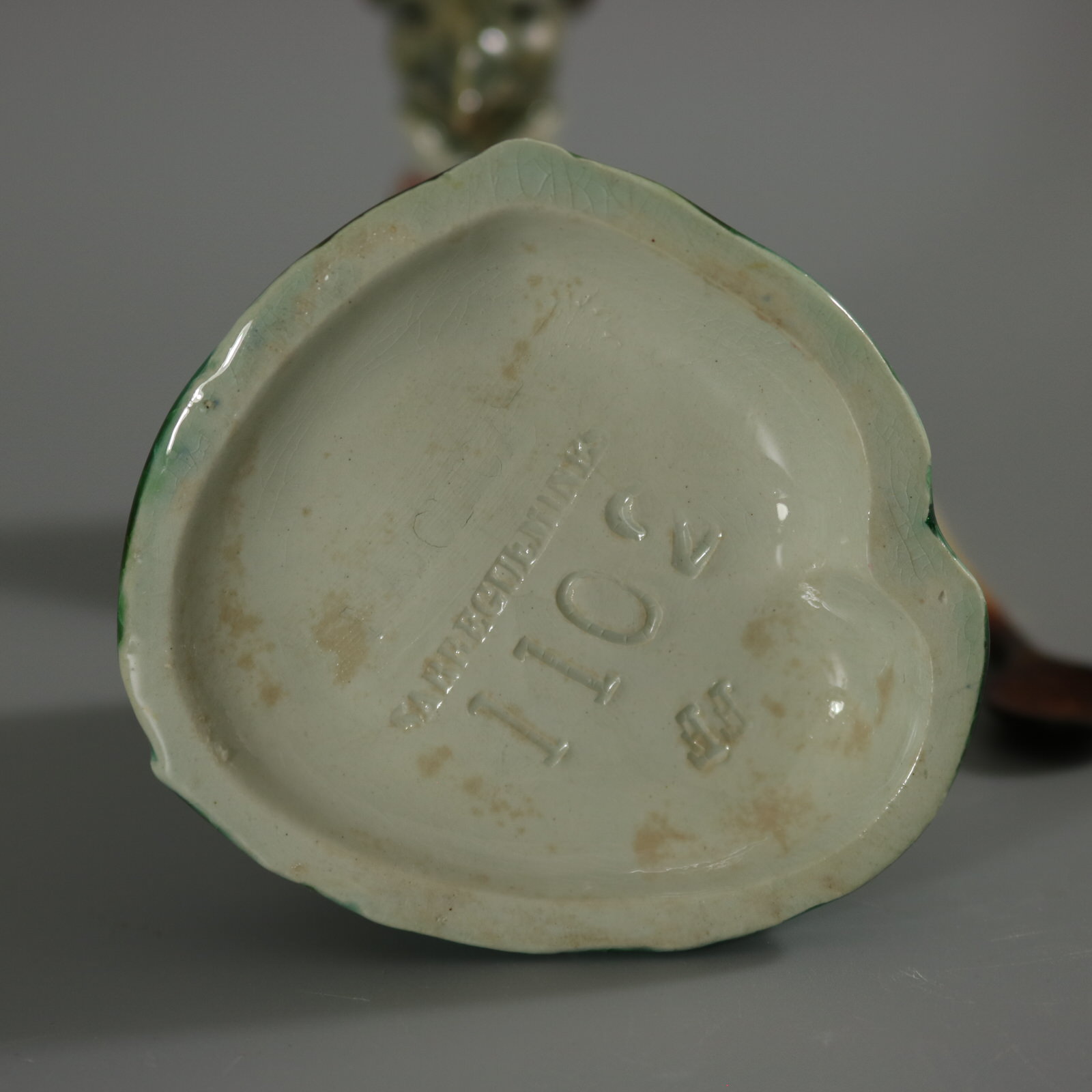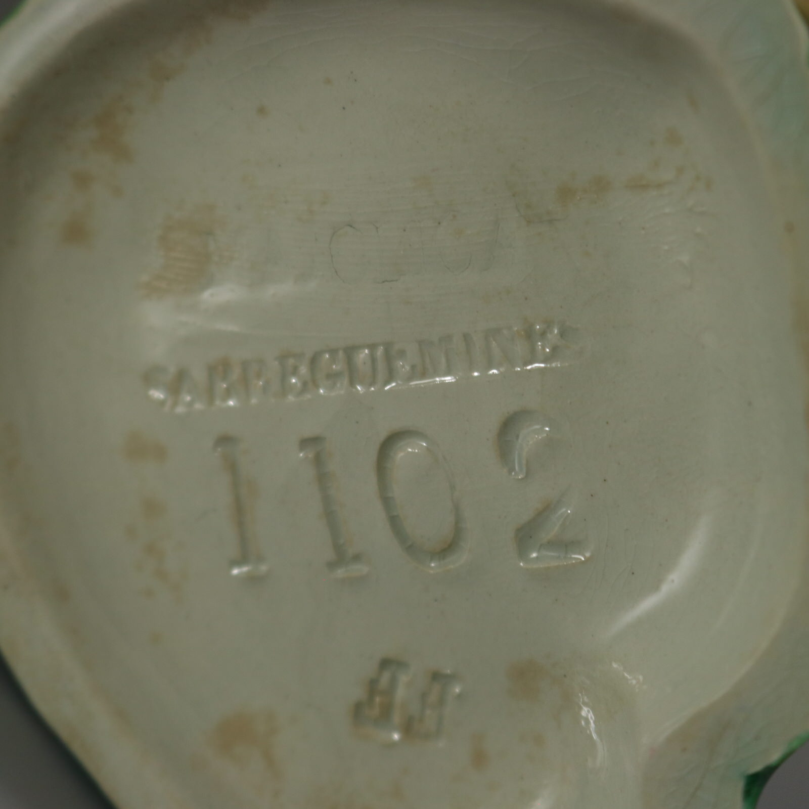 The piece bears maker's marks for the Sarreguemines pottery. Bears a pattern number, '1102'.