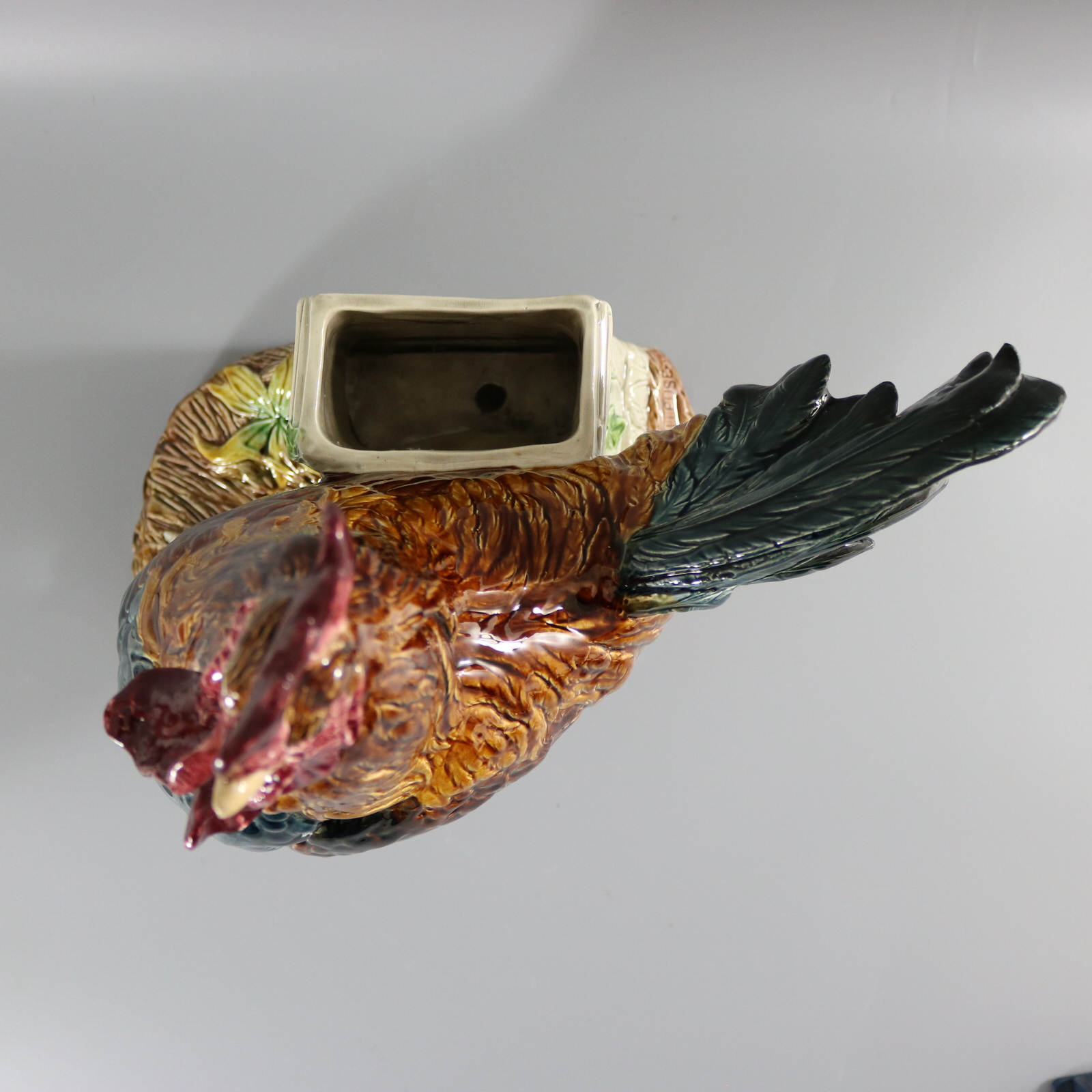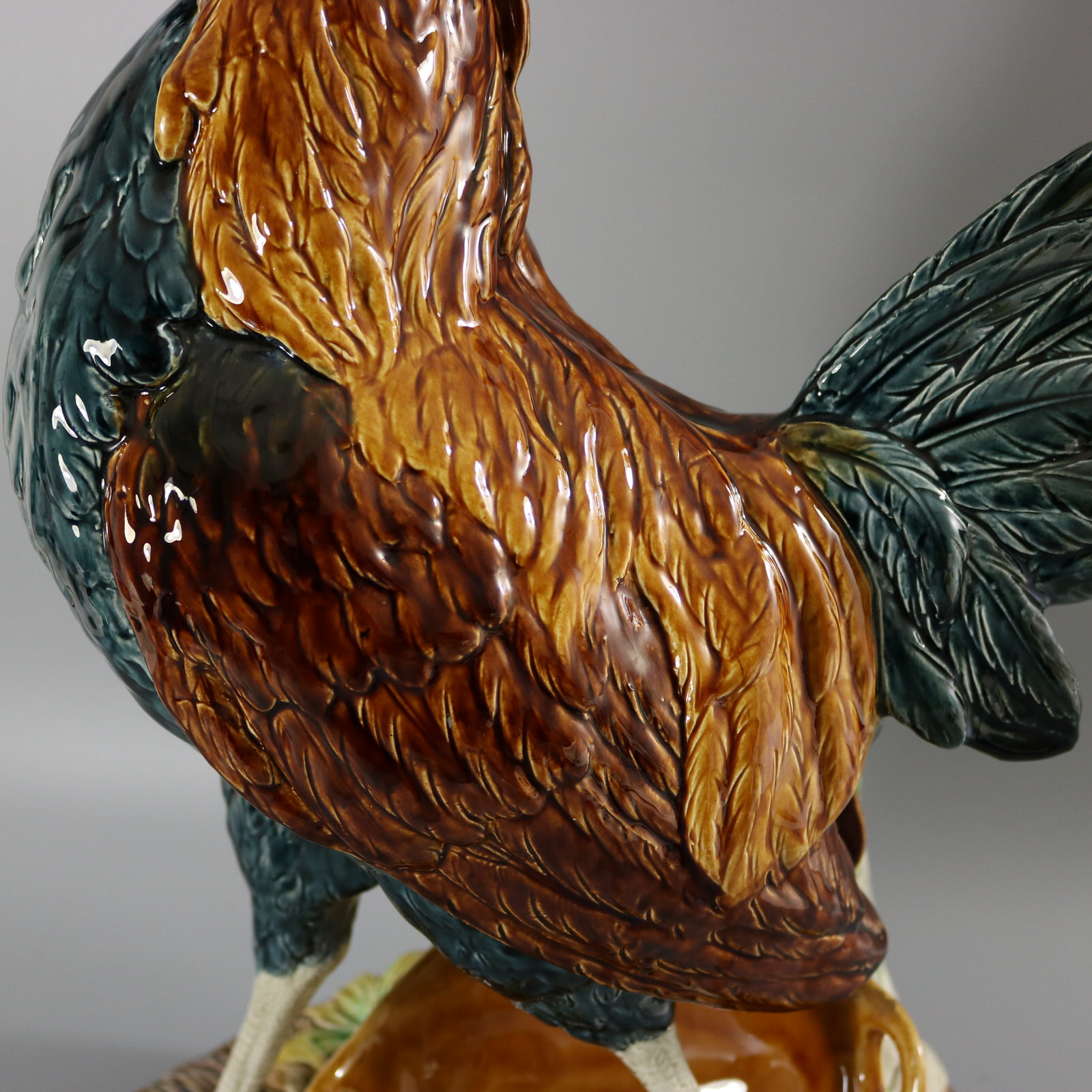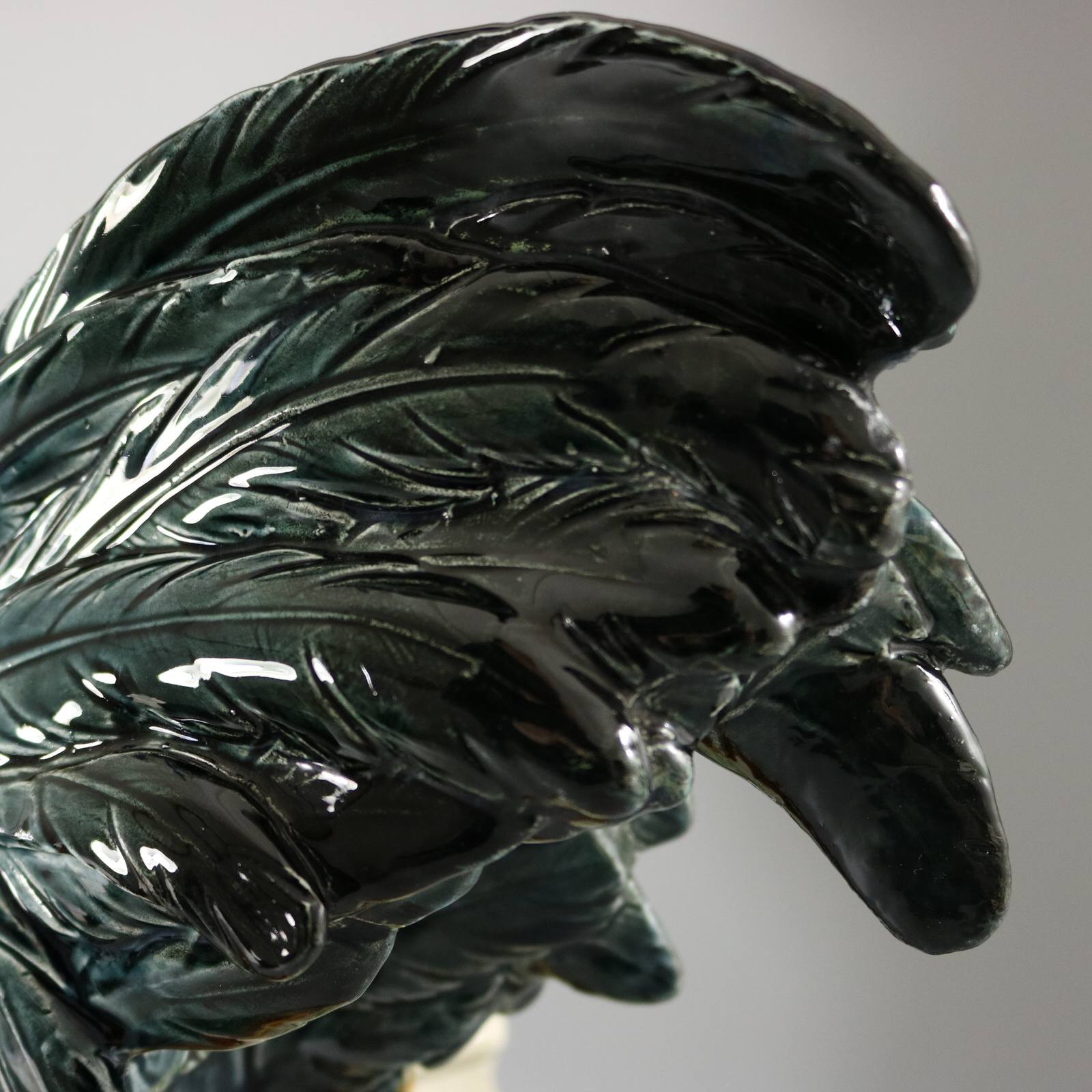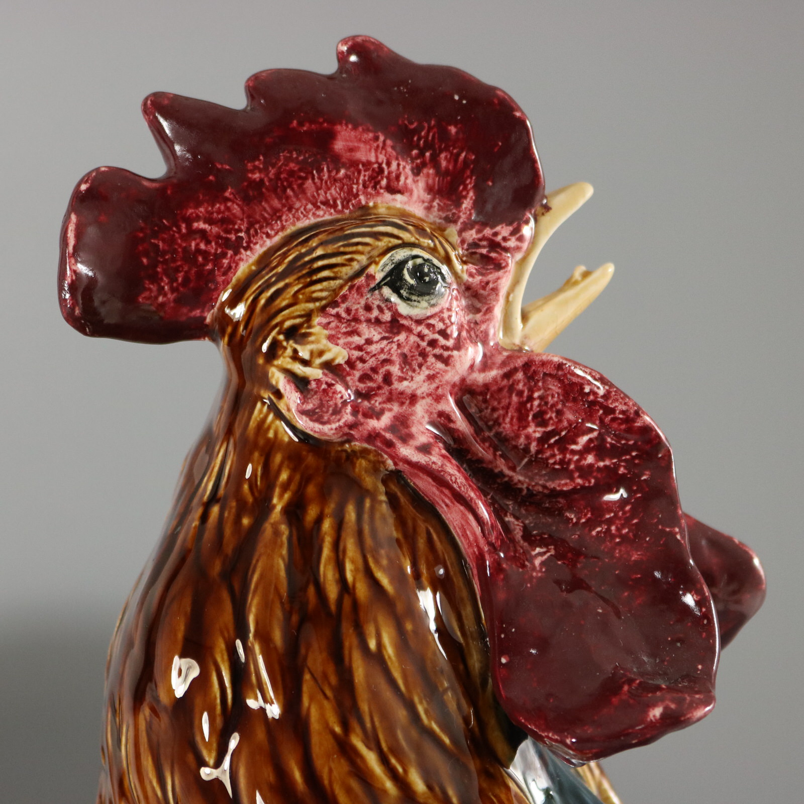 CONDITION: Good. KILN EFFECTS: thin glaze application in places on the wattle and comb, which may look like chips in images, but are not.
