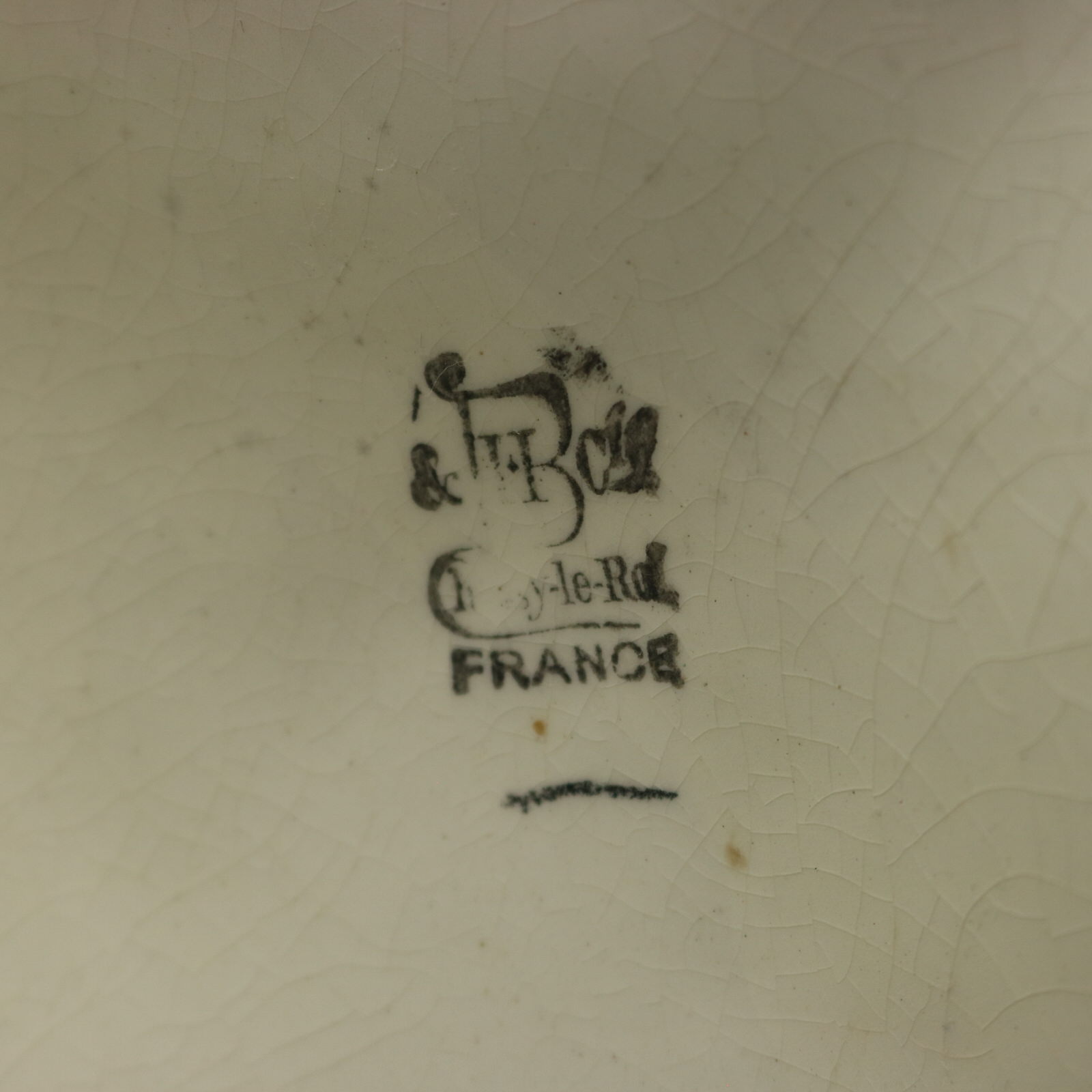 The piece bears maker's marks for the Choisy pottery. Bears a pattern number, '1491 J4'.