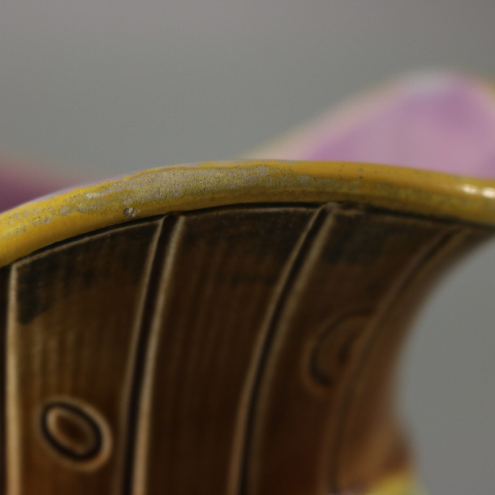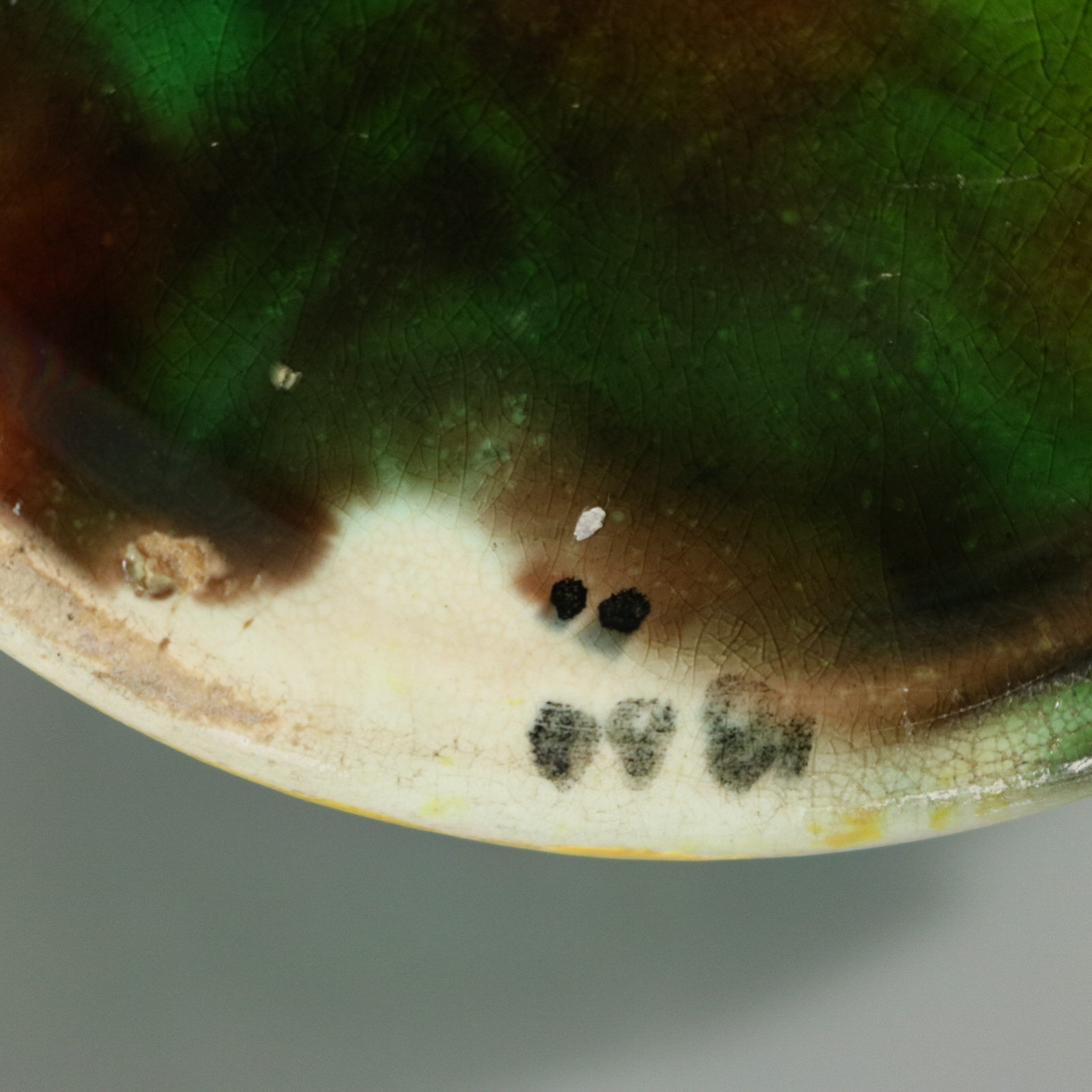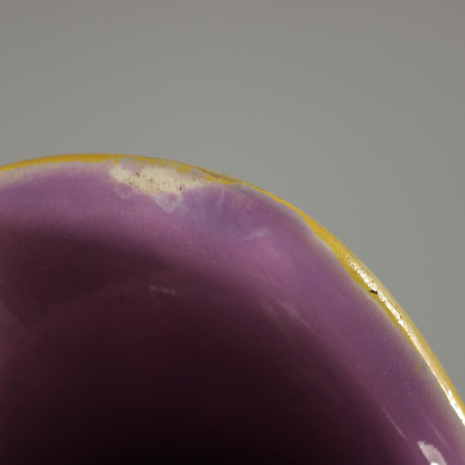 CONDITION: Good. KILN EFFECTS: thin glaze application to the ochre rim.