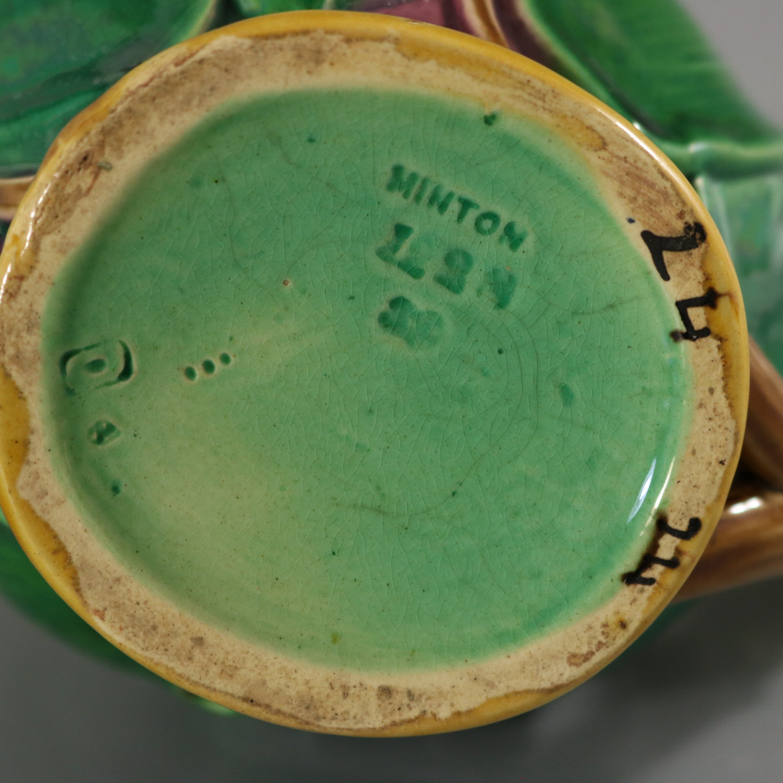 The piece bears maker's marks for the Minton pottery. Bears a pattern number, '1228'.