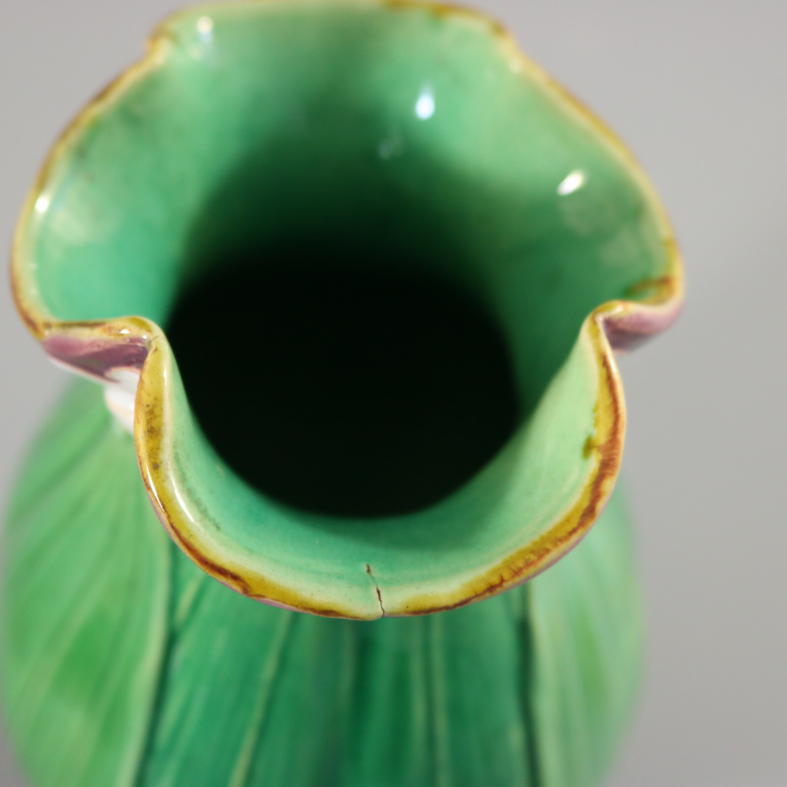 CONDITION: Very Good. No restoration. KILN EFFECTS: firing crack to the spout;