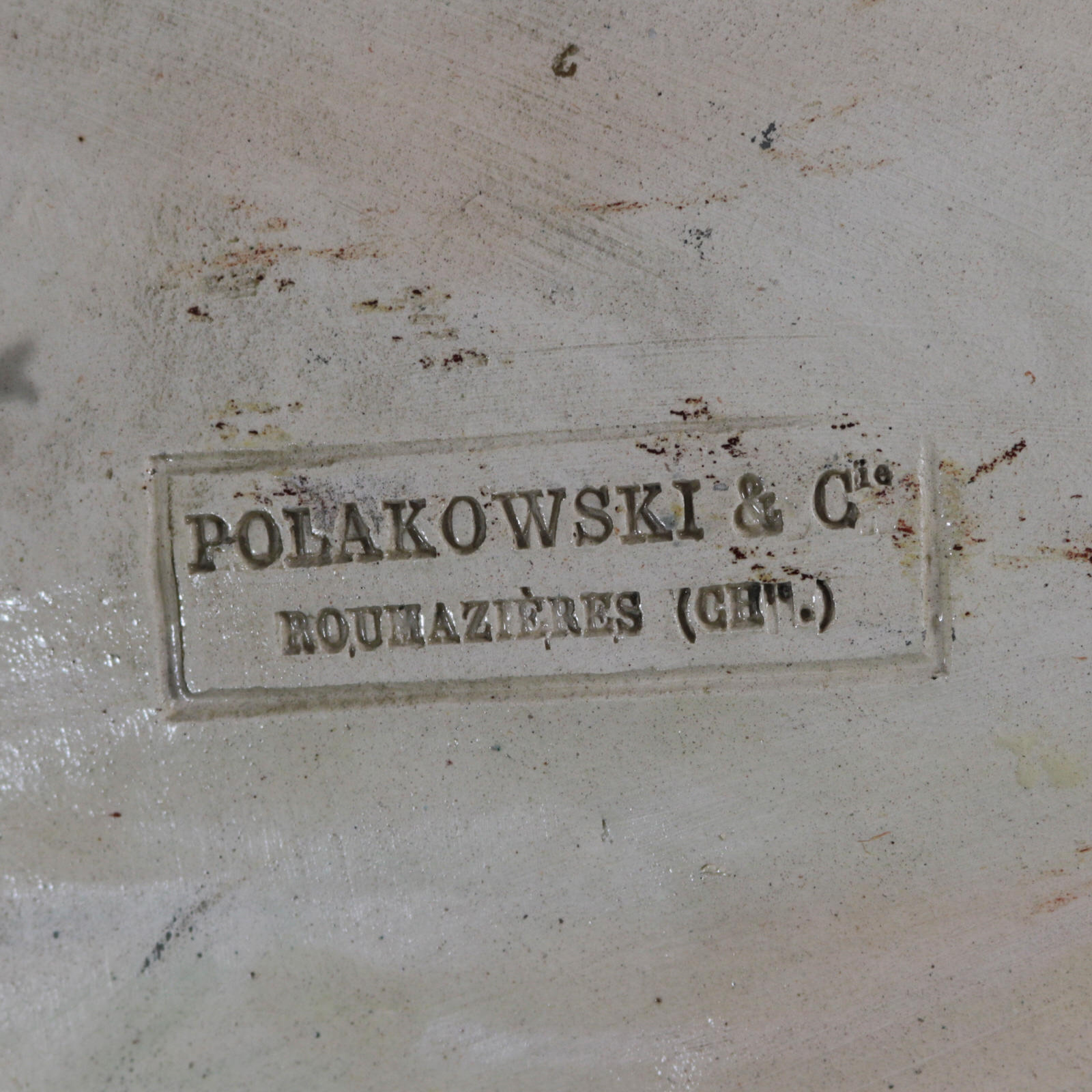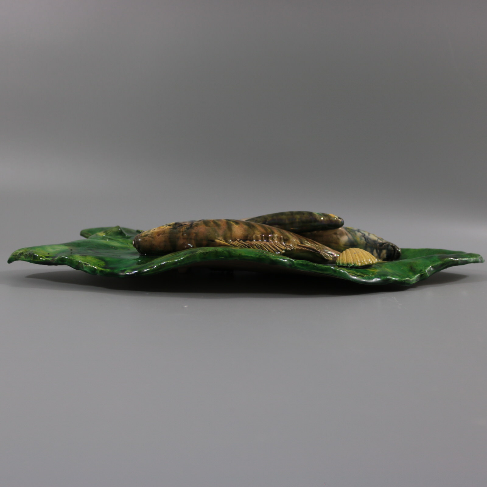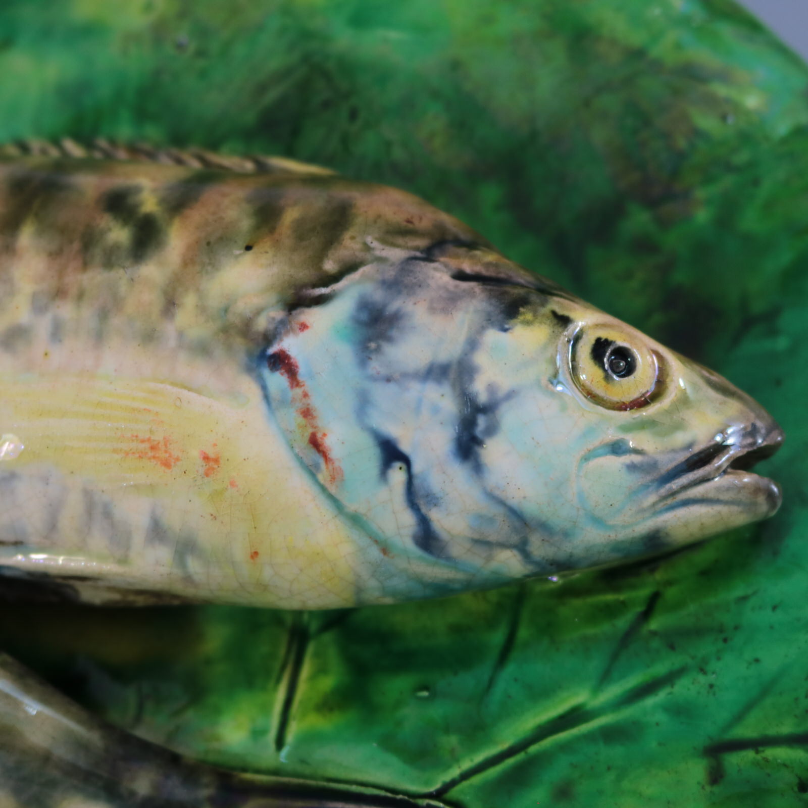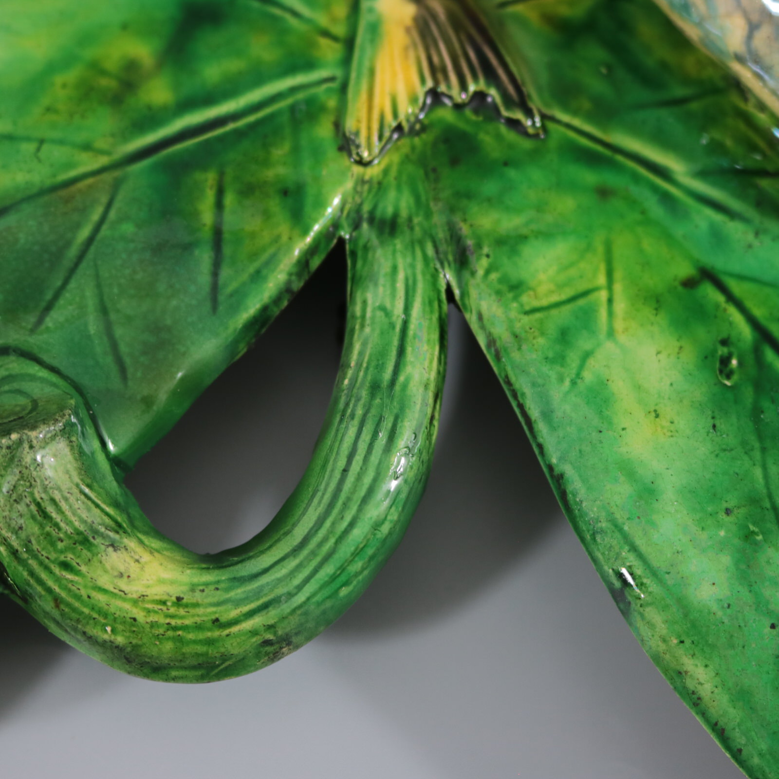 patches of stray coloured glaze to the leaf.