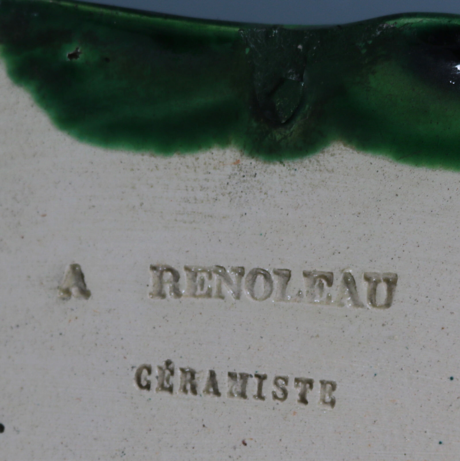 The piece bears maker's marks for the Alfred Renoleau pottery.
