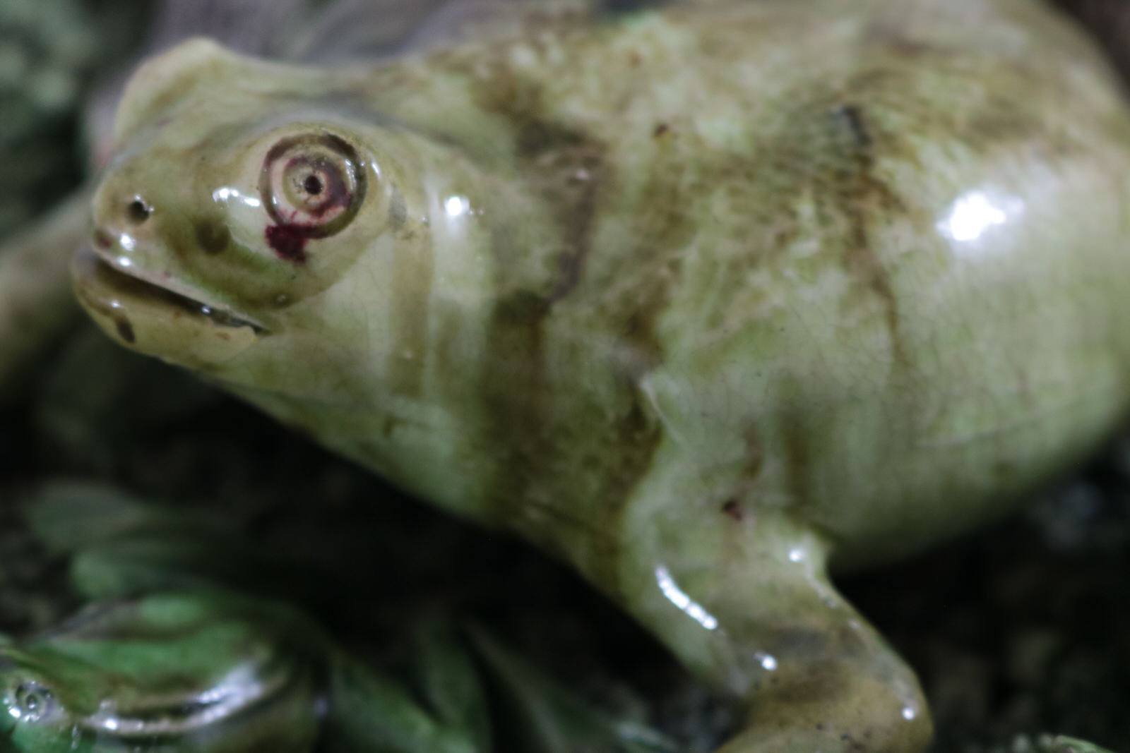 Stabilised and retouched cracks to three of large frog legs.