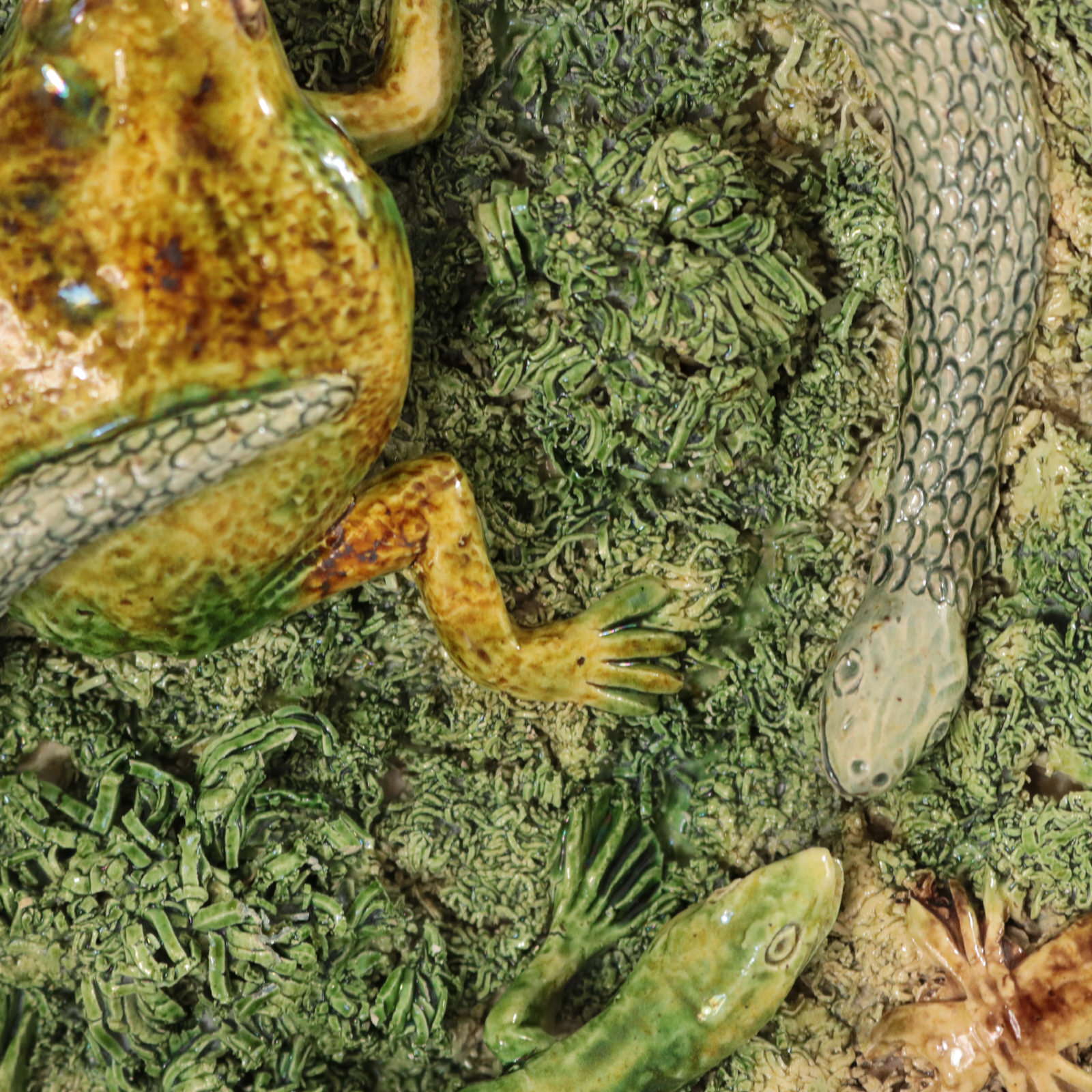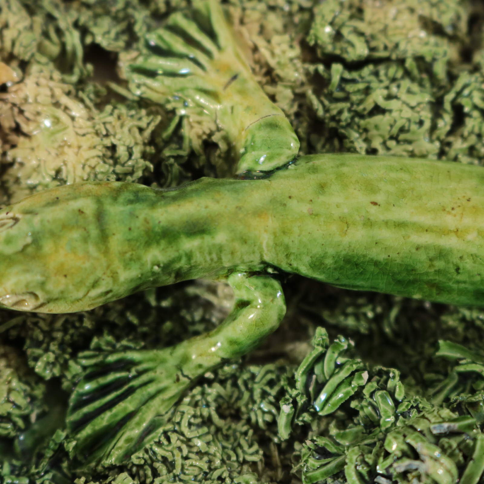 CONDITION: Very Good. No restoration. KILN EFFECTS: shrinkage cracks to the lizards legs.