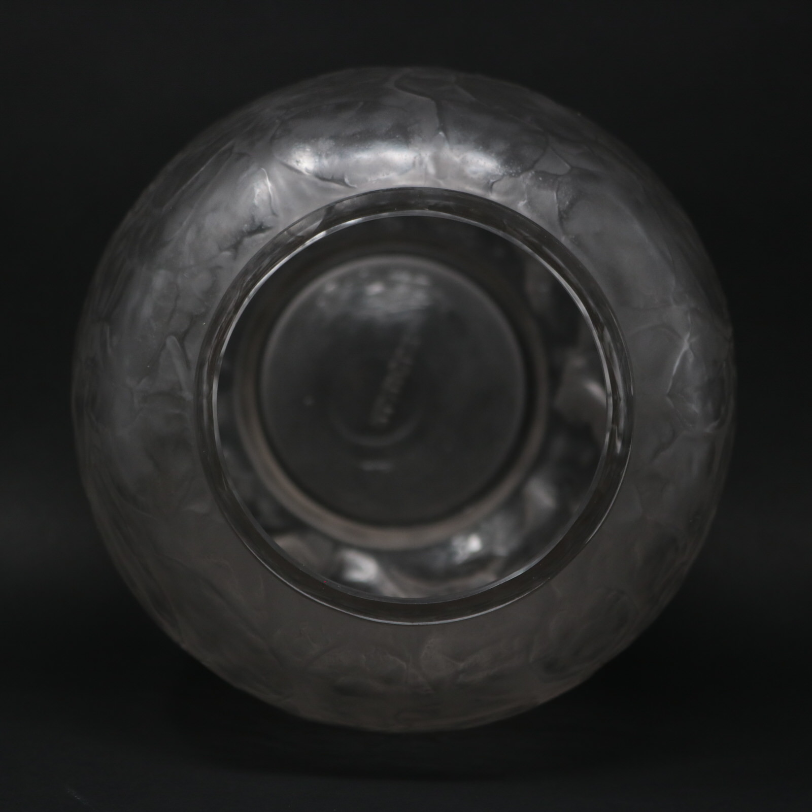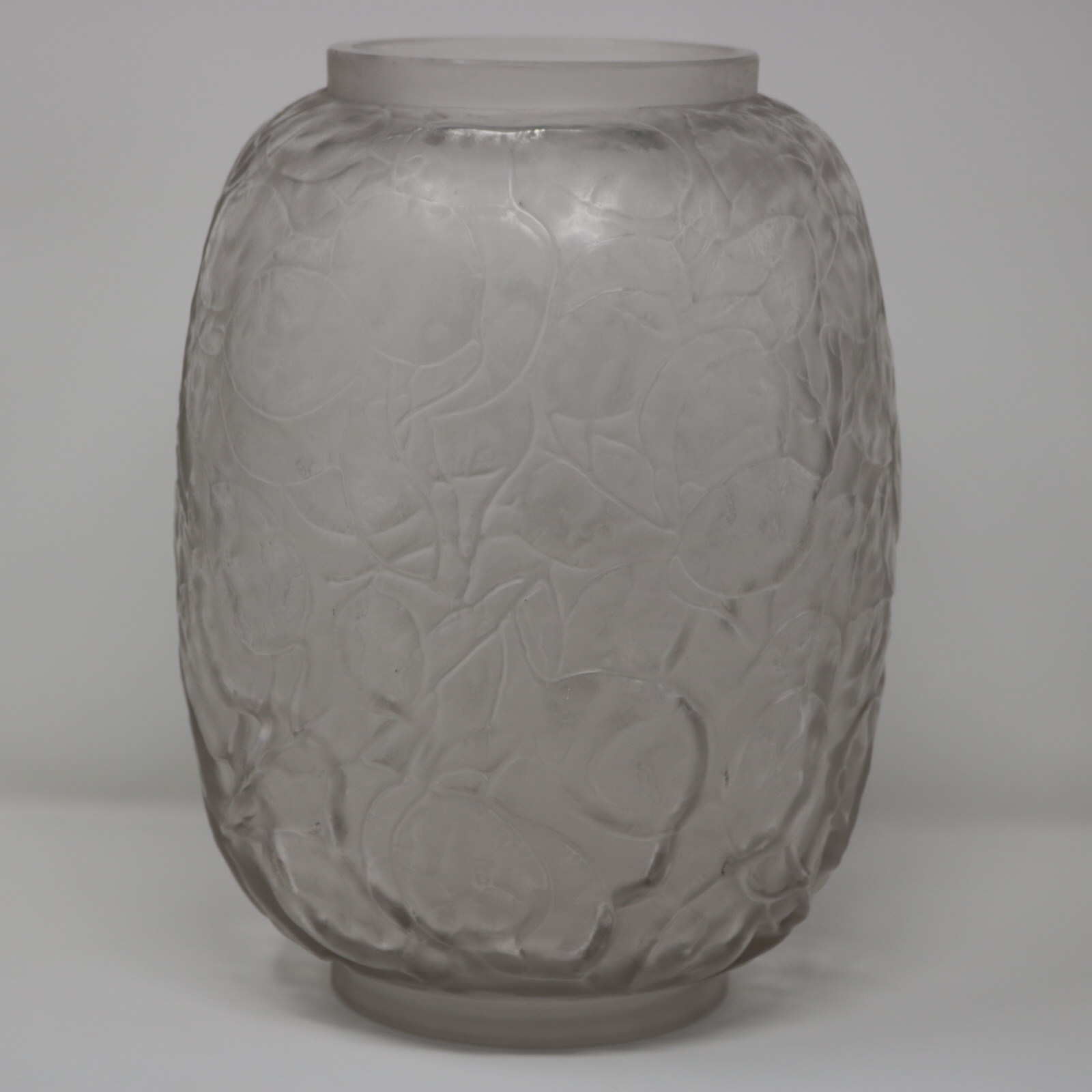 Introduced in 1928. 23cm (9.1ins) high, 17cm (6.7ins) diameter. Rene Lalique clear and frosted glass 'Monnaie Du Pape' Vase.