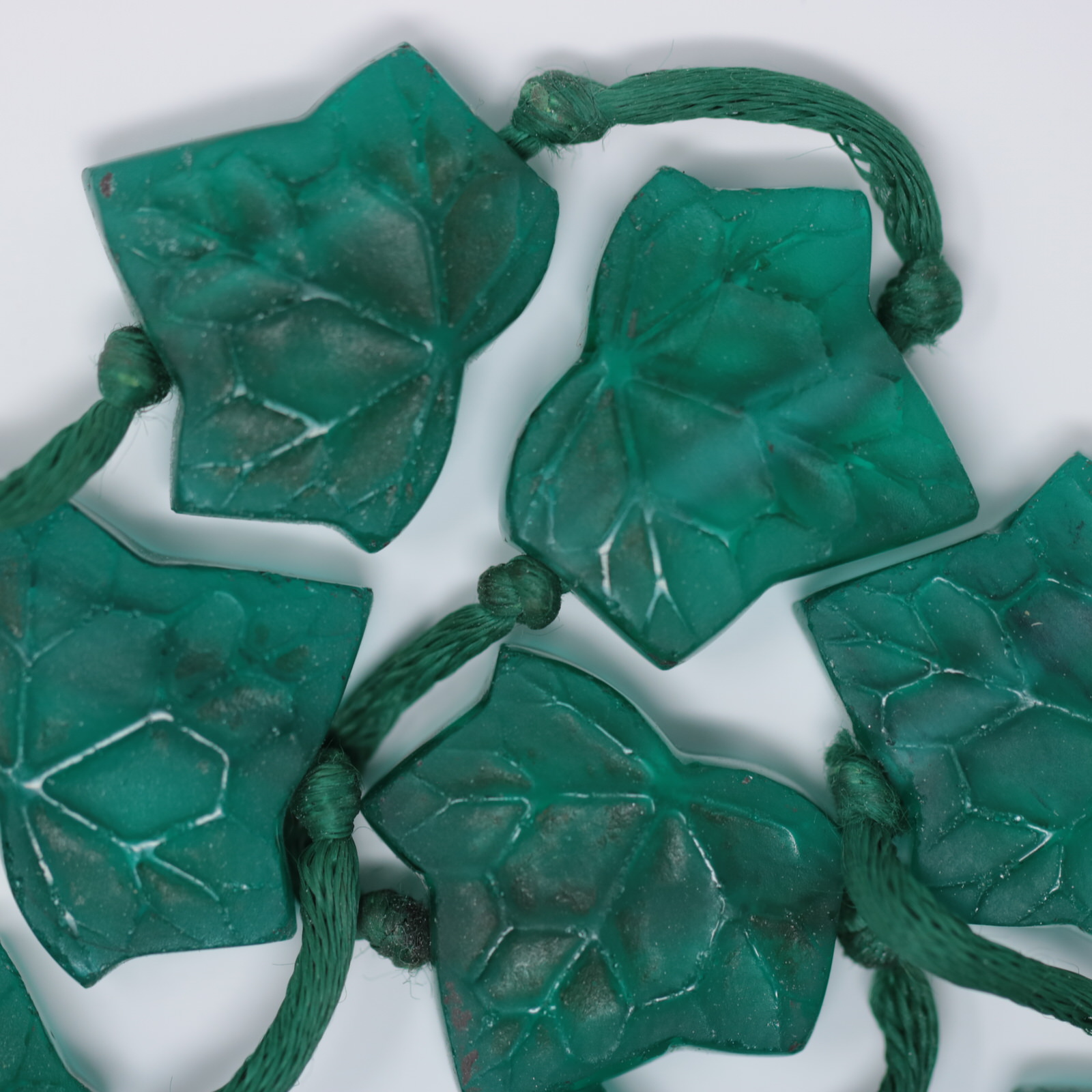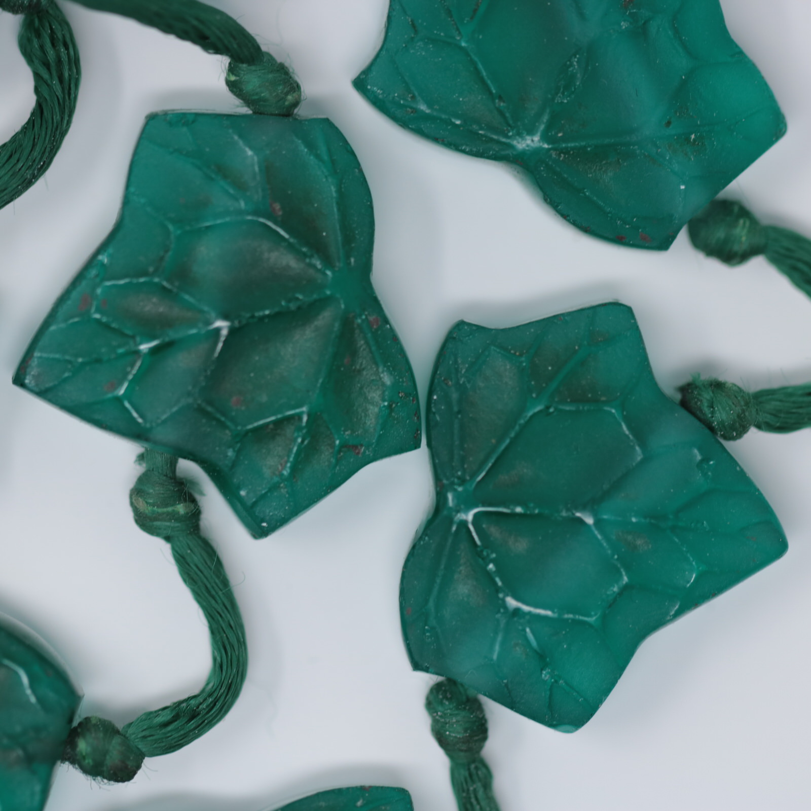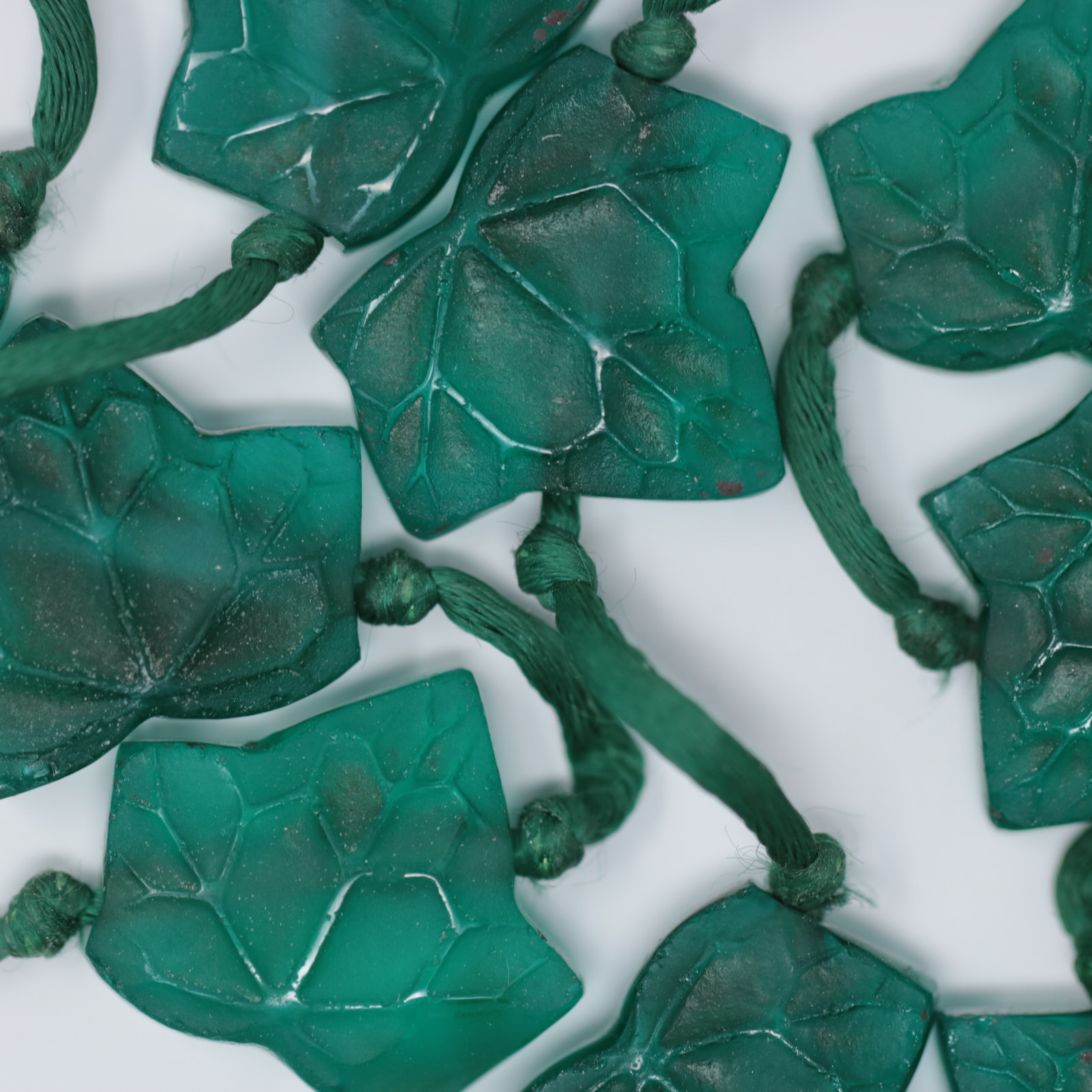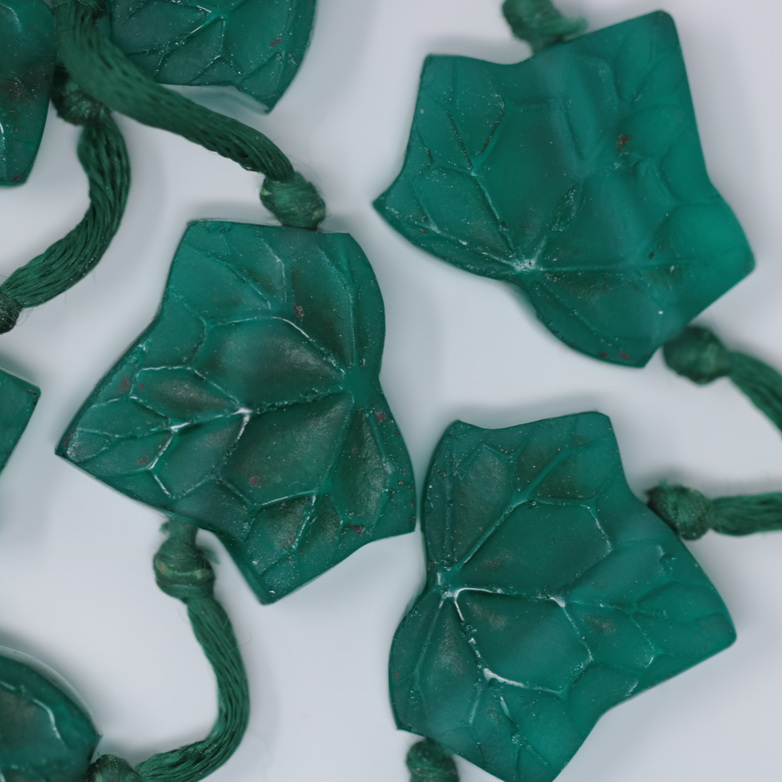 Introduced in 1919. Rene Lalique green glass 'Feuilles De Lierre' Leaves Necklace.