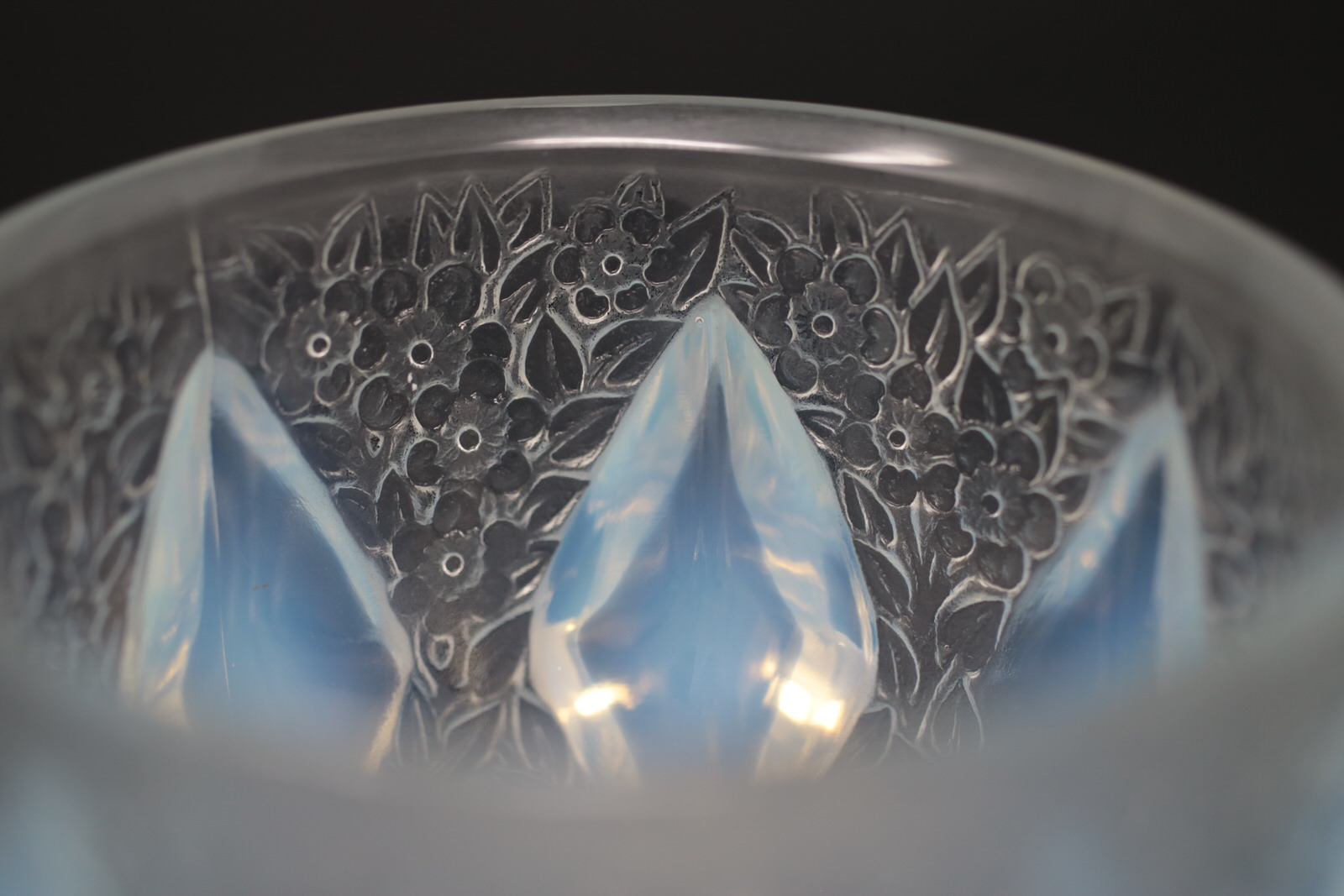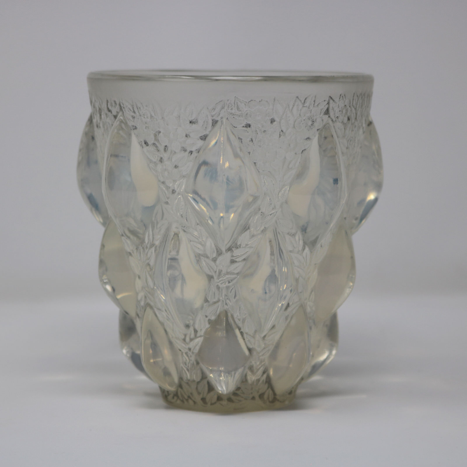 Introduced in 1927. 5.1ins (13cm) high, 12cm (4.7ins) diameter. Rene Lalique Opalescent Glass 'Rampillon' Vase.