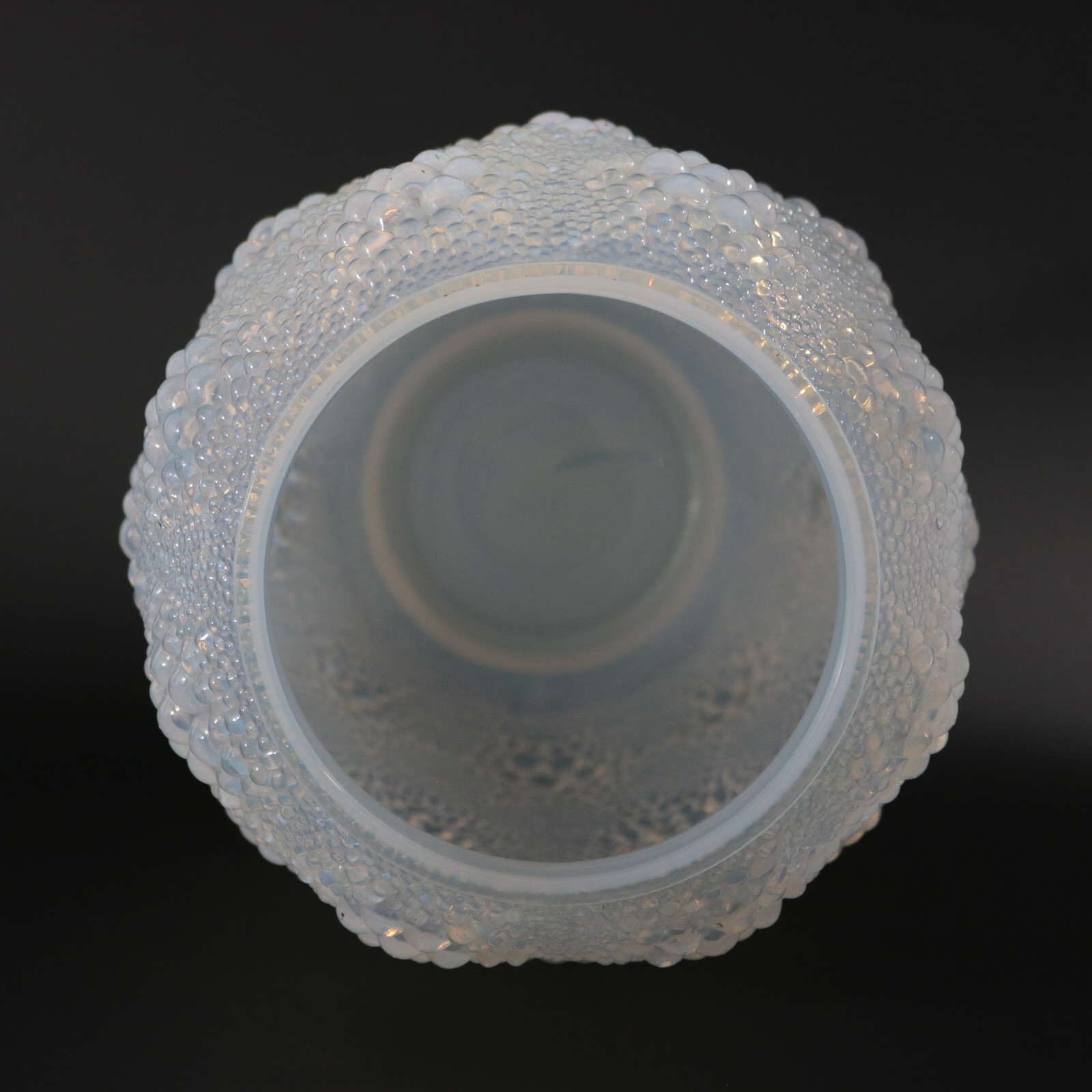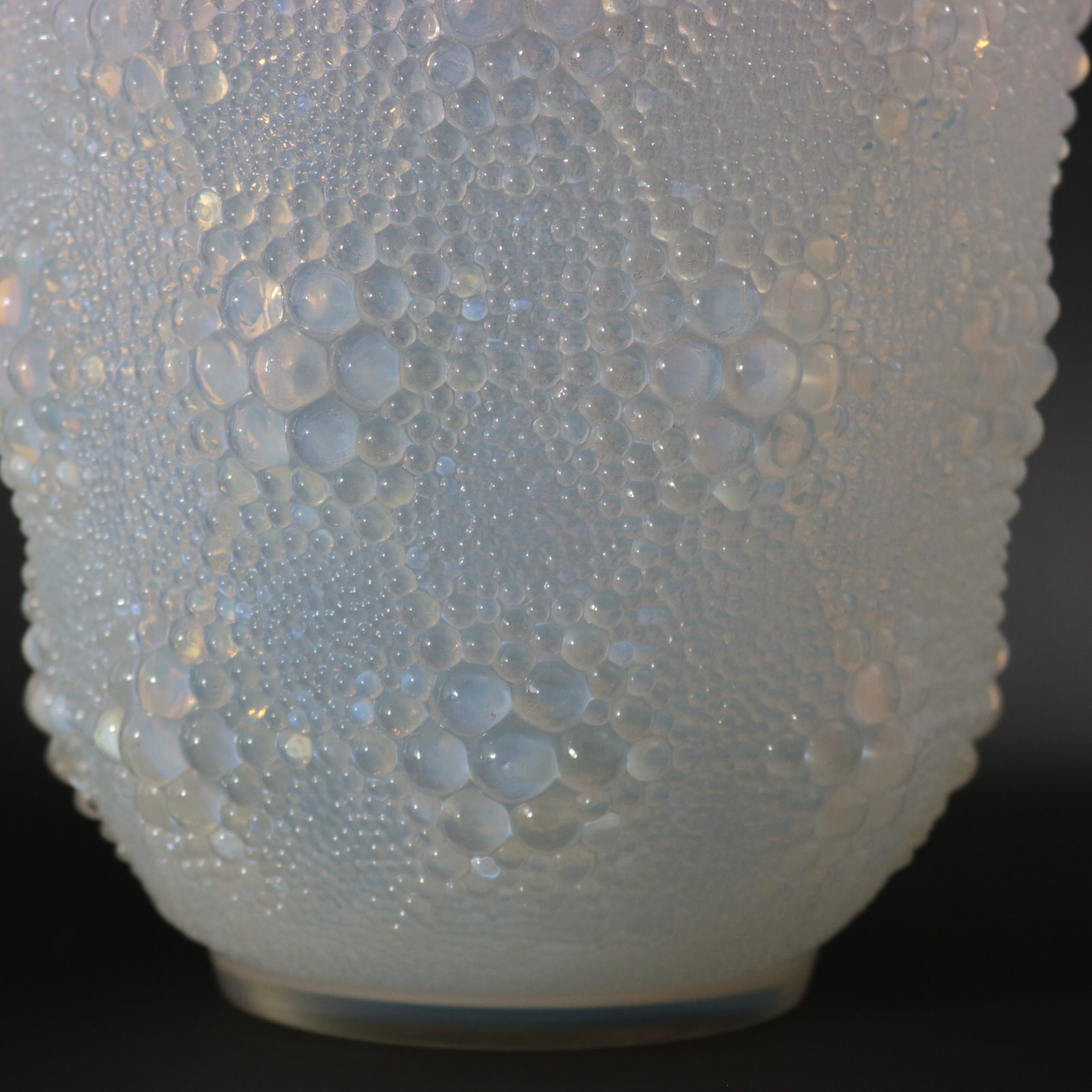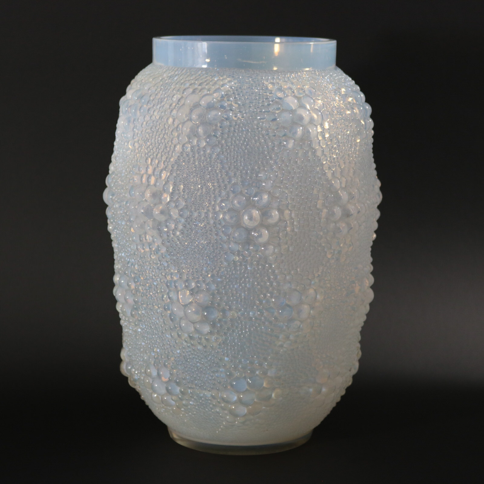 Introduced in 1932. 29cm (11.4ins) high, 18cm (7.1ins) diameter. Rene Lalique Opalescent Glass 'Davos' Vase.