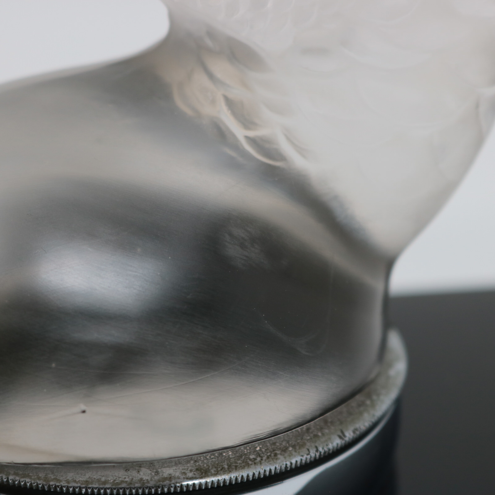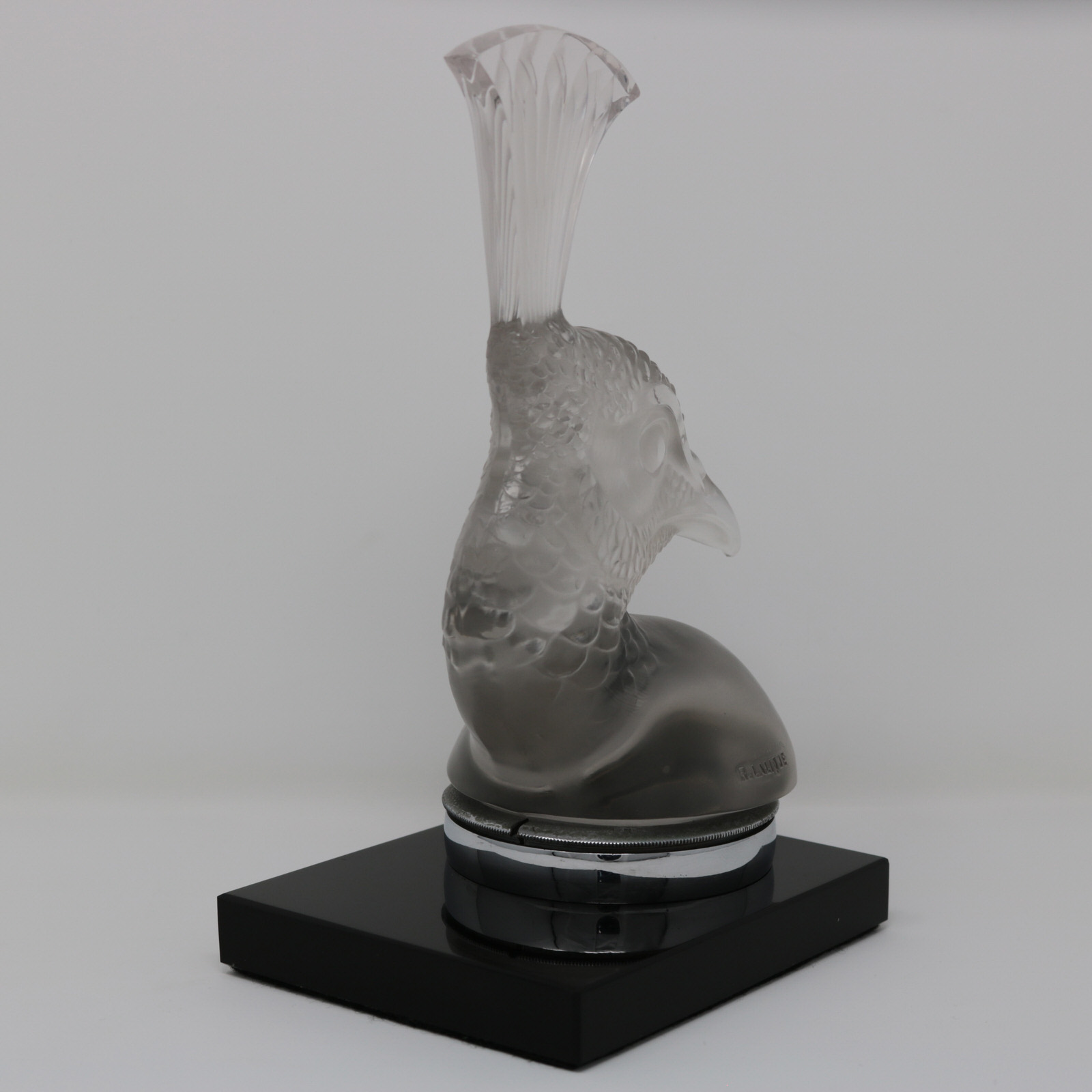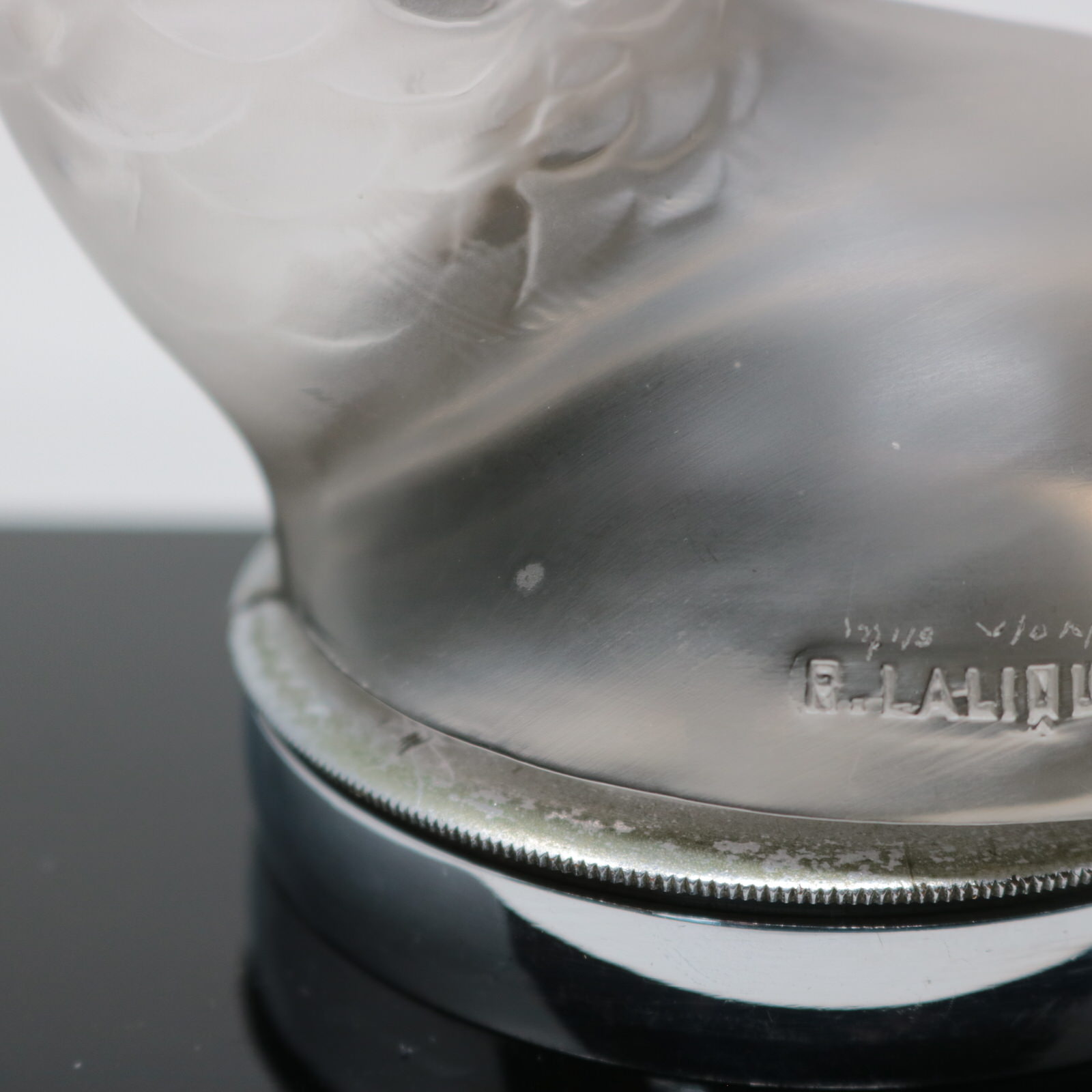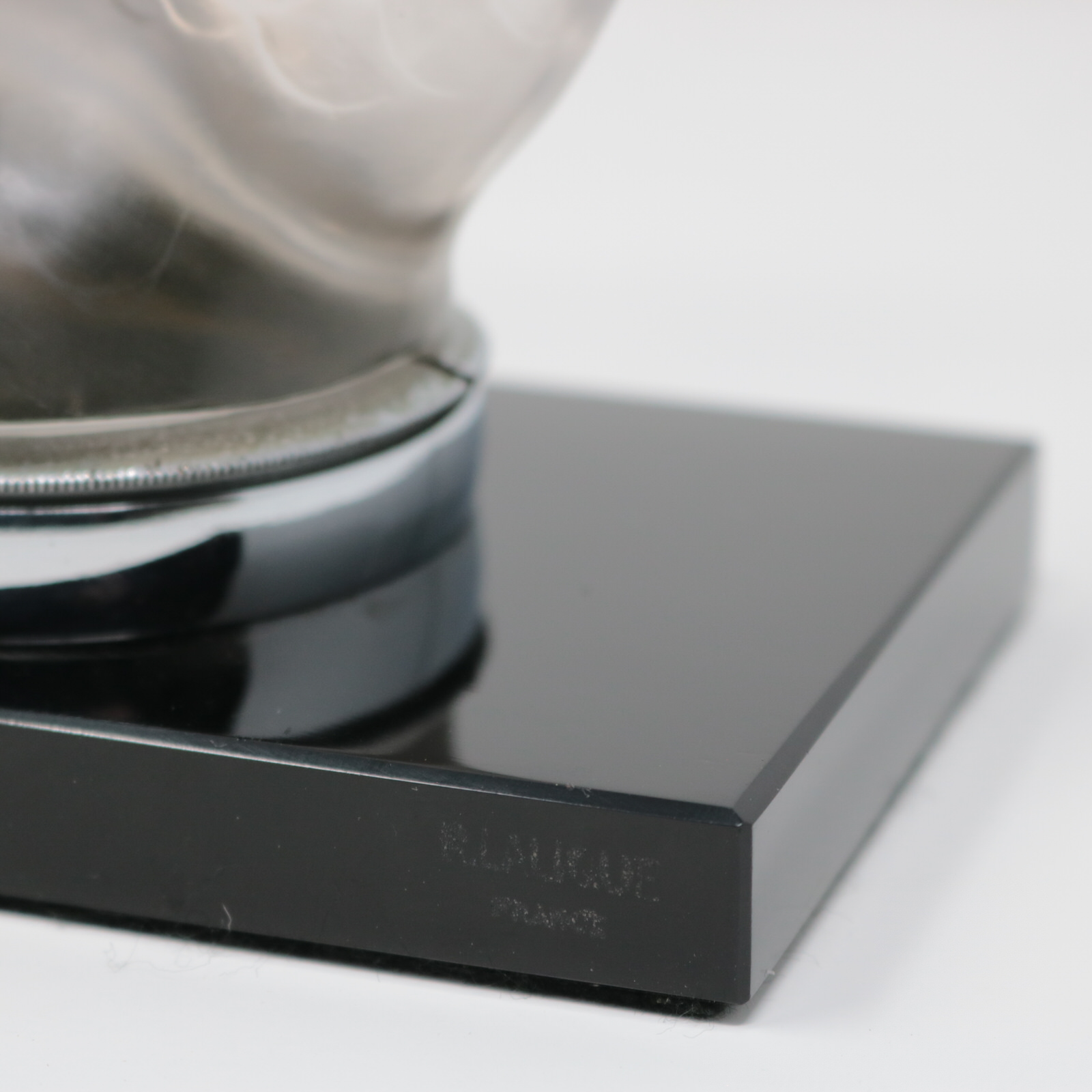 Stenciled makers mark for the front of the black base, 'R LALIQUE FRANCE'.
