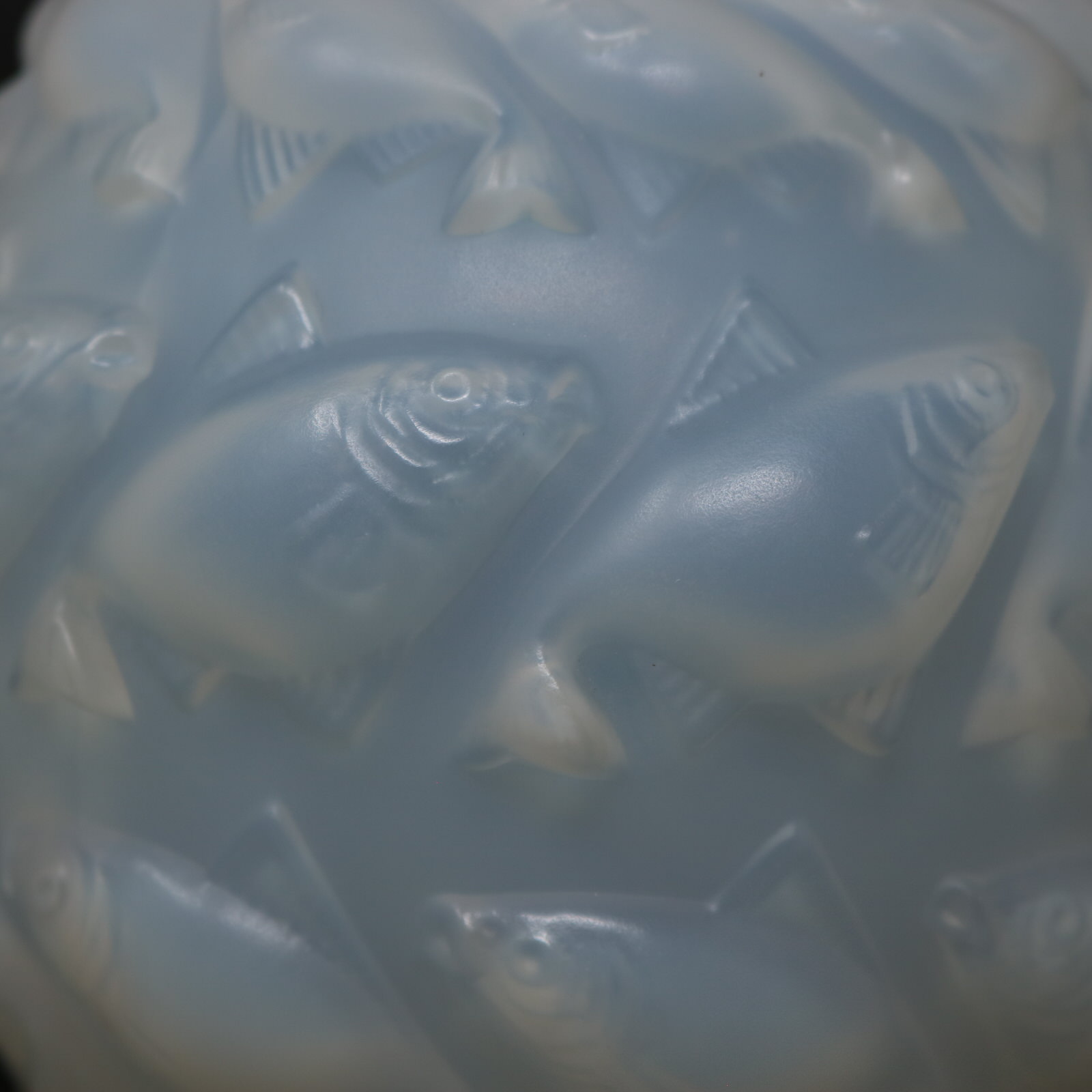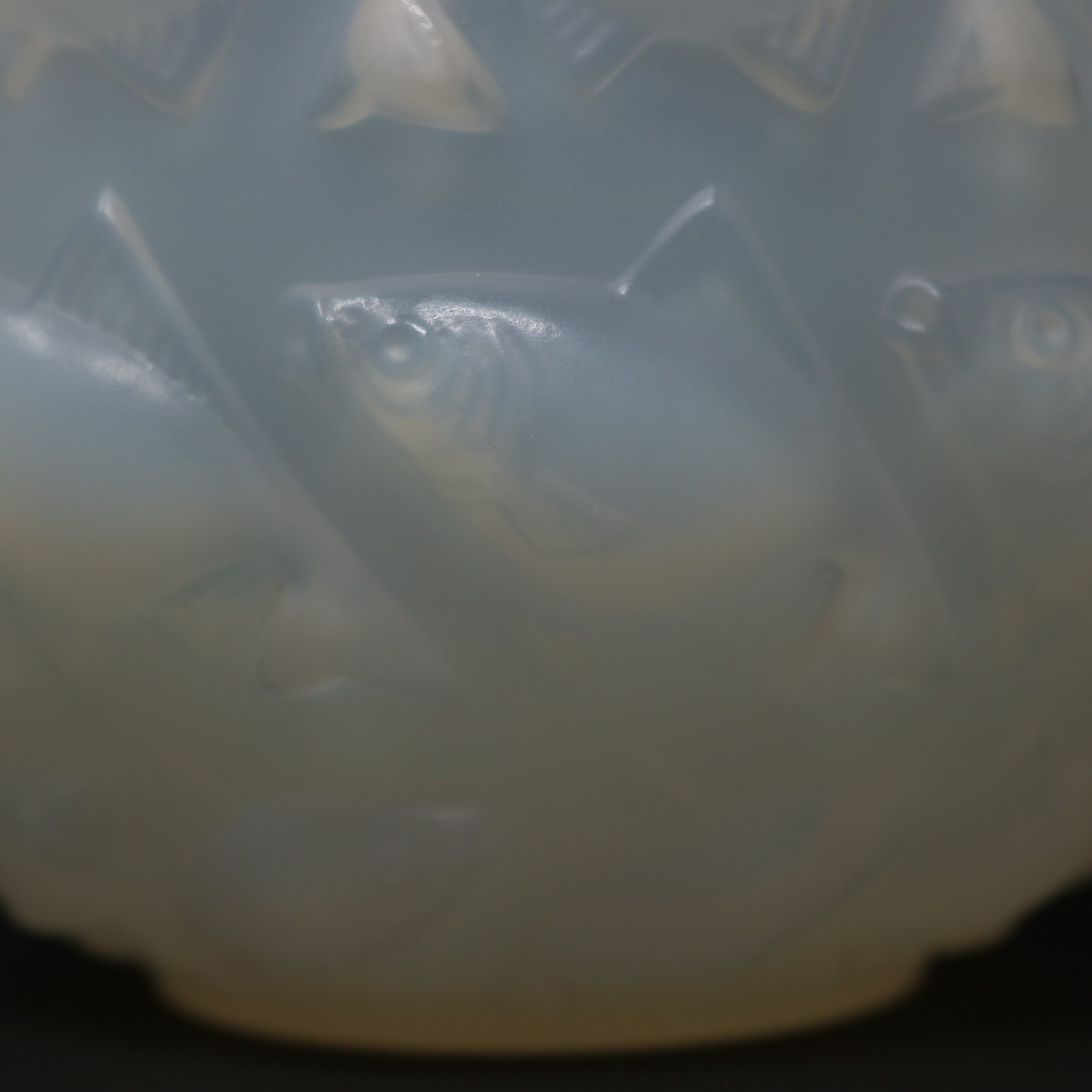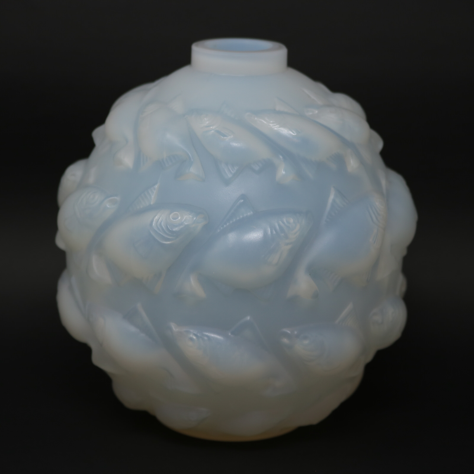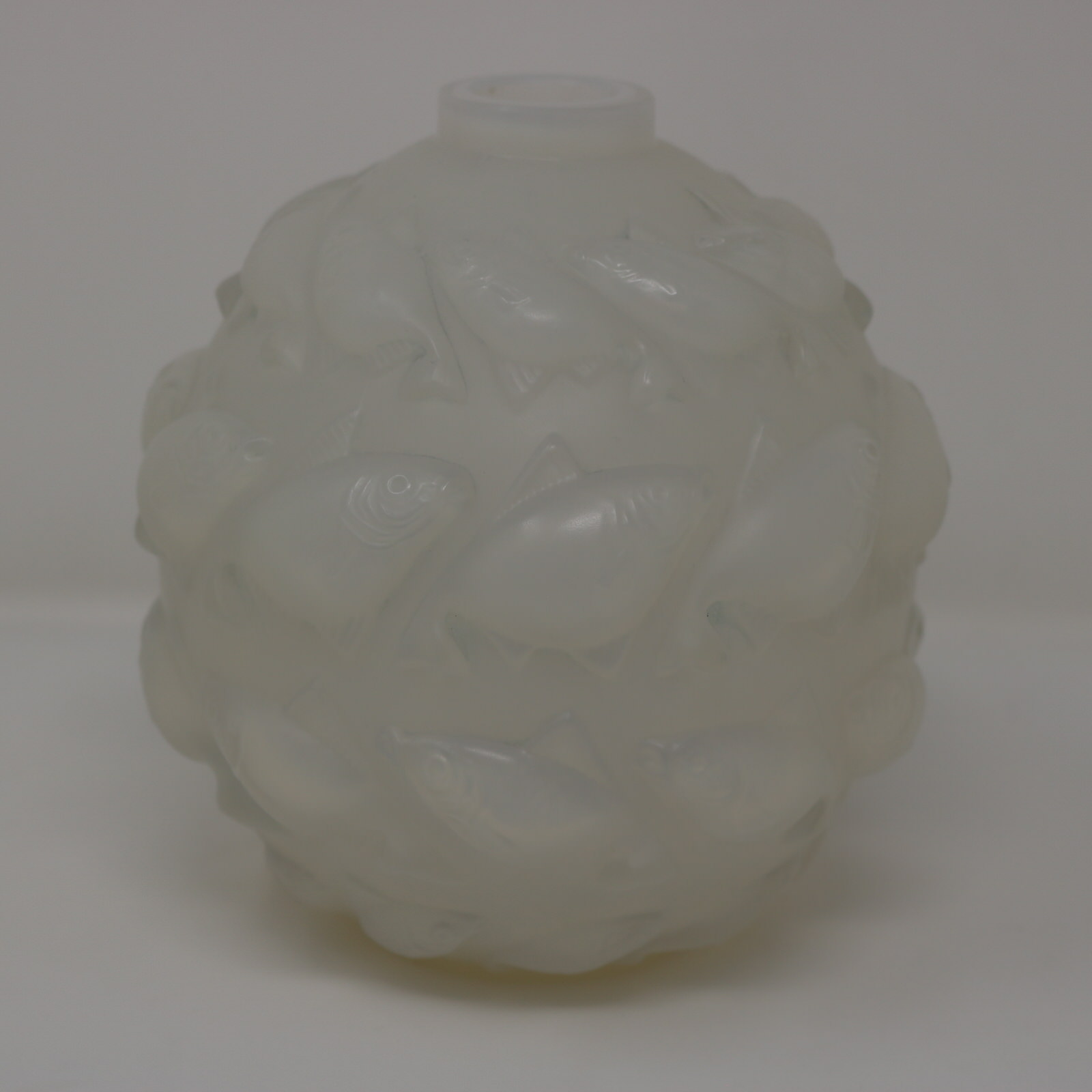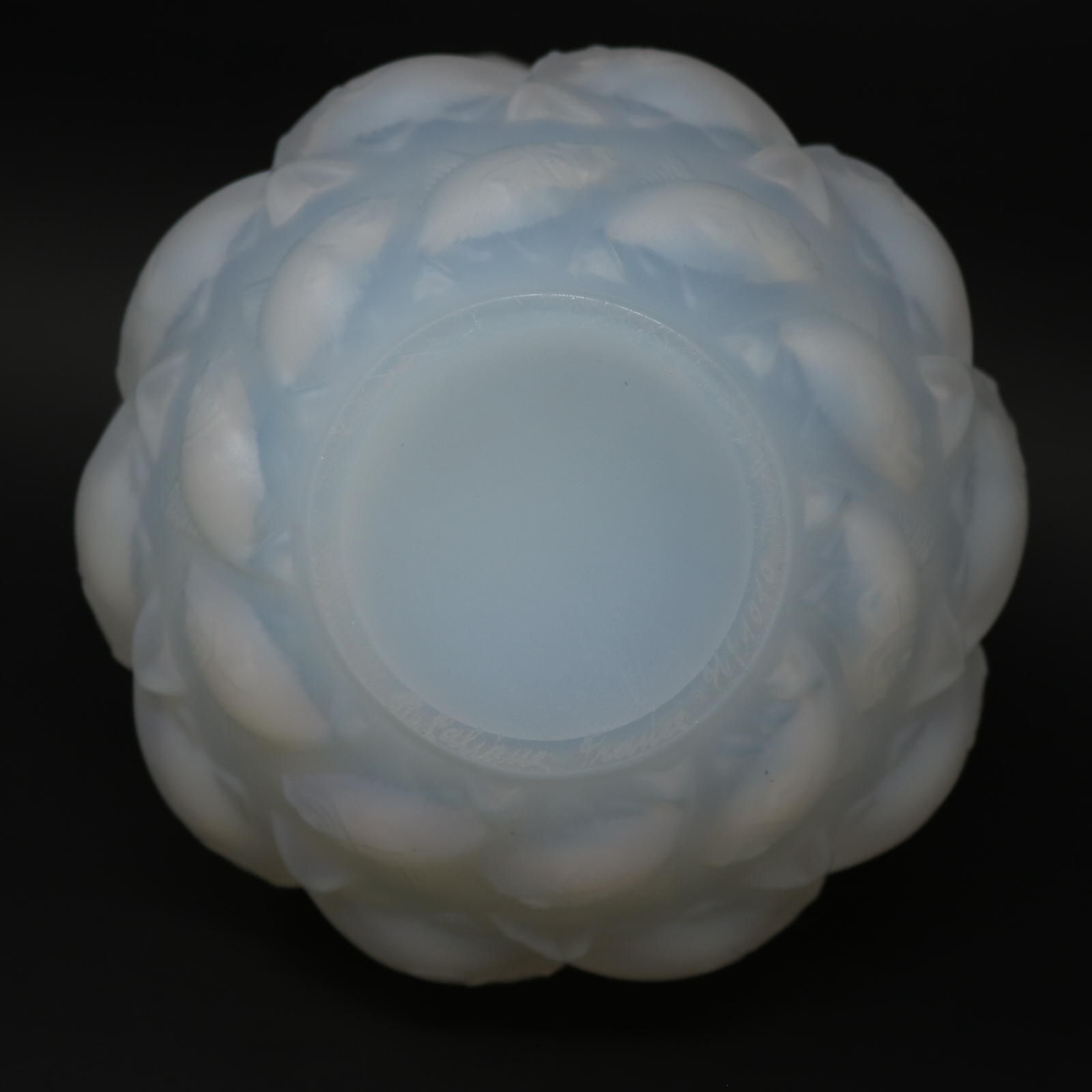 Introduced in 1928. Height: 13.5cm (5.3ins). Diameter: 12cm (4.7ins). Rene Lalique Cased Opalescent Glass 'Camaret' Vase.