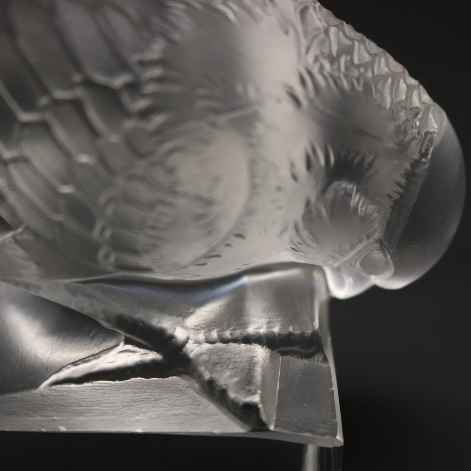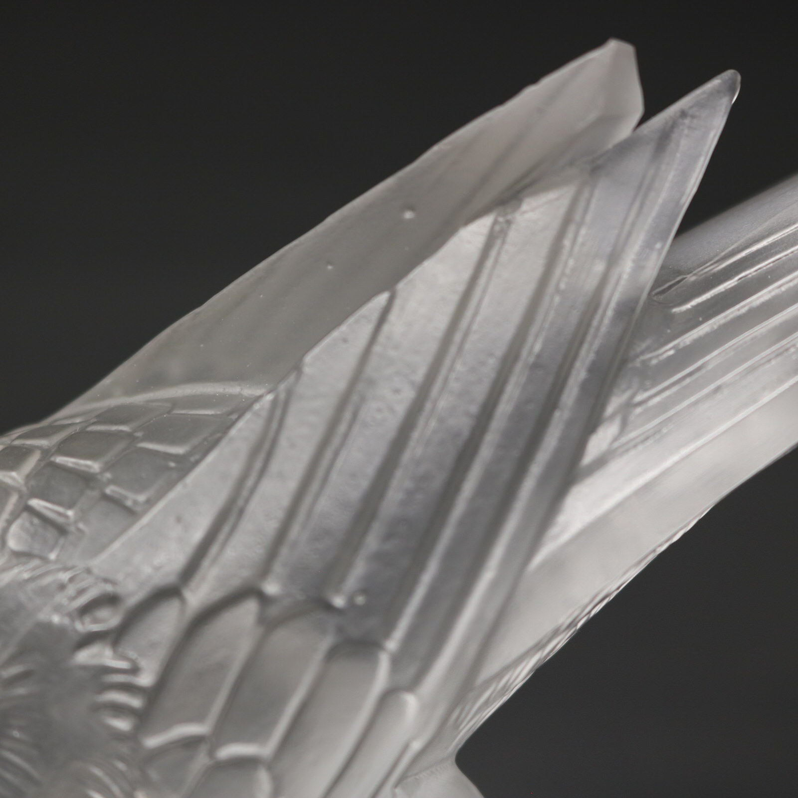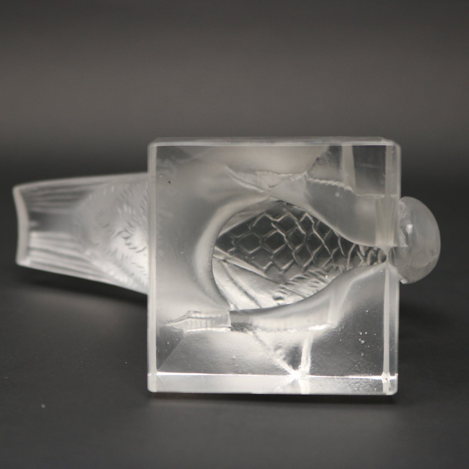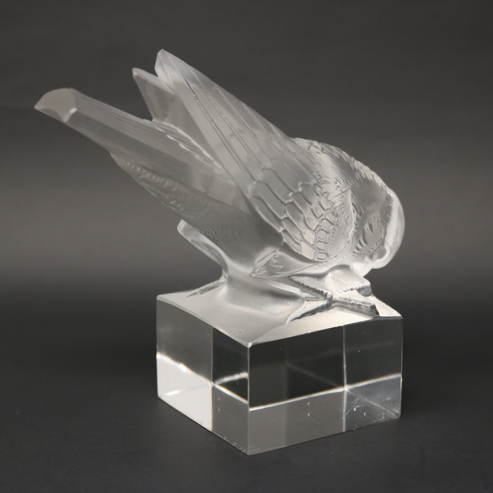 Moulded makers mark, 'R LALIQUE FRANCE', underneath tail.