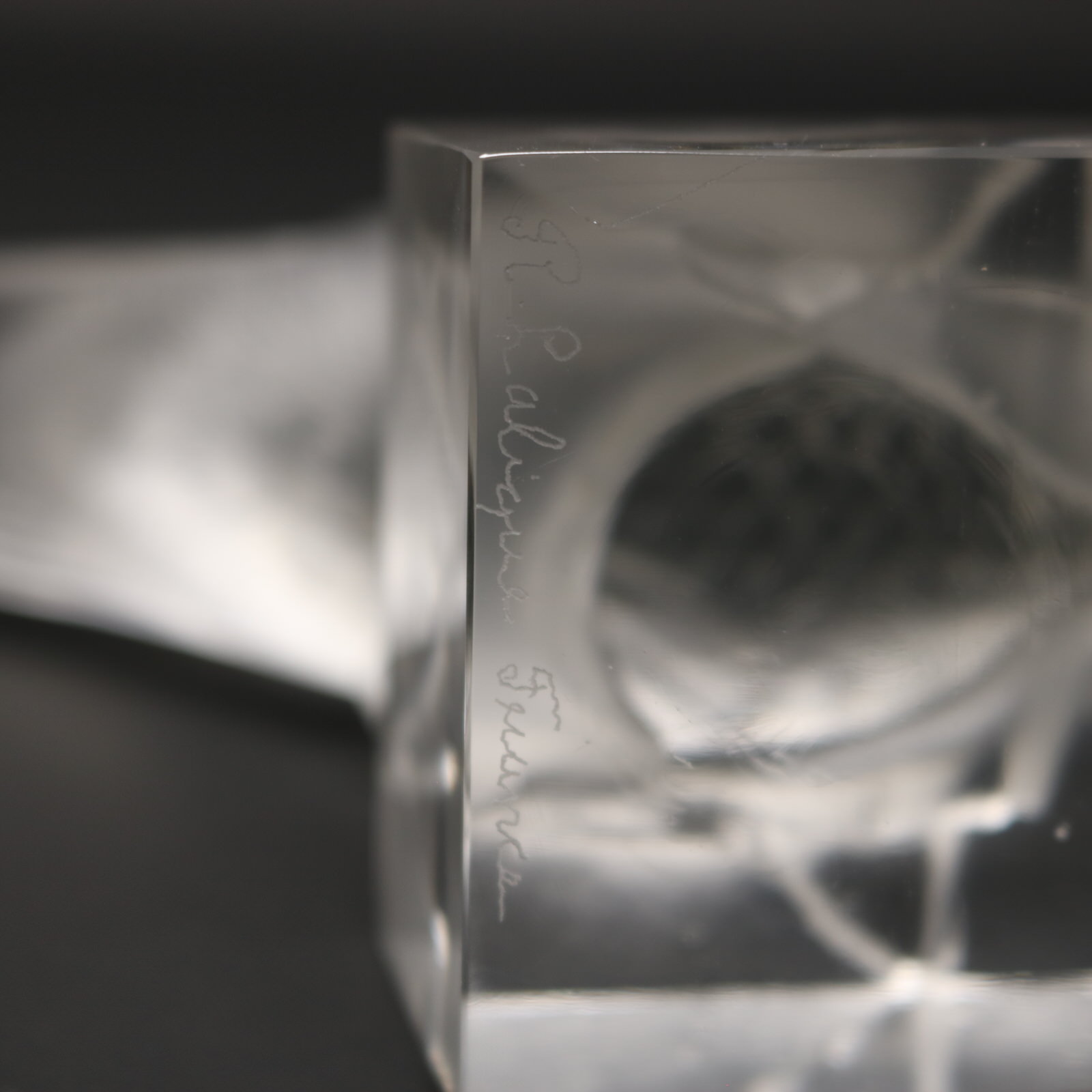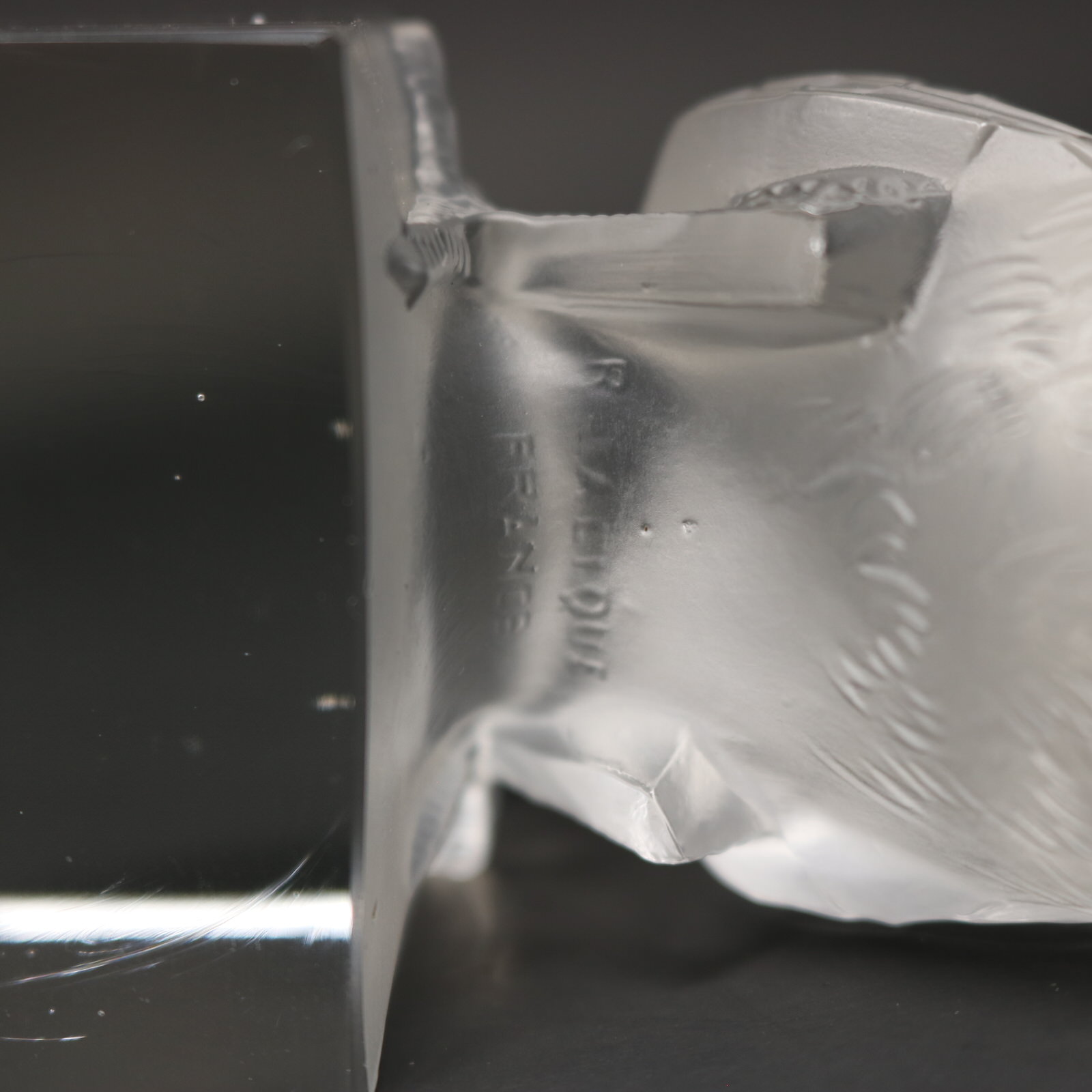 Engraved makers mark to the underside, 'R. Lalique France'.