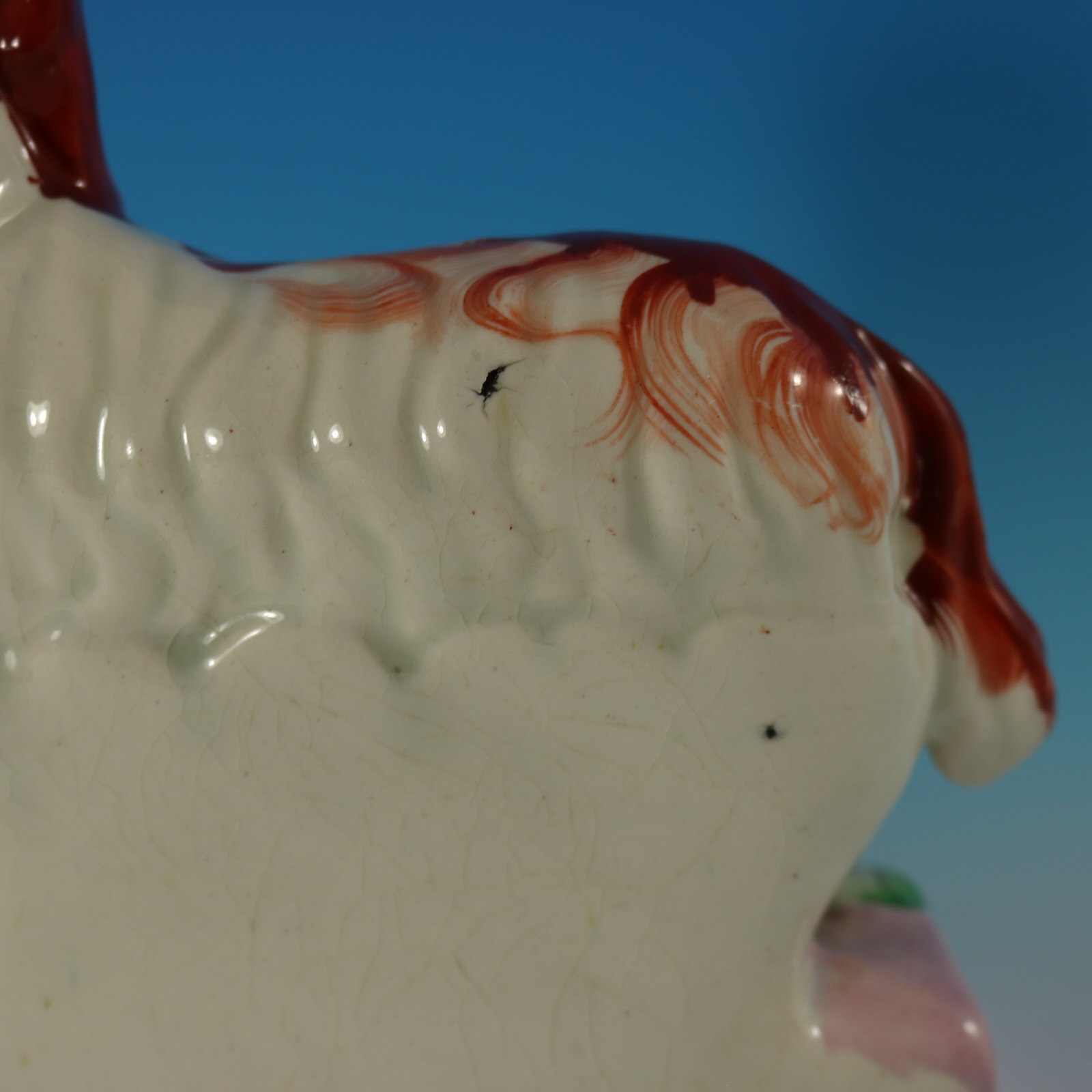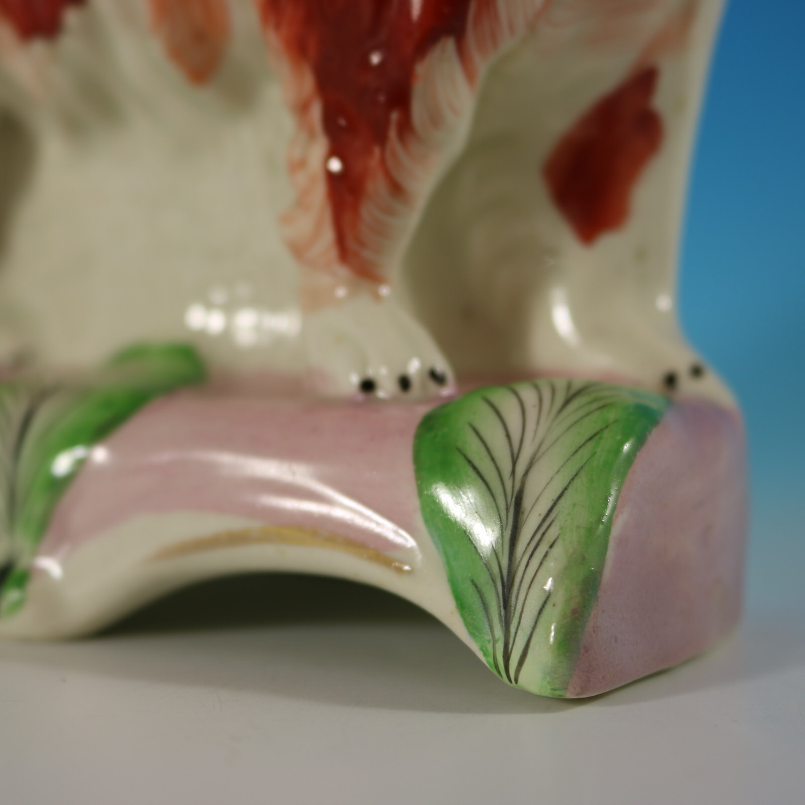 CONDITION: Generally good. Minor paint losses to dog's markings and leaves.