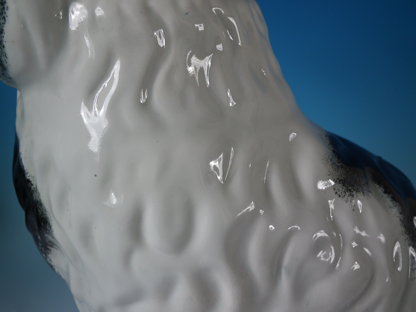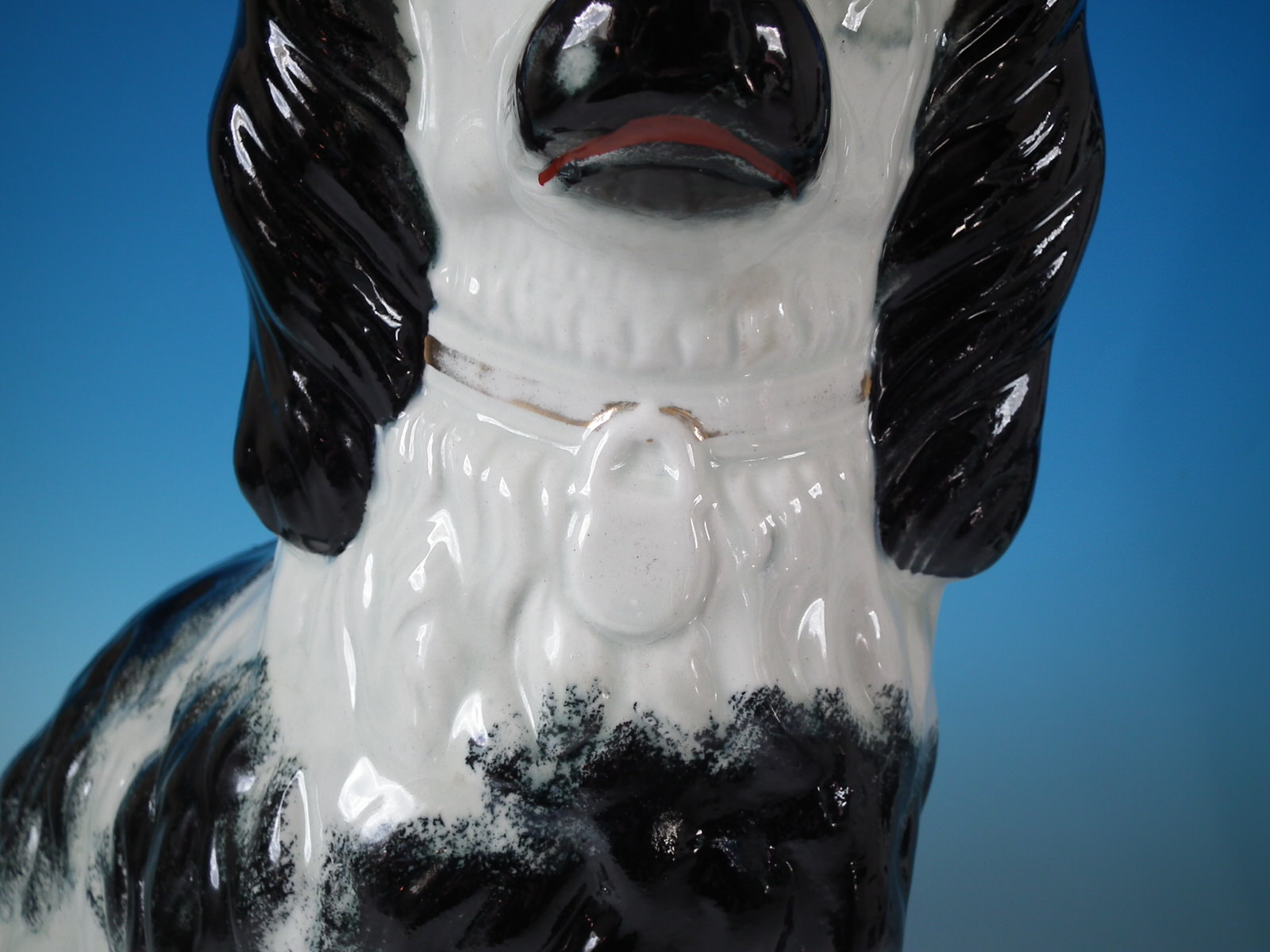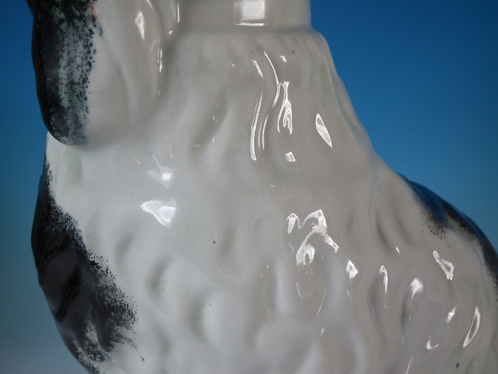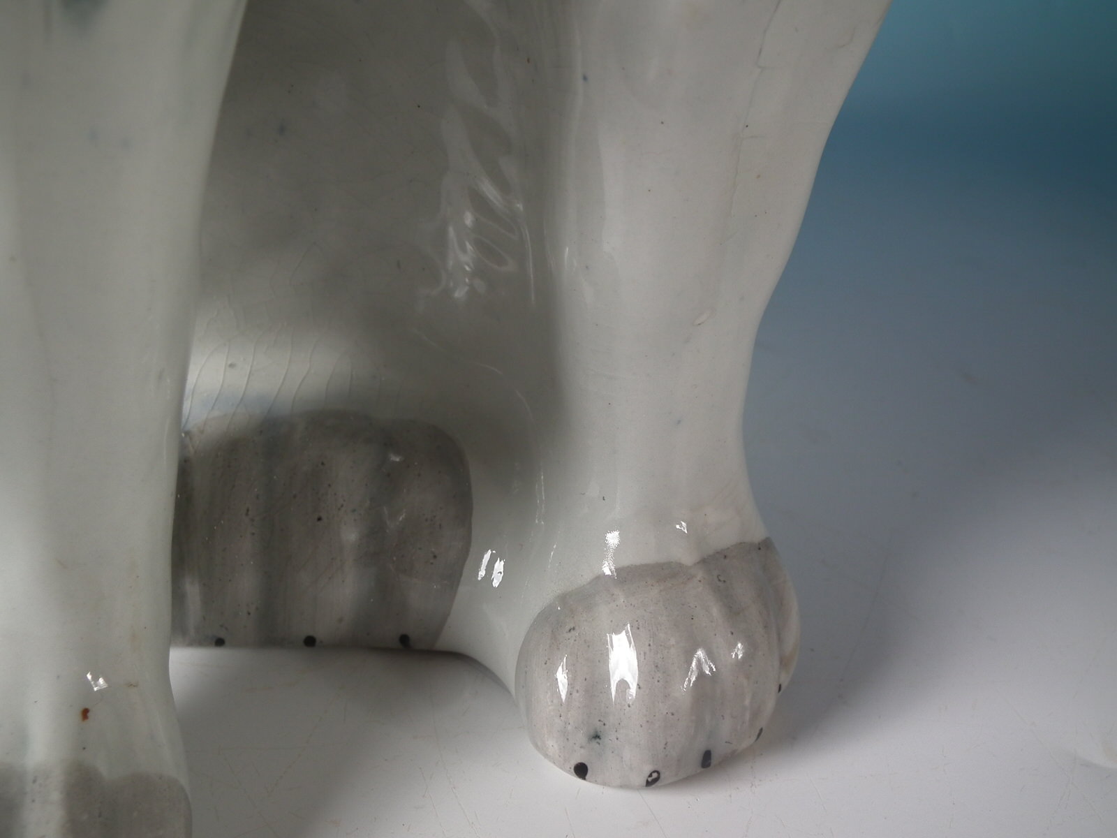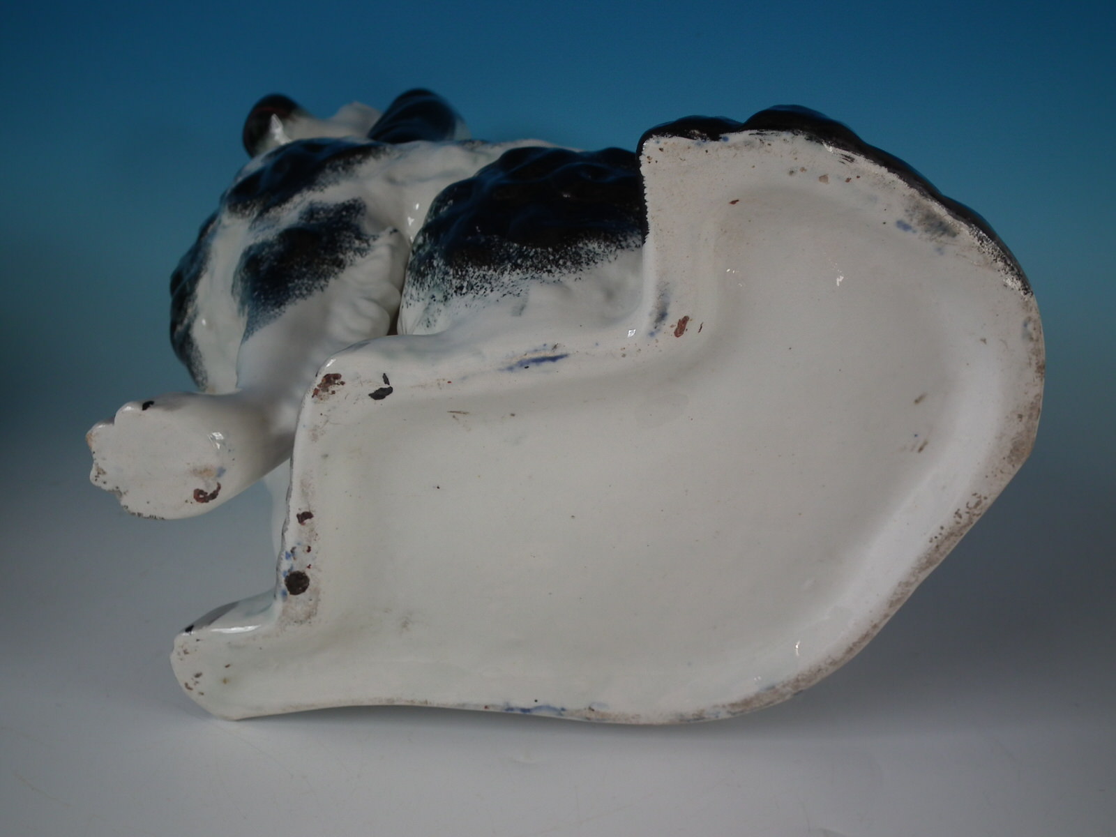 front leg molded free, seated directly on the ground, no base.