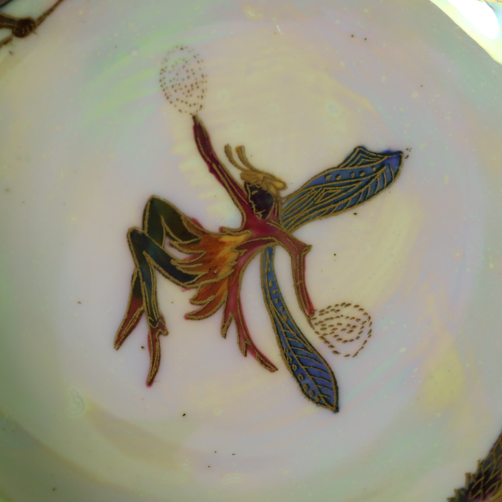 Mother of pearl ground to the interior, with fairies, elves, imps, butterflies, a bird and a bat.