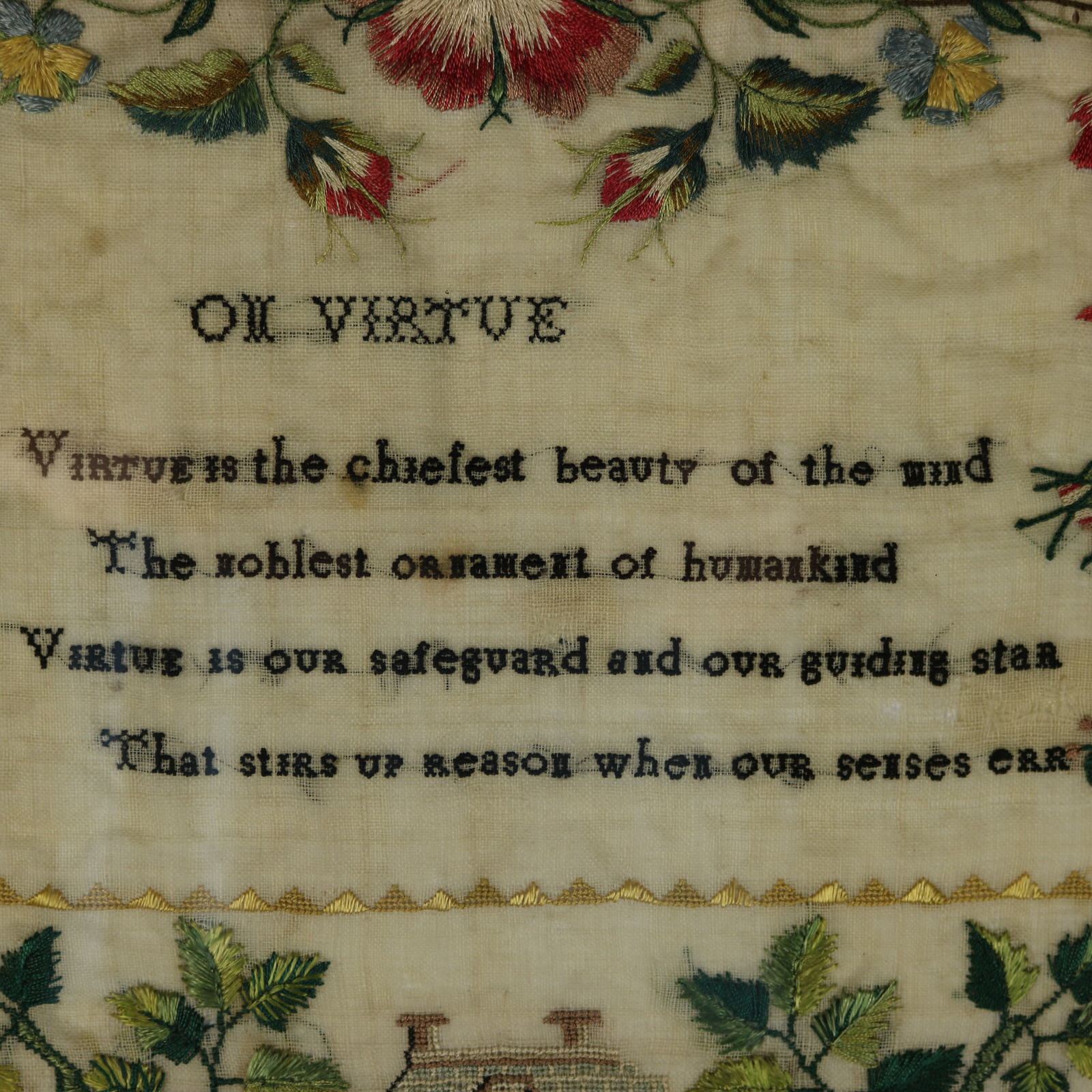 Verse entitled 'On Virtue' reads, 'VIRTUE is the chiefest beauty of the mind, The noblest ornament of humankind, Virtue is OUR safeguard and OUR guiding staR, That stiRs Up Reason when our senses eRR'.