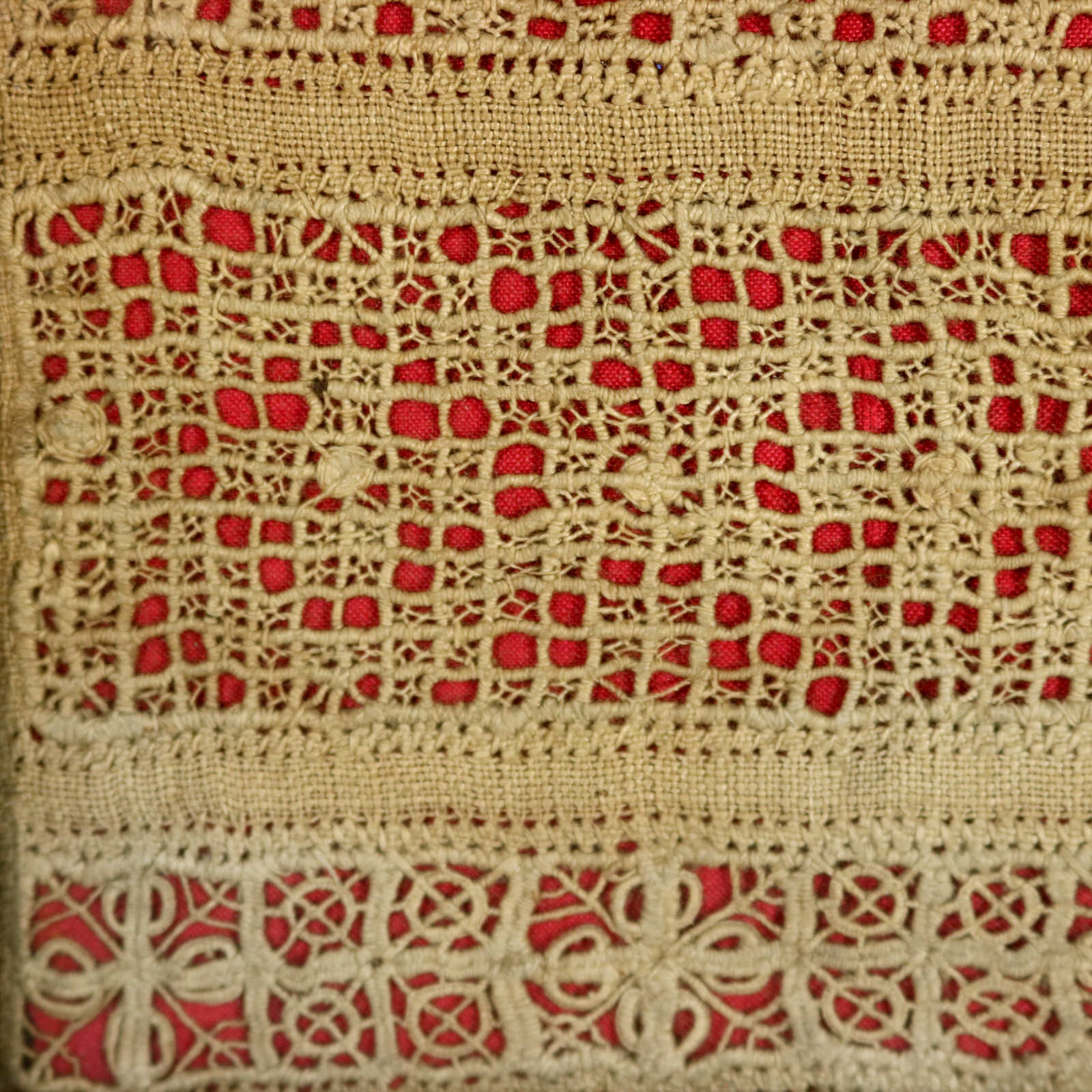 Late 17thC, circa 1690. 26.9ins high, 7.9ins wide, 0.6ins deep. 17th Century Antique Band Sampler with Whitework, by S.F.