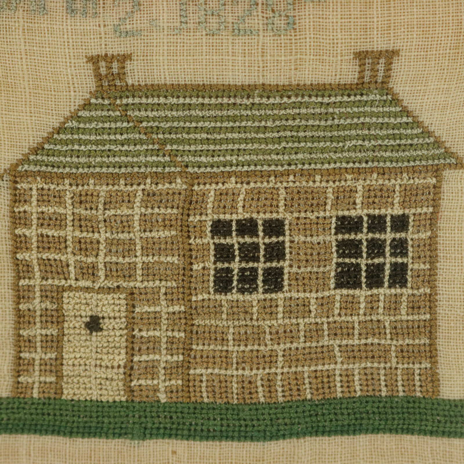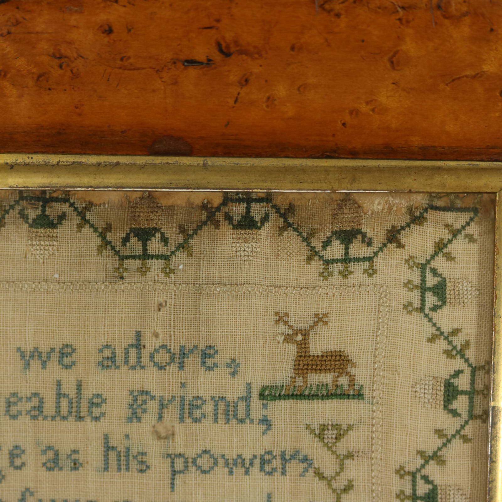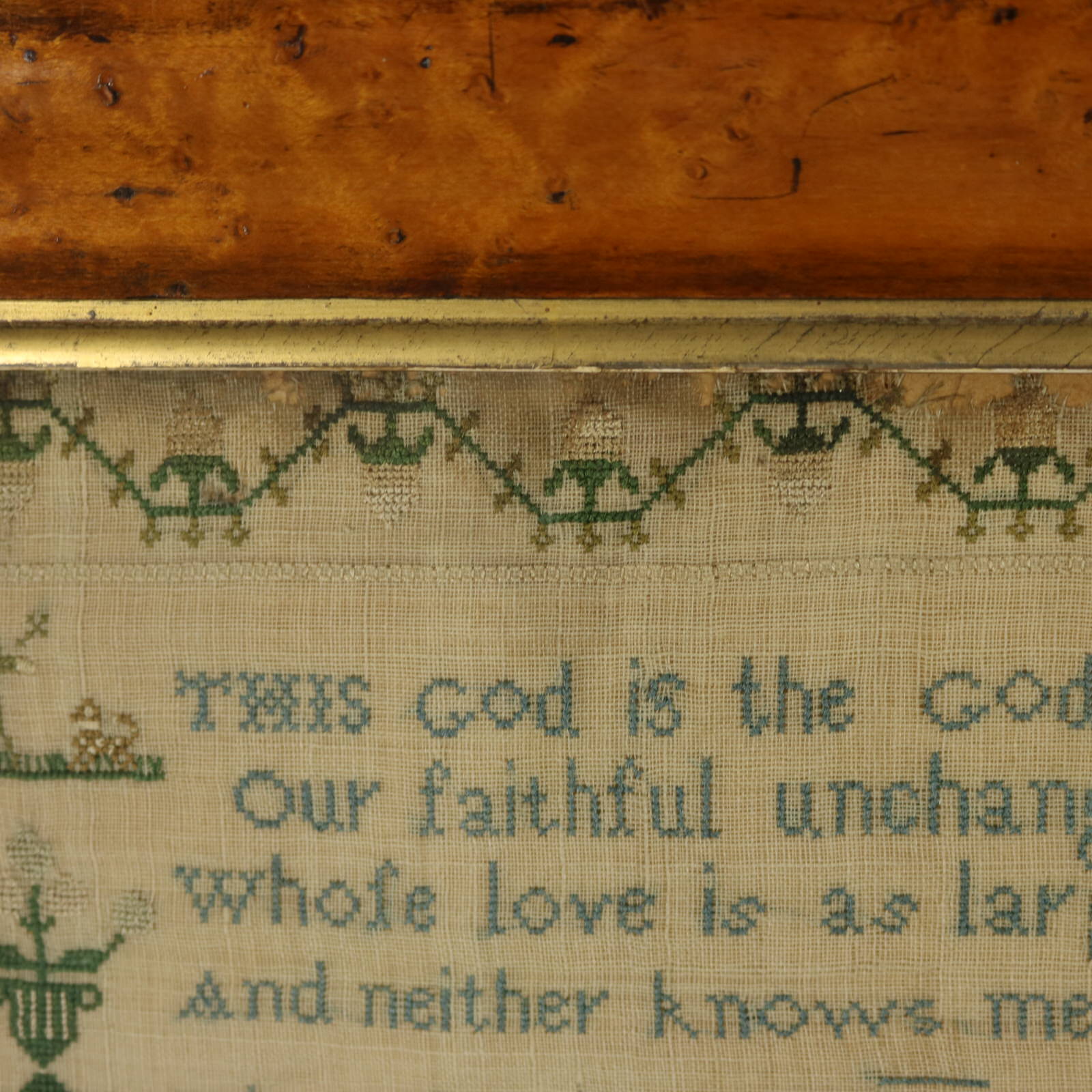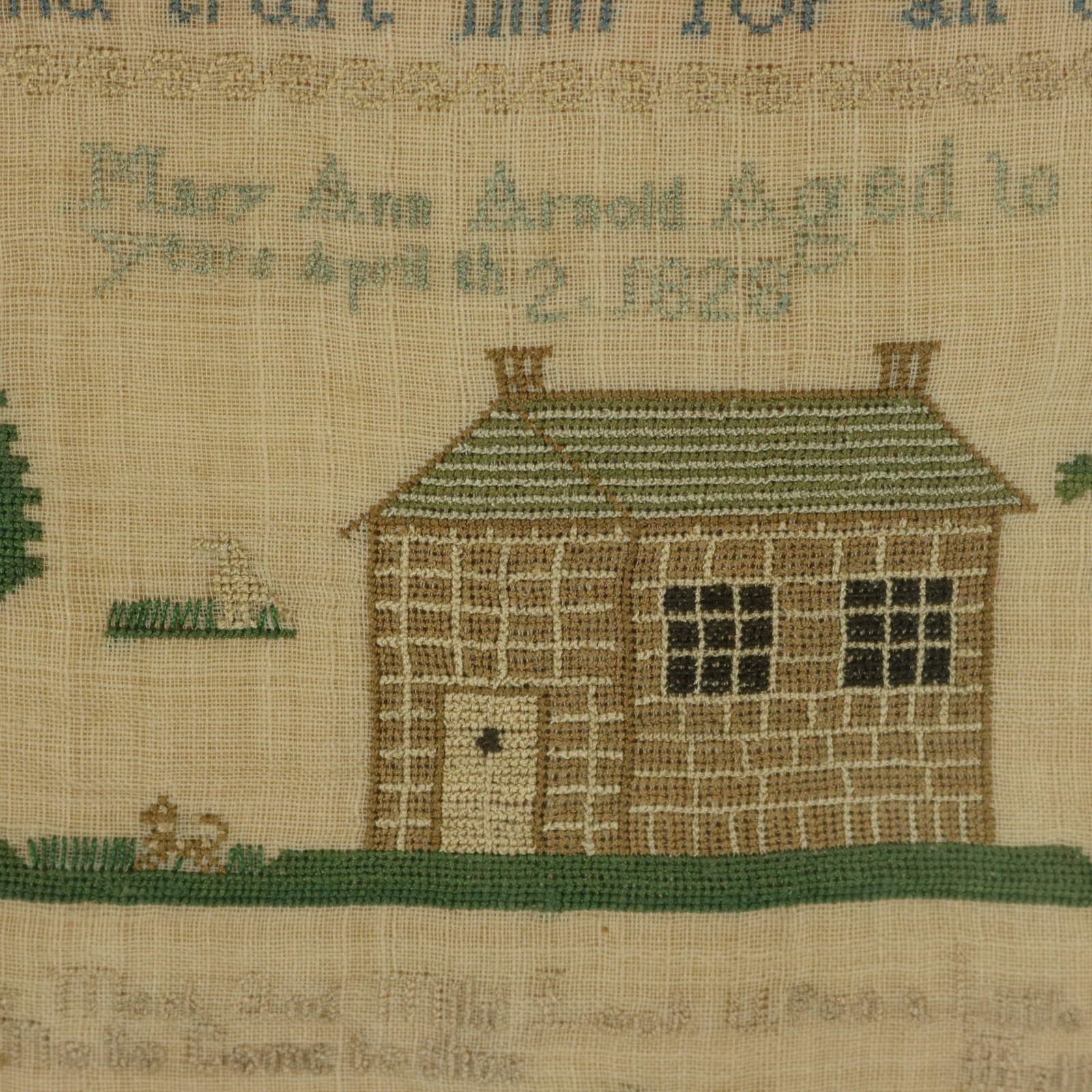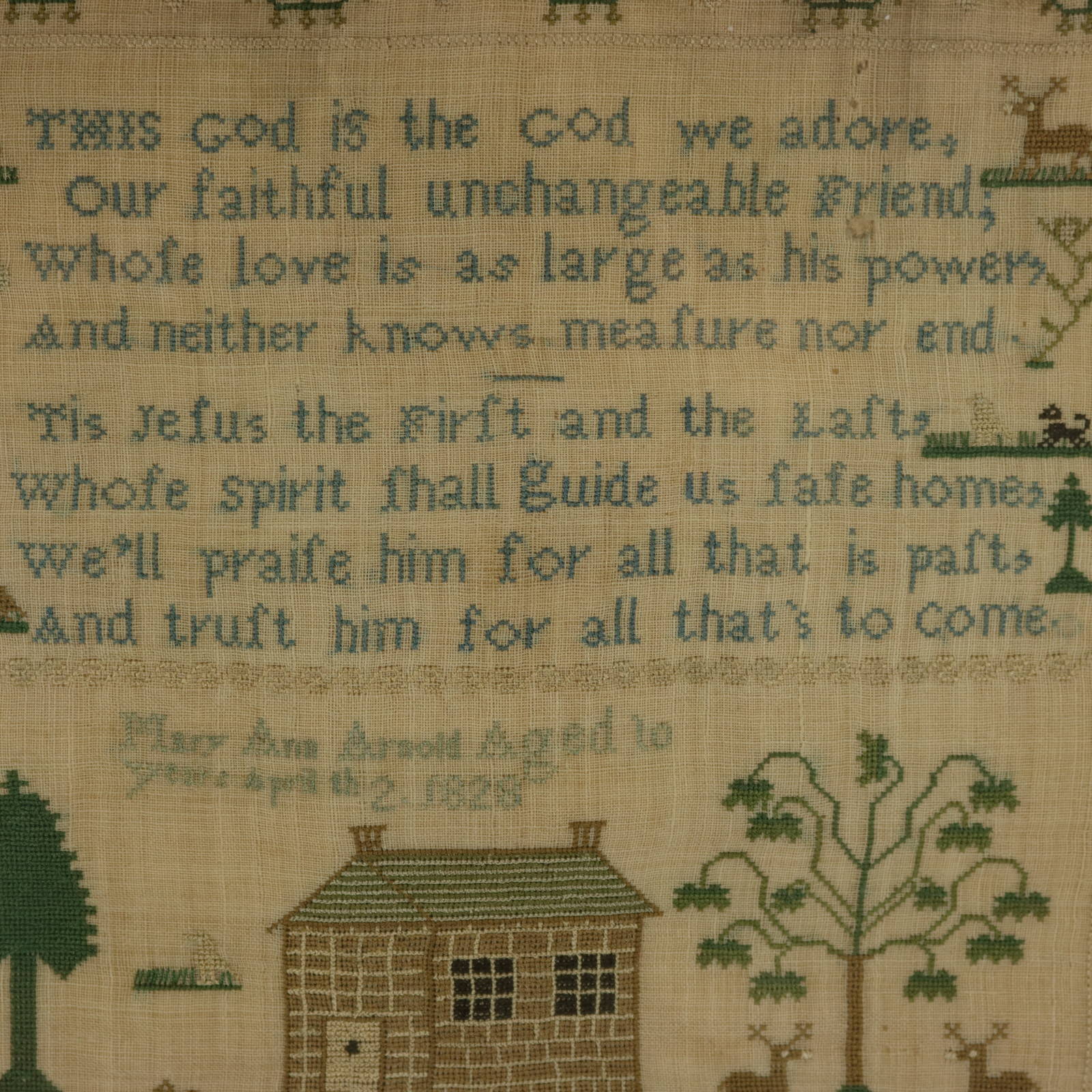 George IV, dated 1828. 16.3ins high, 12.2ins wide, 1.2ins deep. Antique Sampler, 1828, by Mary Ann Arnold Aged 10.