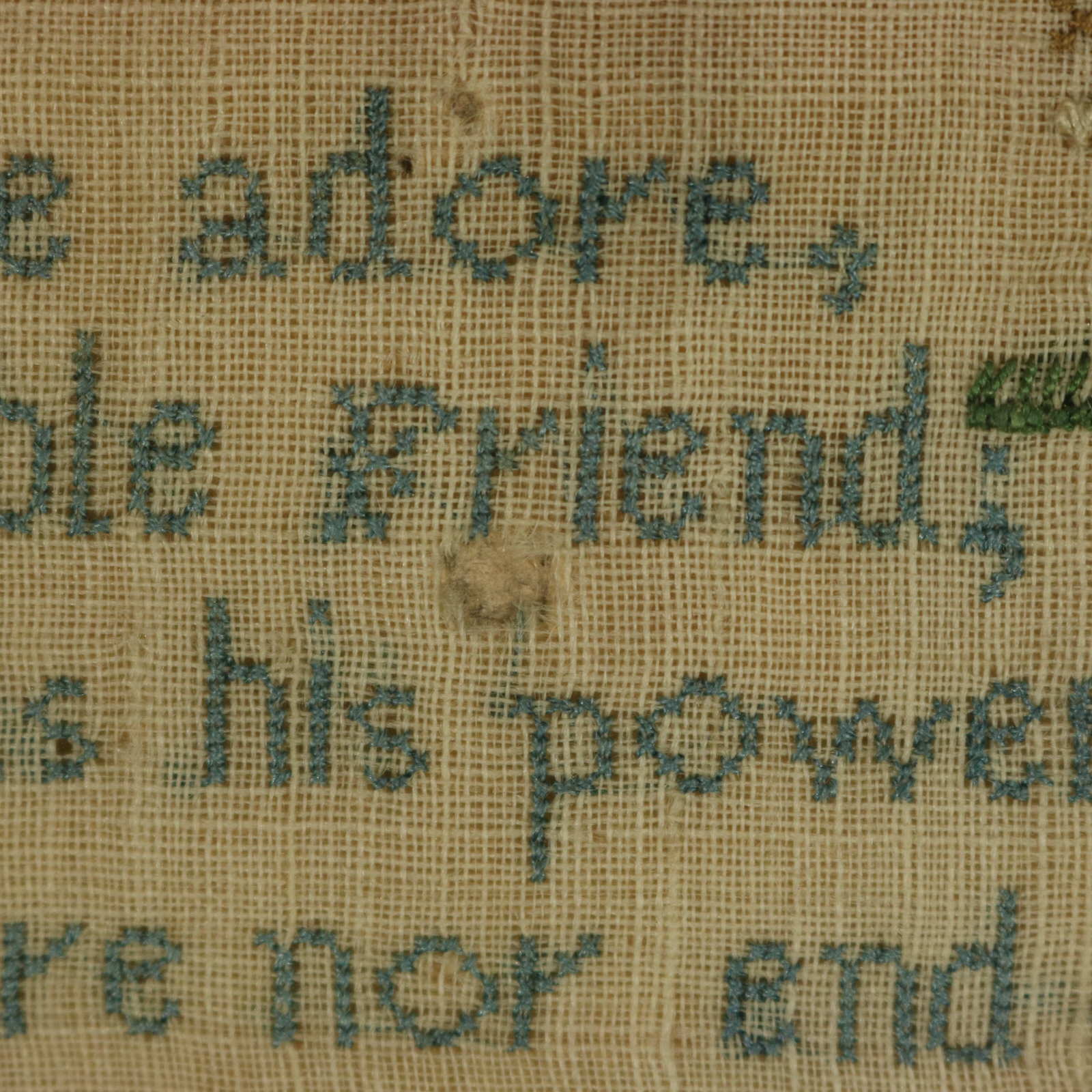 Verses read, 'THIS God is the God we adore, Our faithful unchangeable Friend, Whose love is as large as his power, And neither knows measure nor end. Tis Jesus the First and the Last, Whose spirit shall guide us safe home, We'll praise him for all that is past, And trust him for all that's to come.'. And at the bottom, 'Gentle Jesus Meek and Mild, Look upon a little Child, Pity My simplicity, Suffer Me to Come to thee. Hallelujah Amen.'.