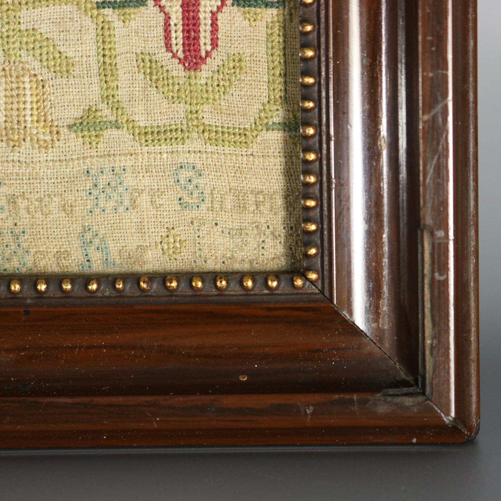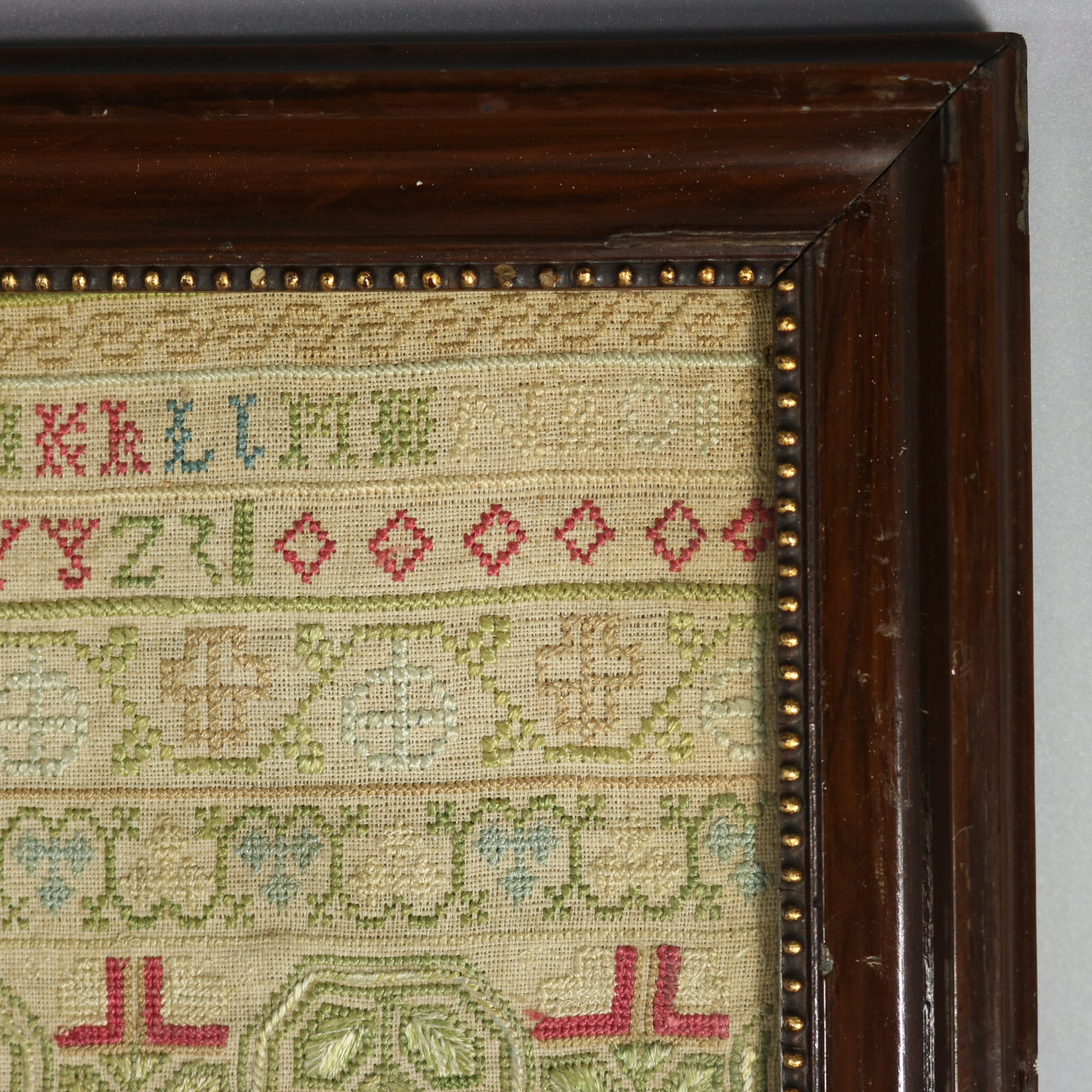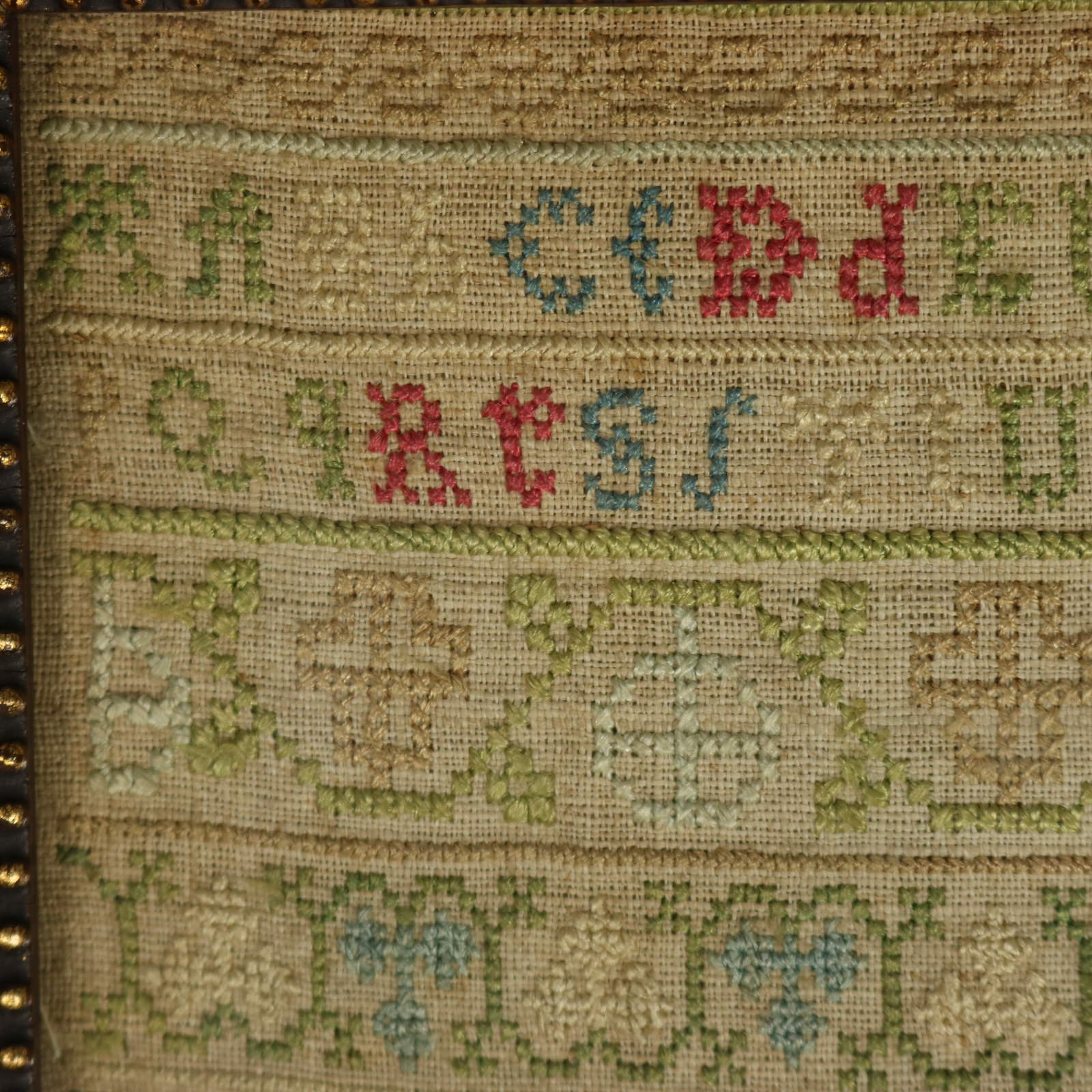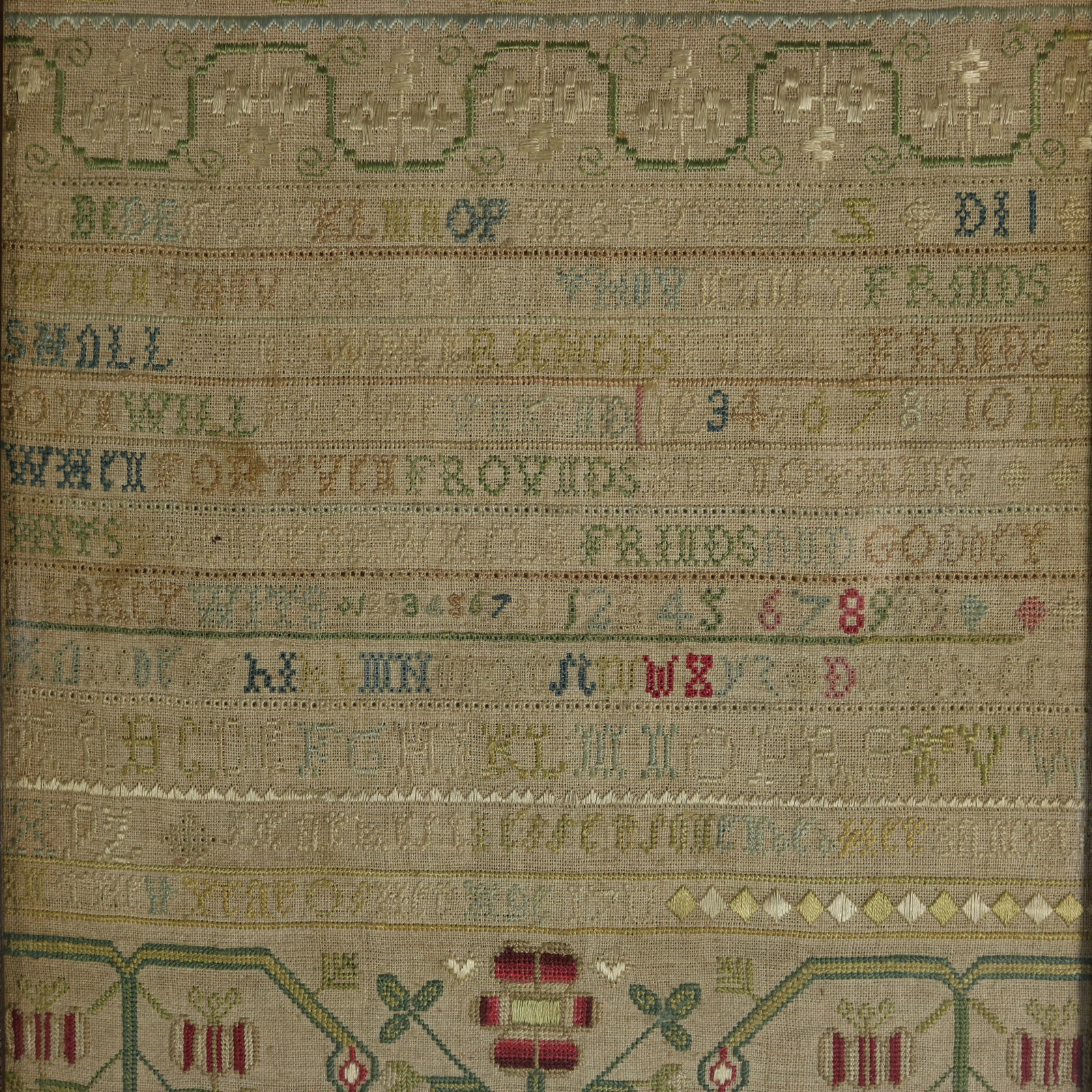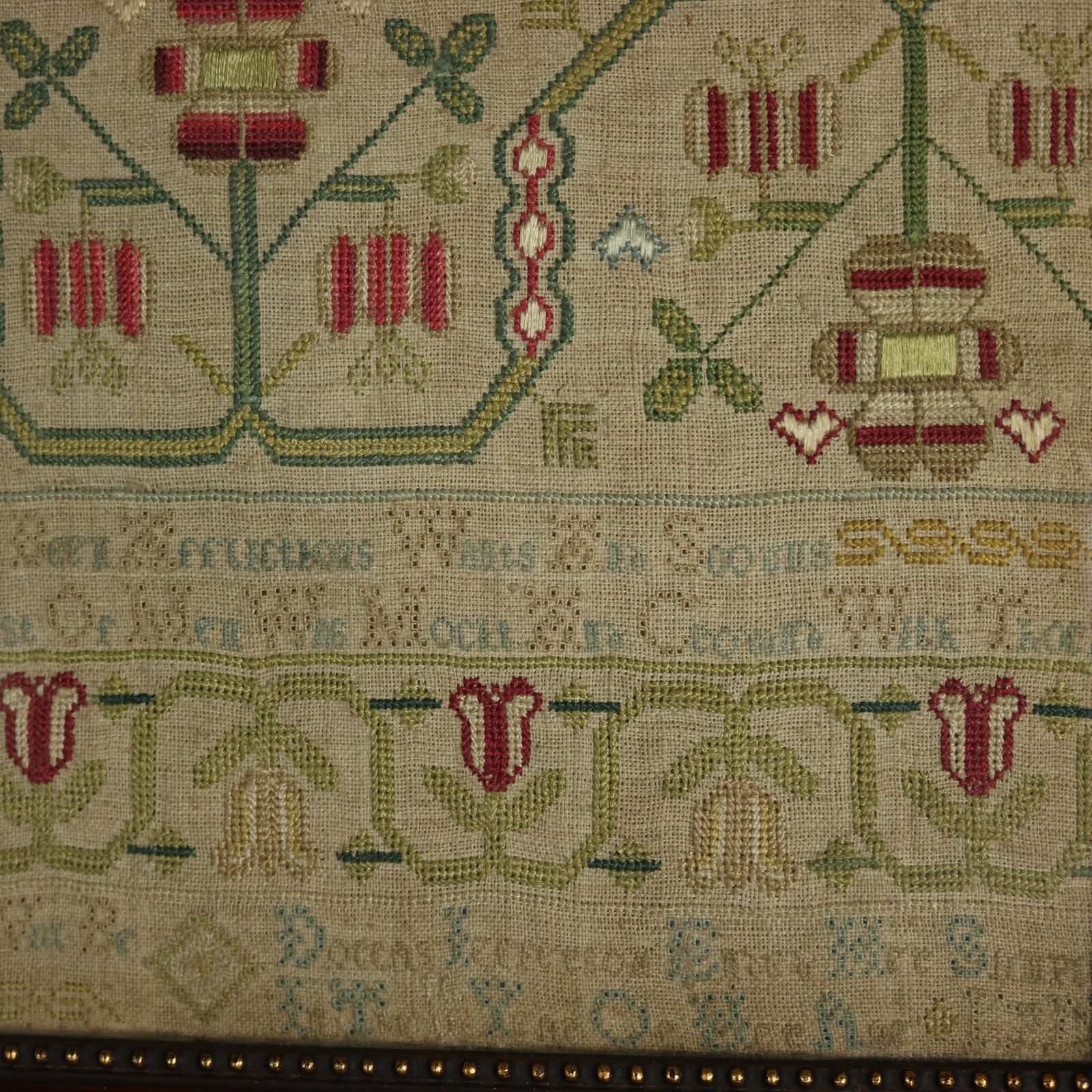 Mounting: The sampler is fixed to board. Frame backed with wood and sealed with tape.