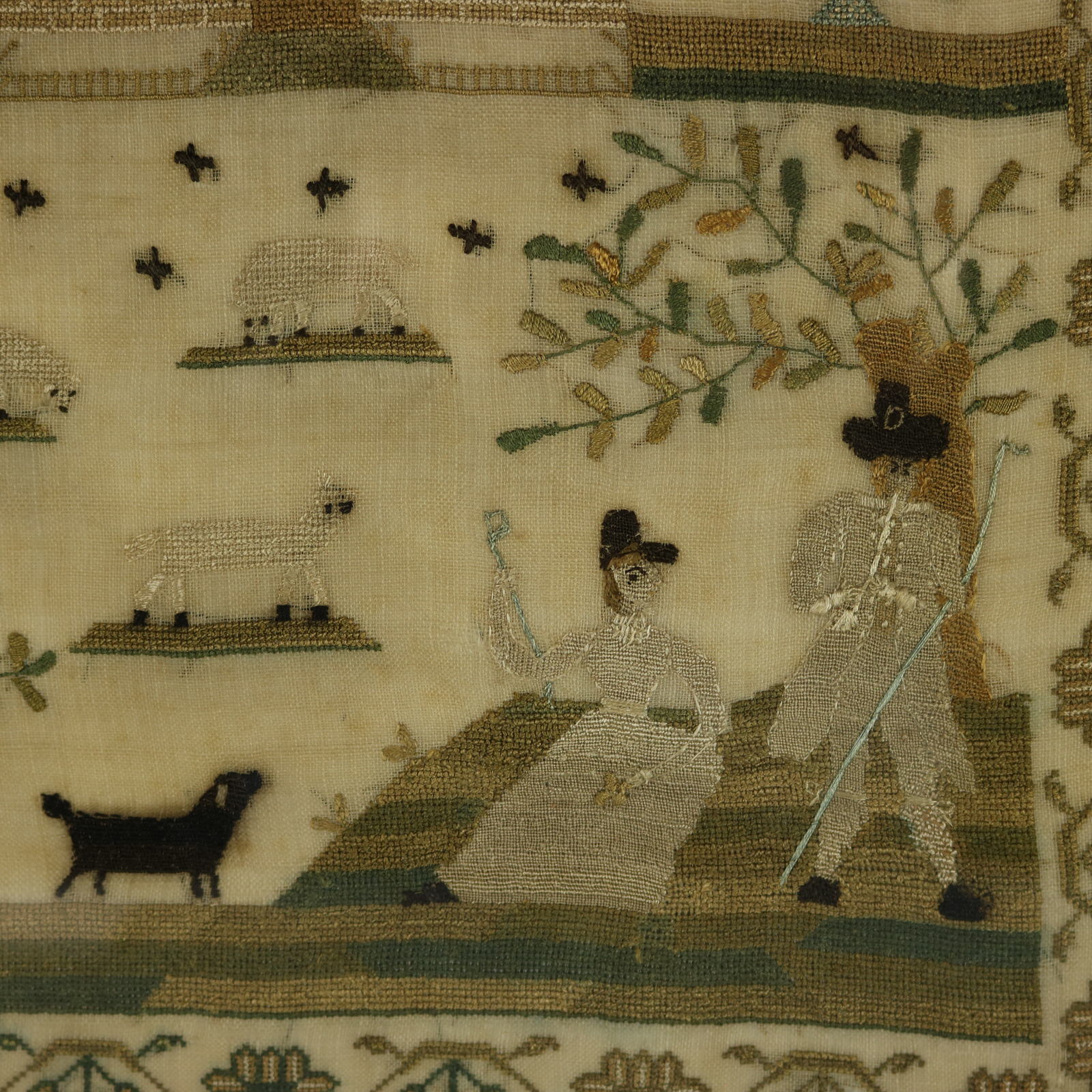 A wonderful set of motifs, including a shepherd and shepherdess tending to their flock of sheep.