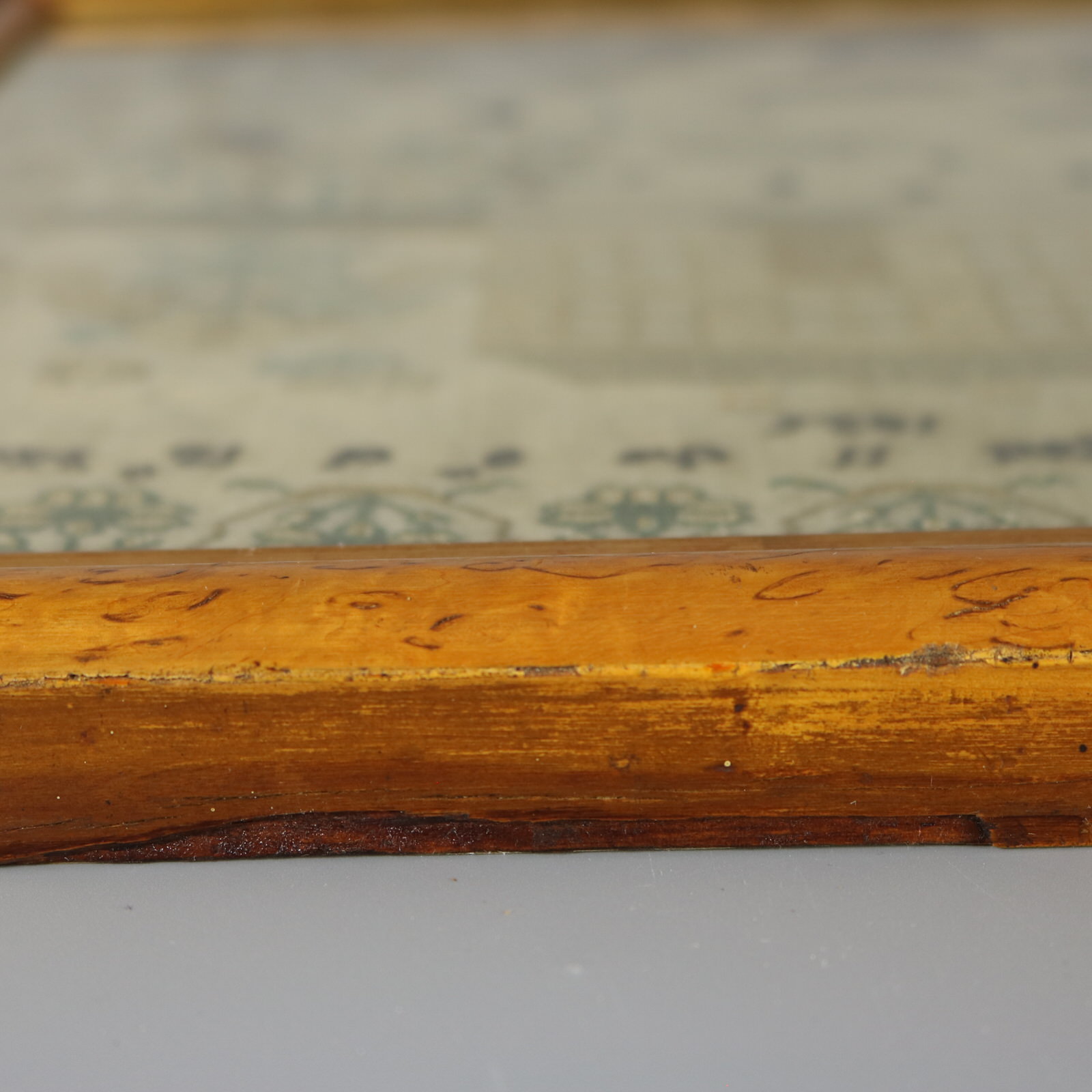 Framed in an old maple veneer frame with rippled, old glass.