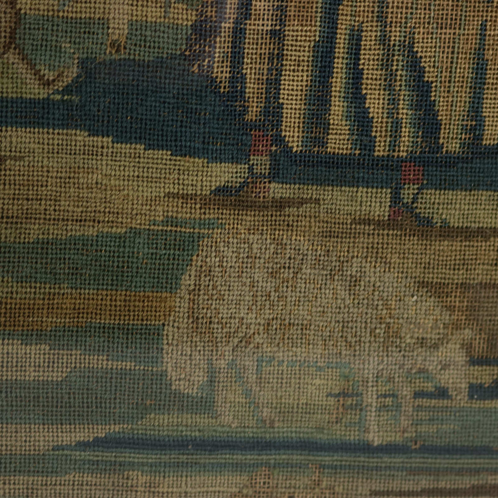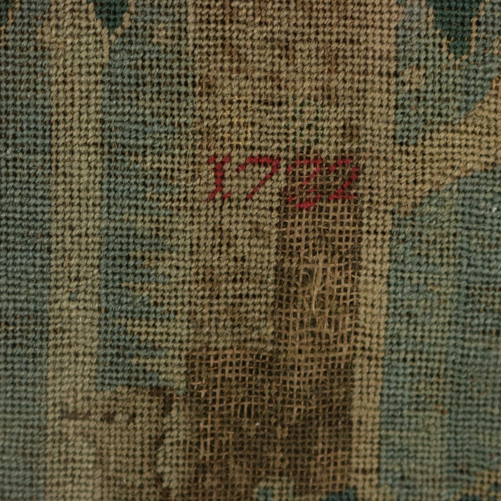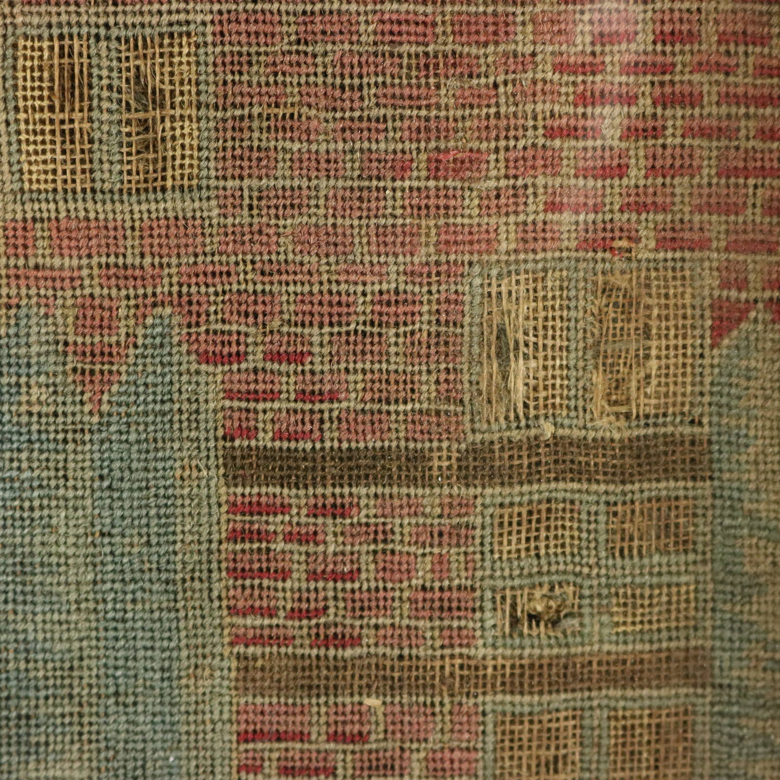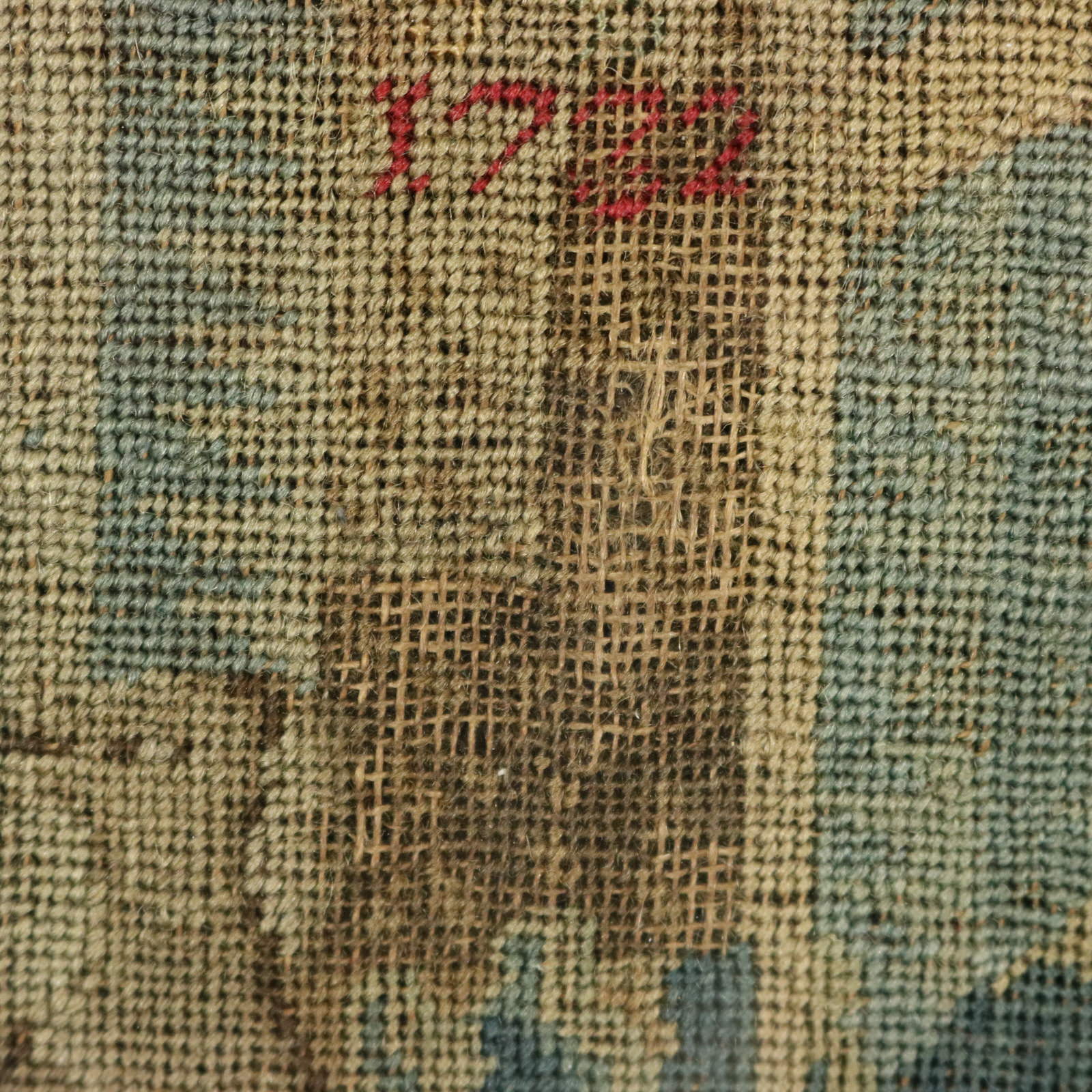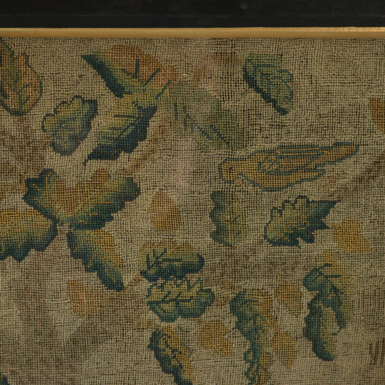 The piece is worked in petit point, using silk and fine wool-like threads on a canvas ground.
