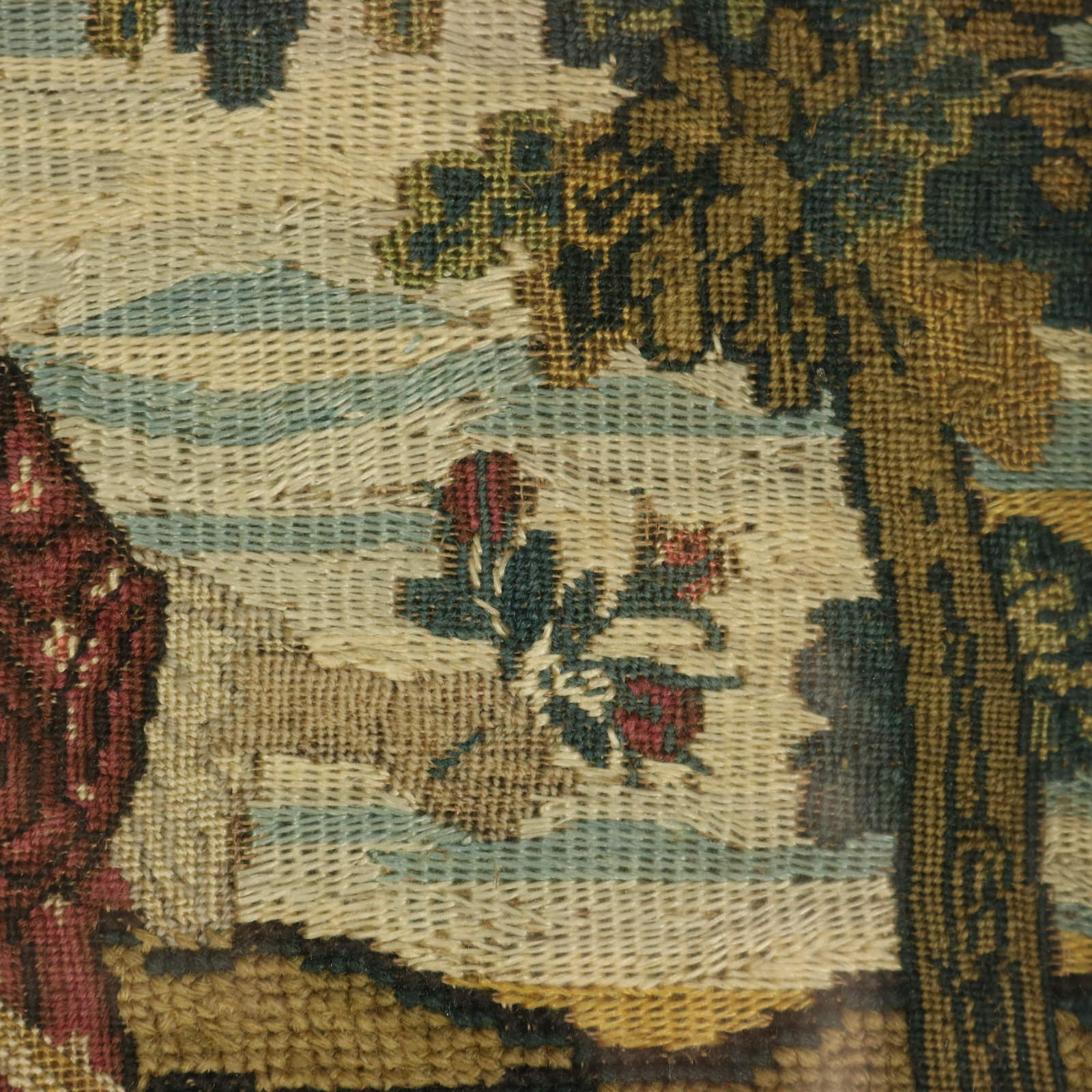 CONDITION: Good. No holes. A couple of stitch losses here and there.