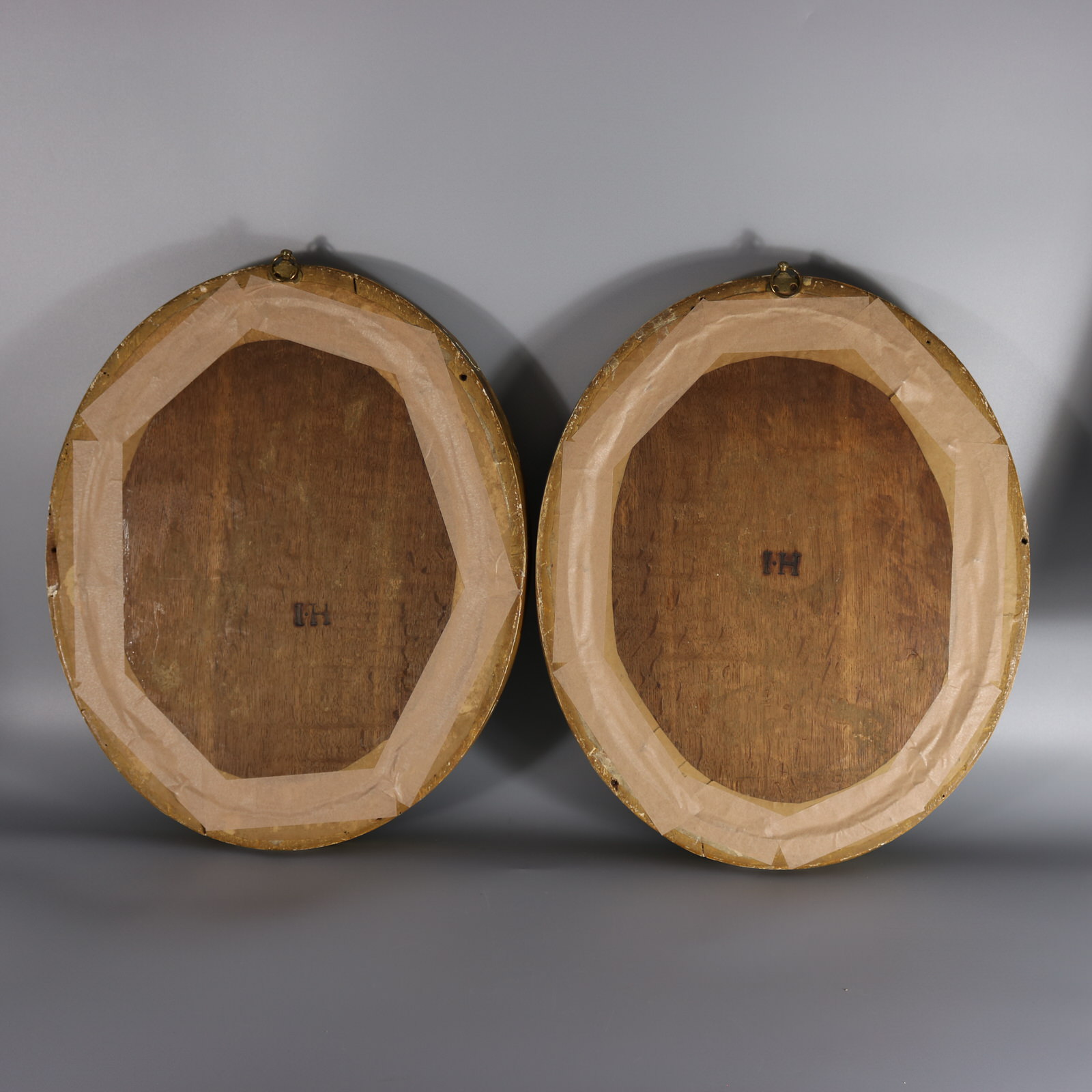 Frames with visible splits where original joins are present from the making, but they are sturdy and can be hung as-is.