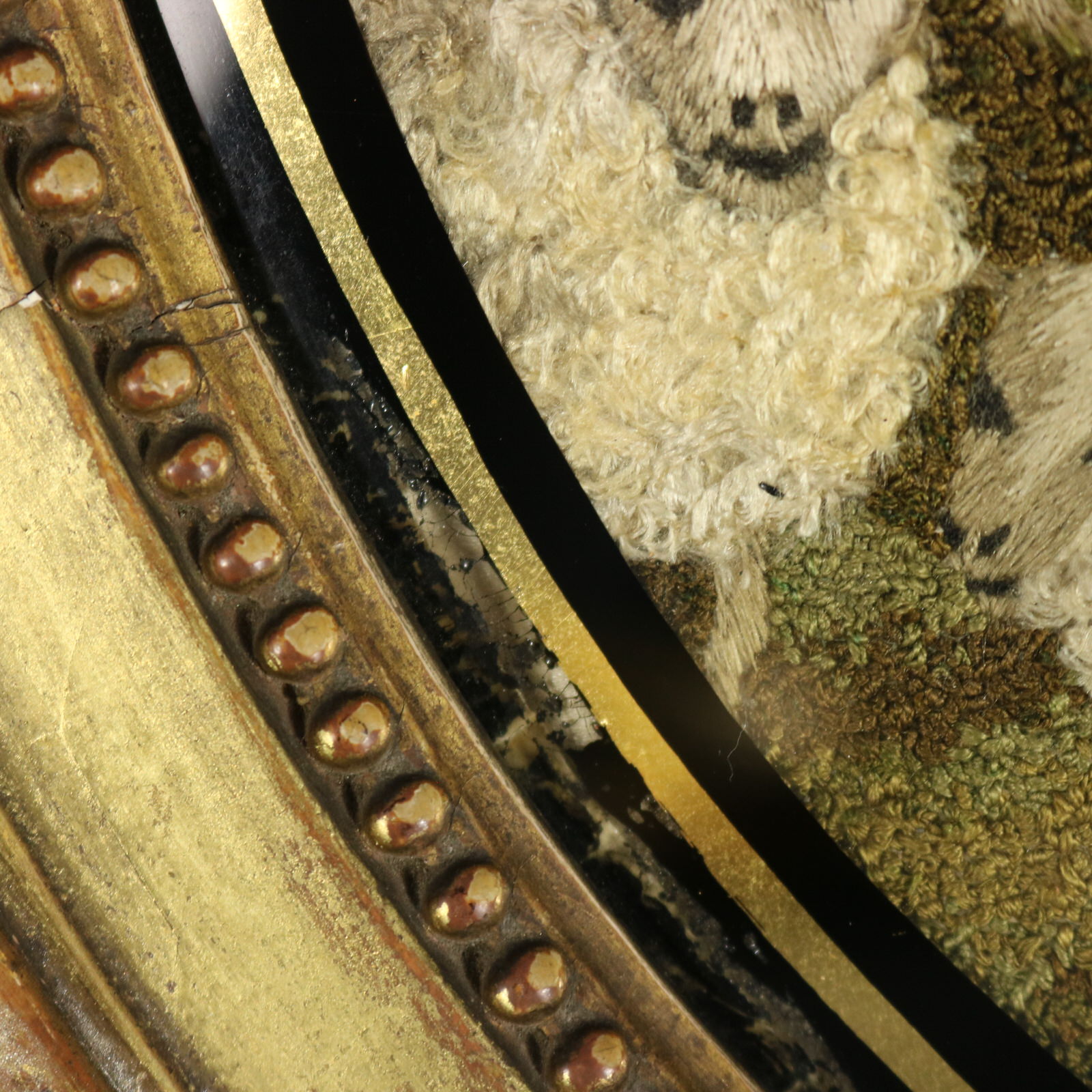 Framed in an old, gilded, gesso frame with rippled, old glass.