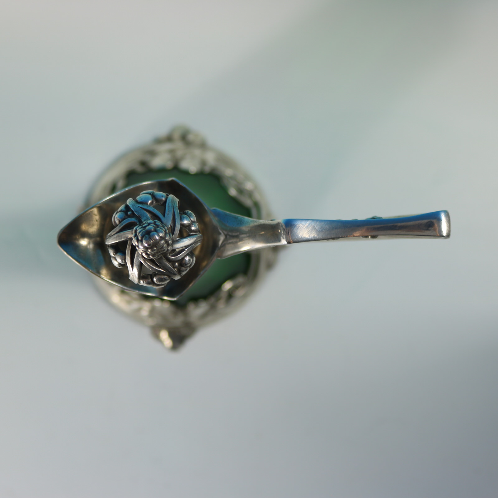 Circa 1910. 15.4ins high, 7ins wide, 7ins deep. Art Nouveau WMF green glass silver plated claret jug of stylised form, the mount depicting bathing maidens.