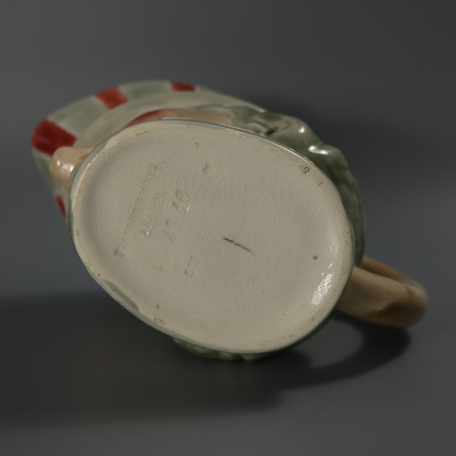 The piece bears maker's marks for the Sarreguemines pottery. Bears a pattern number, '4316 530'.