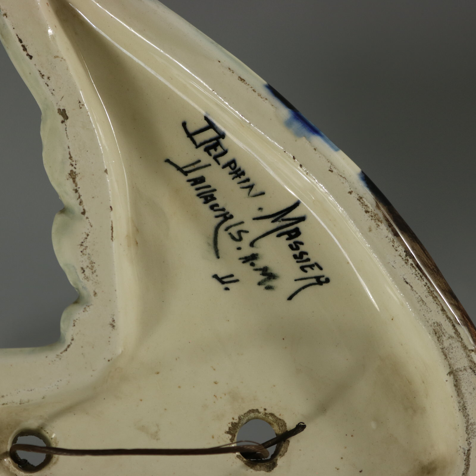 The piece bears maker's marks for the Delphin Massier pottery.
