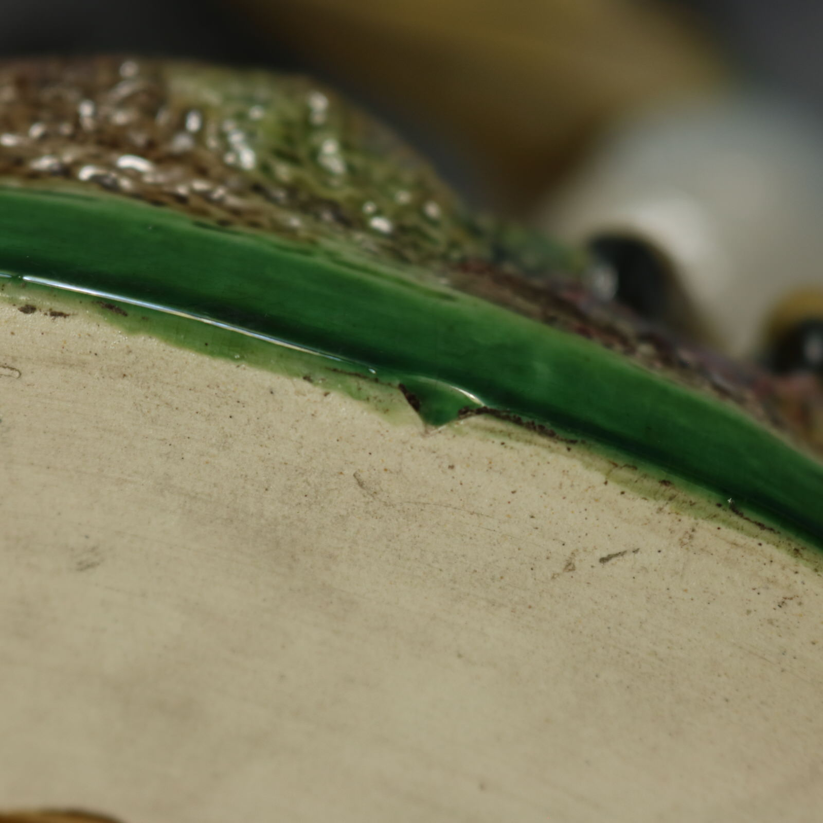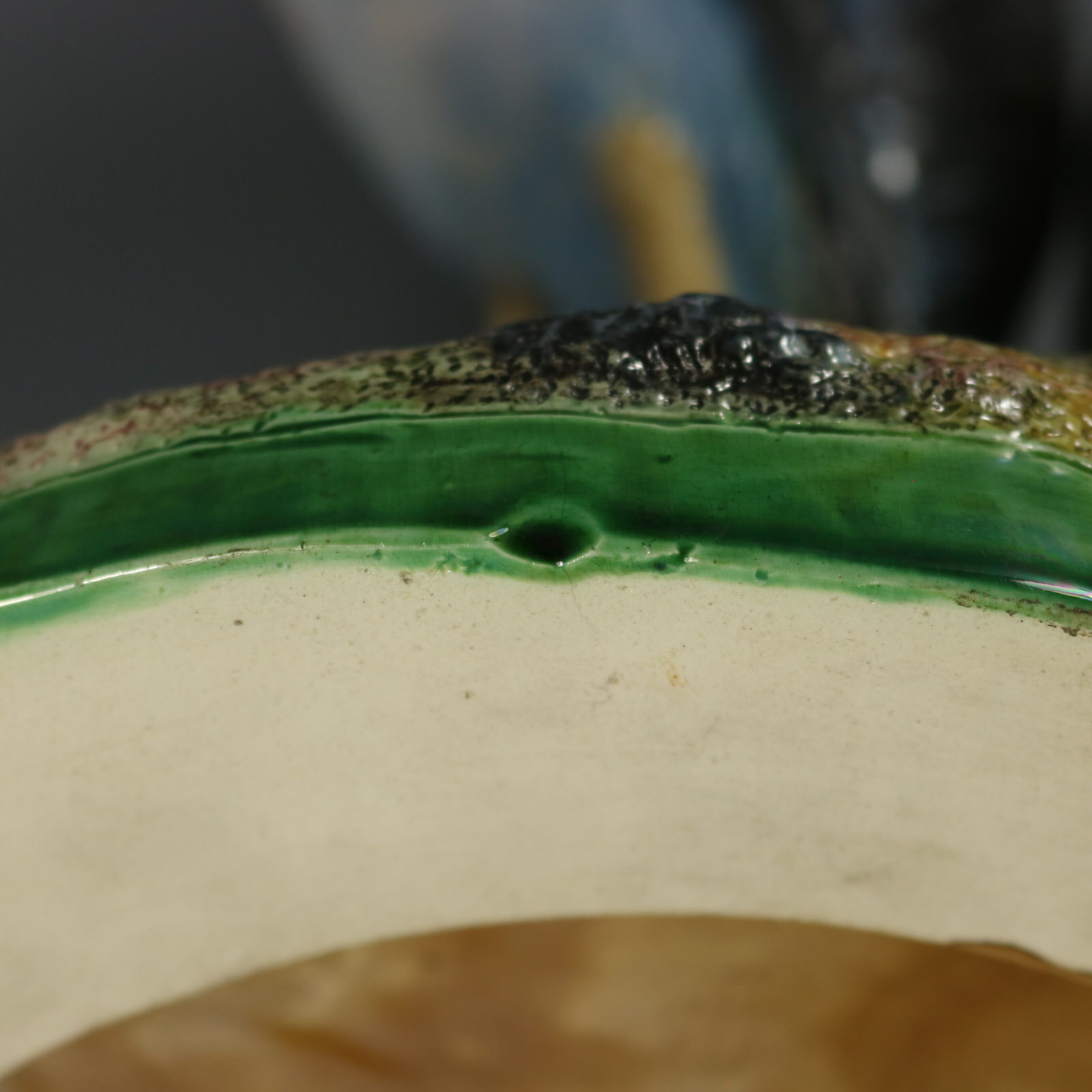 KILN EFFECTS: two shallow over glazed chips to the lower base edge;