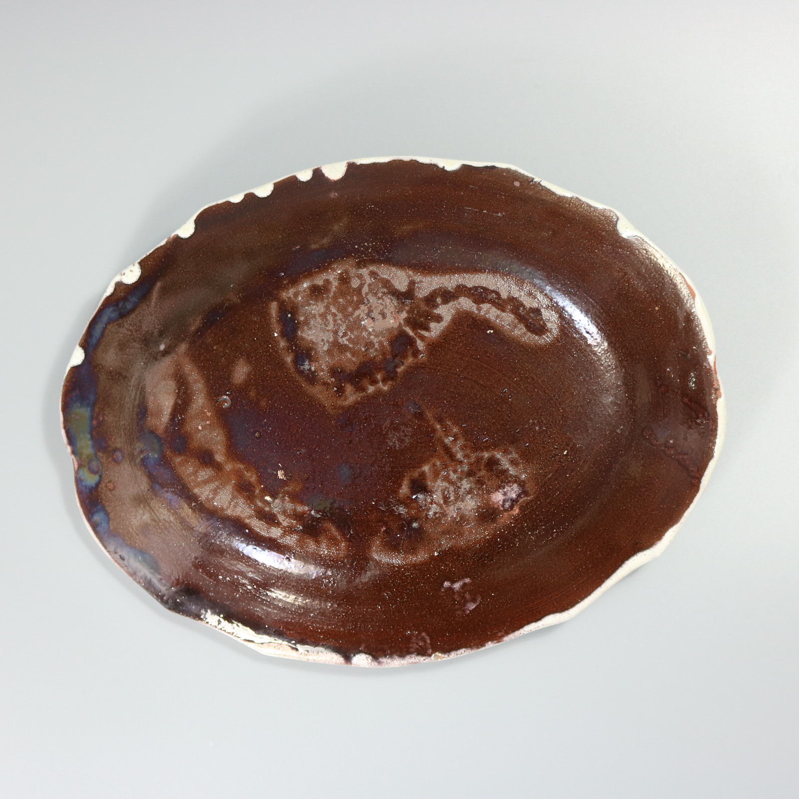 thin glaze application to patches on the rim.