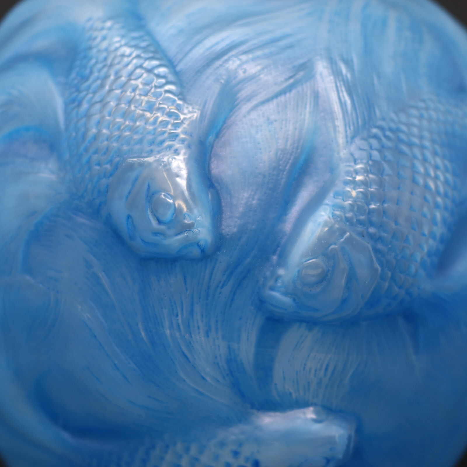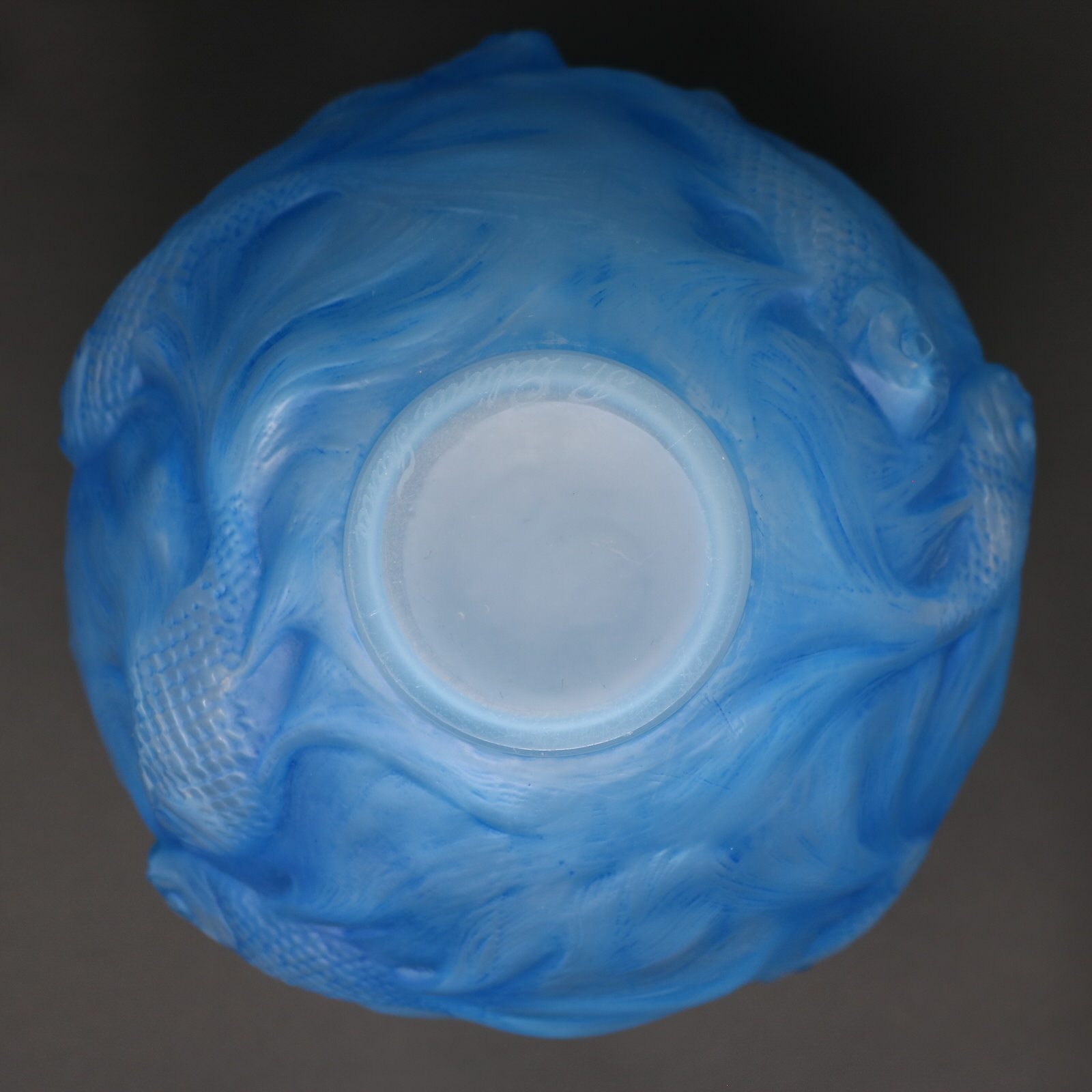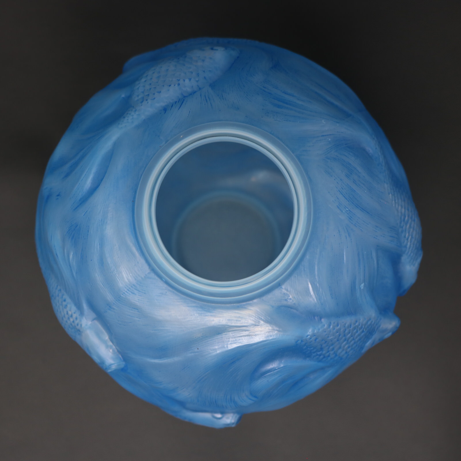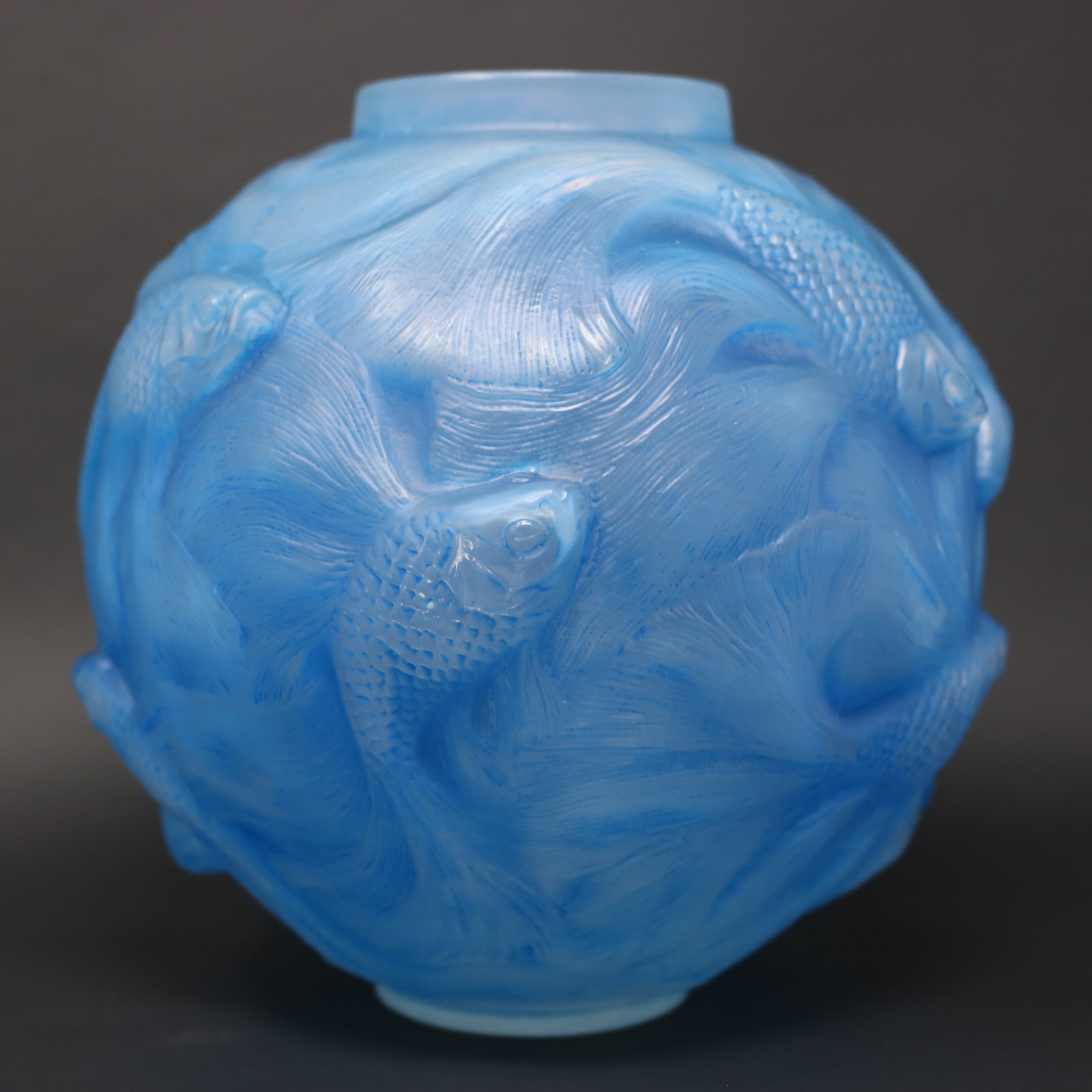 Introduced in 1924. 6.7ins high, 6.7ins wide, 6.7ins deep. Rene Lalique opalescent glass Formose vase.